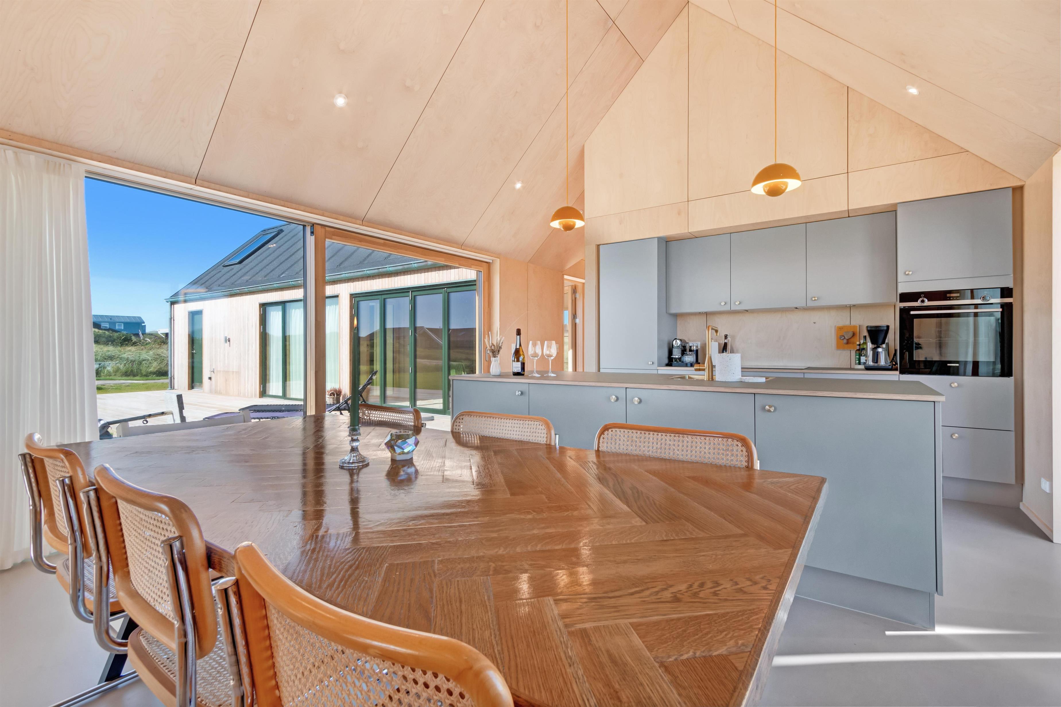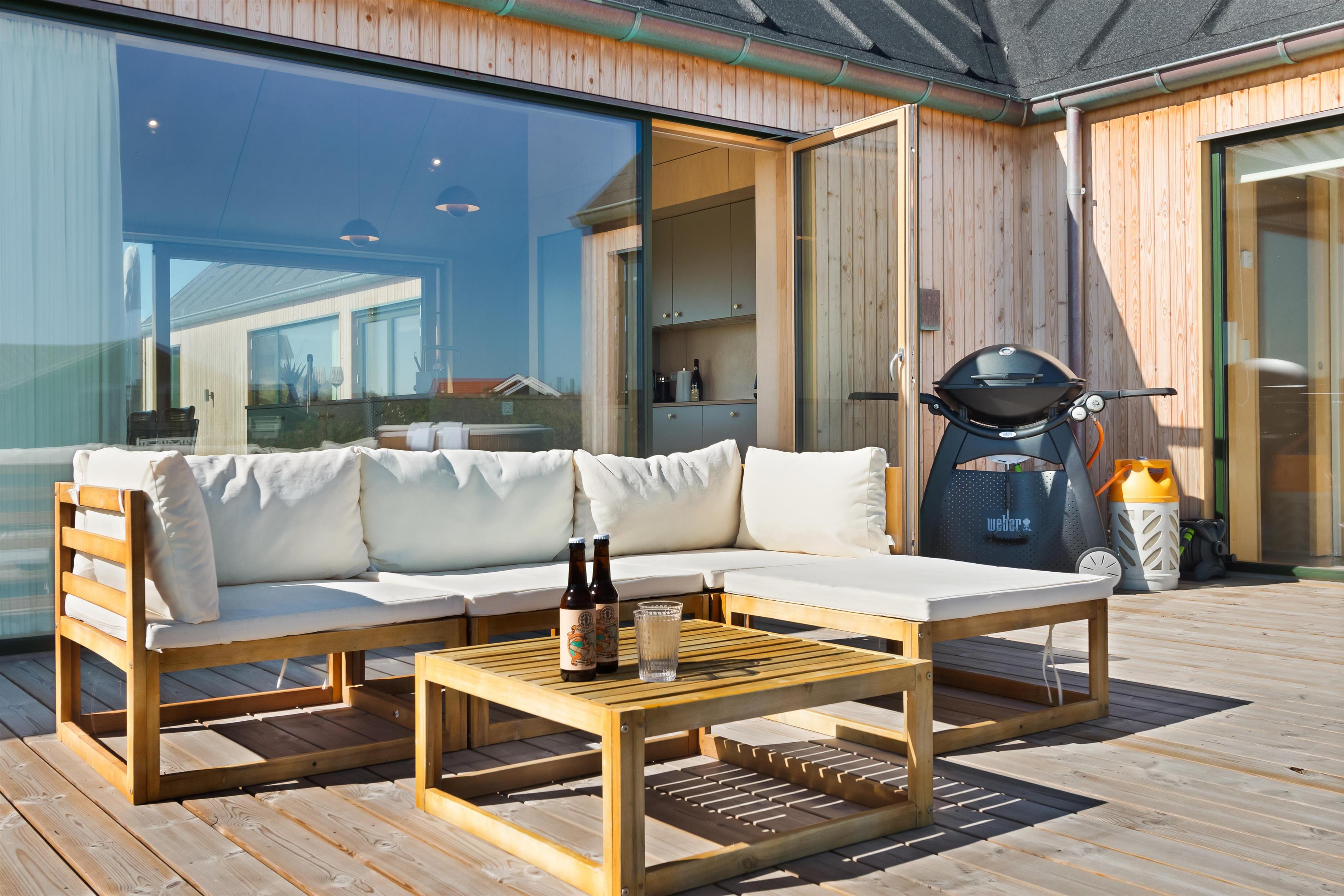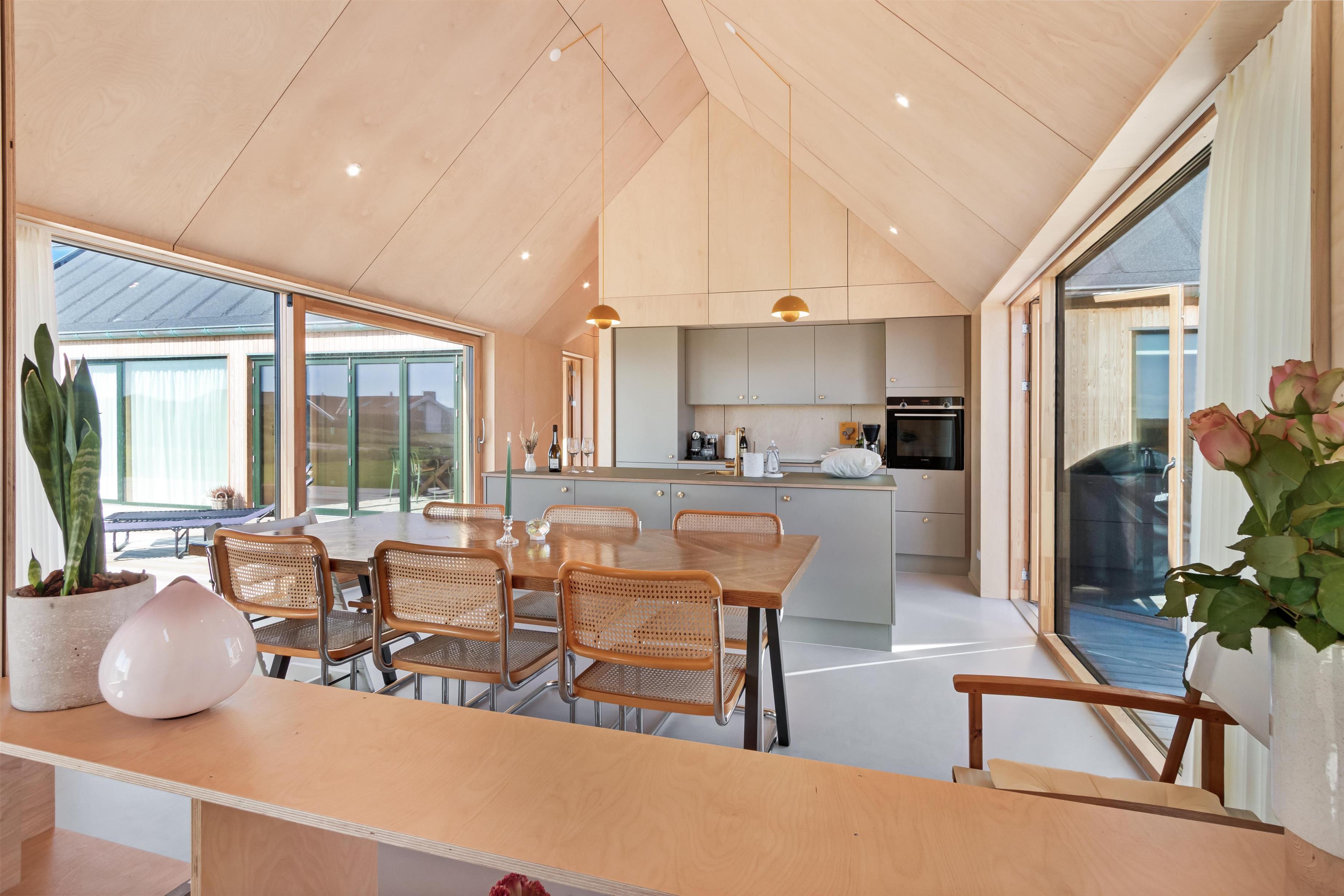 Huset på Magnus Christensens Vej nummer 97 er såvel lækkert, som minimalistisk og hyggeligt. Huset emmer af kvalitet og masser af rum til hygge og afslapning. Her er plads til 8 personer fordelt på 4 soverum. Der er to utroligt lækre badeværelser, to skønne terrasser, udespa, hems og alt, hvad hjertet begærer indenfor moderne faciliteter. Byggeåret er 2023, og alt fremstår derfor funklende nyt. Soverummene ligger for hver deres ende af husets 133 kvadratmeter, og de er afskærmede fra køkken/alrum/stue, så nogle kan gå til ro, mens andre bliver oppe.