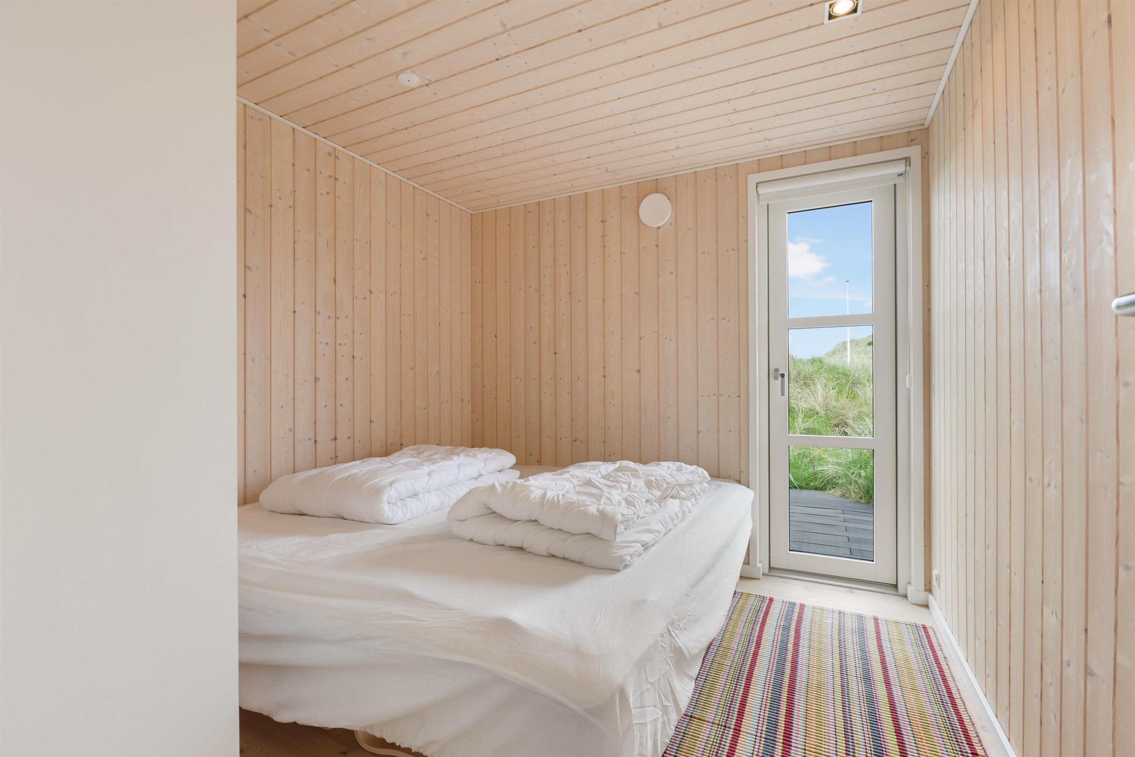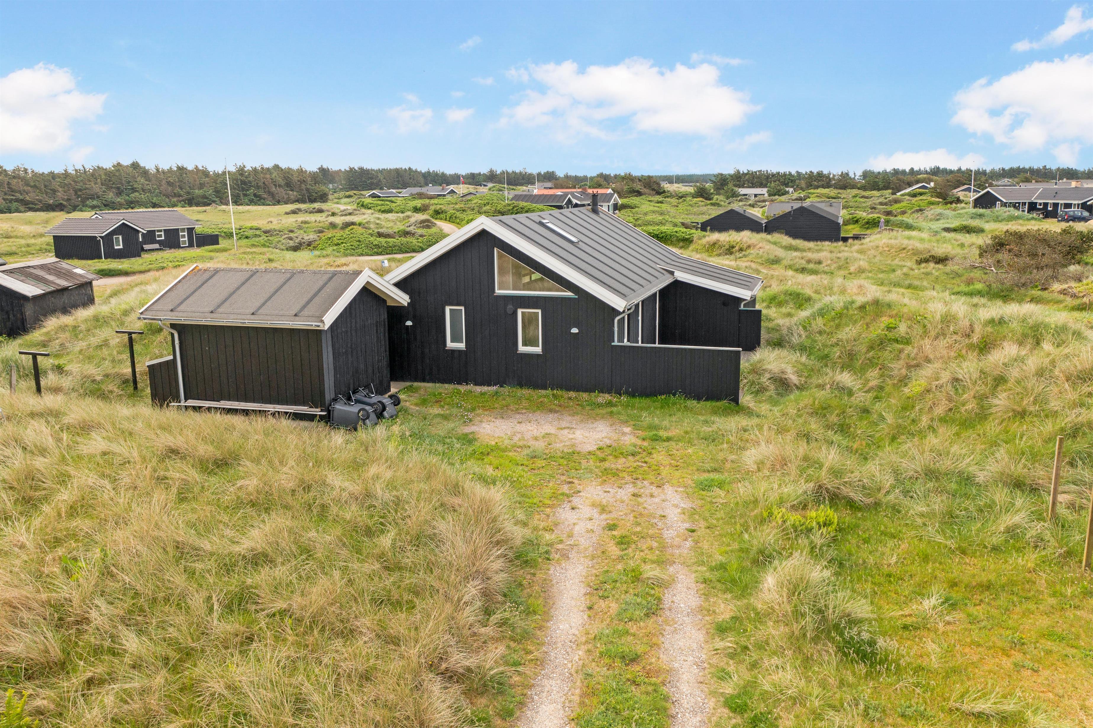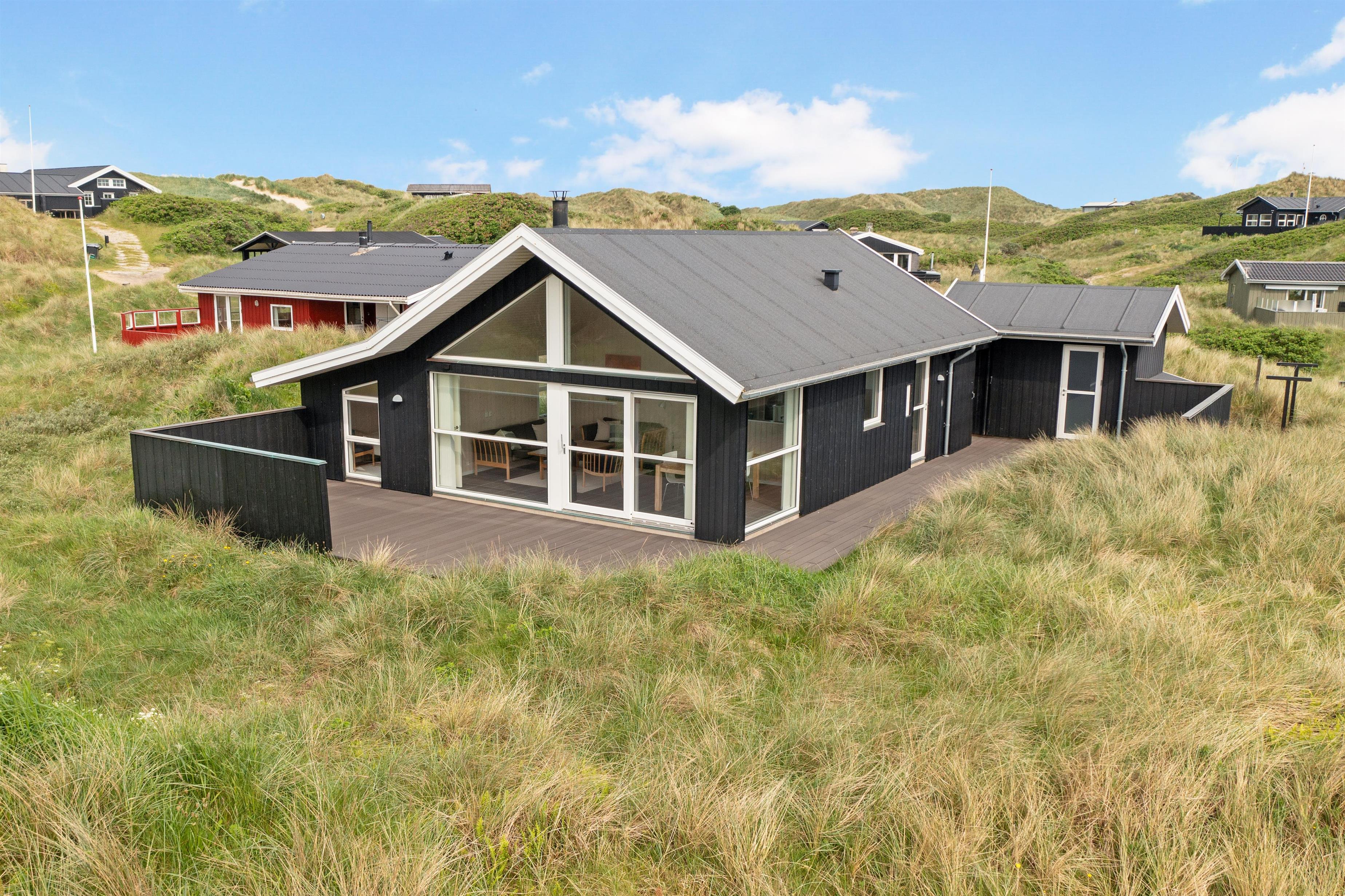 Udendørsområdet byder på store terrasseområder, hvor du kan nyde din morgenkaffe, grille om aftenen eller bare slappe af med en god bog. Det er også et perfekt sted for børnene at lege og nyde den friske havluft. Hvis du vil opleve byens summen af glade gæster, skal du blot bevæge dig ca. 2 km, og det er endda tilladt at køre på bil ned på stranden, der er en af Danmarks mest eftertragtede badestrande.