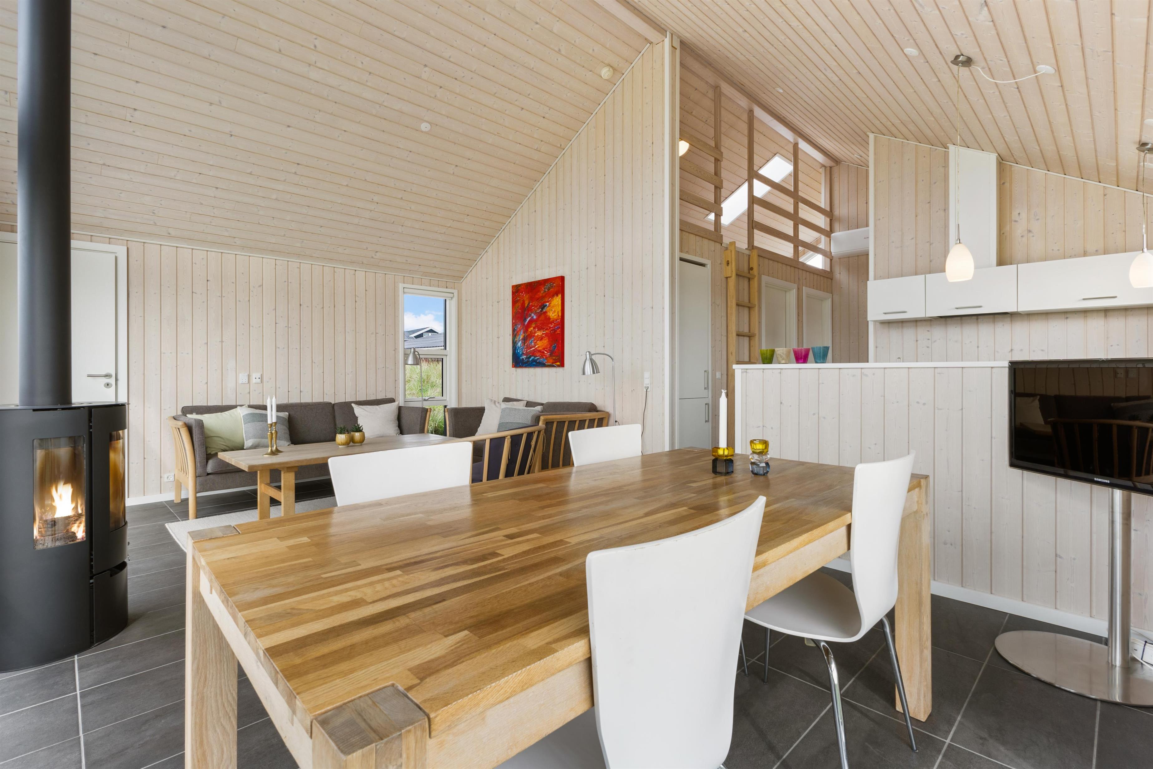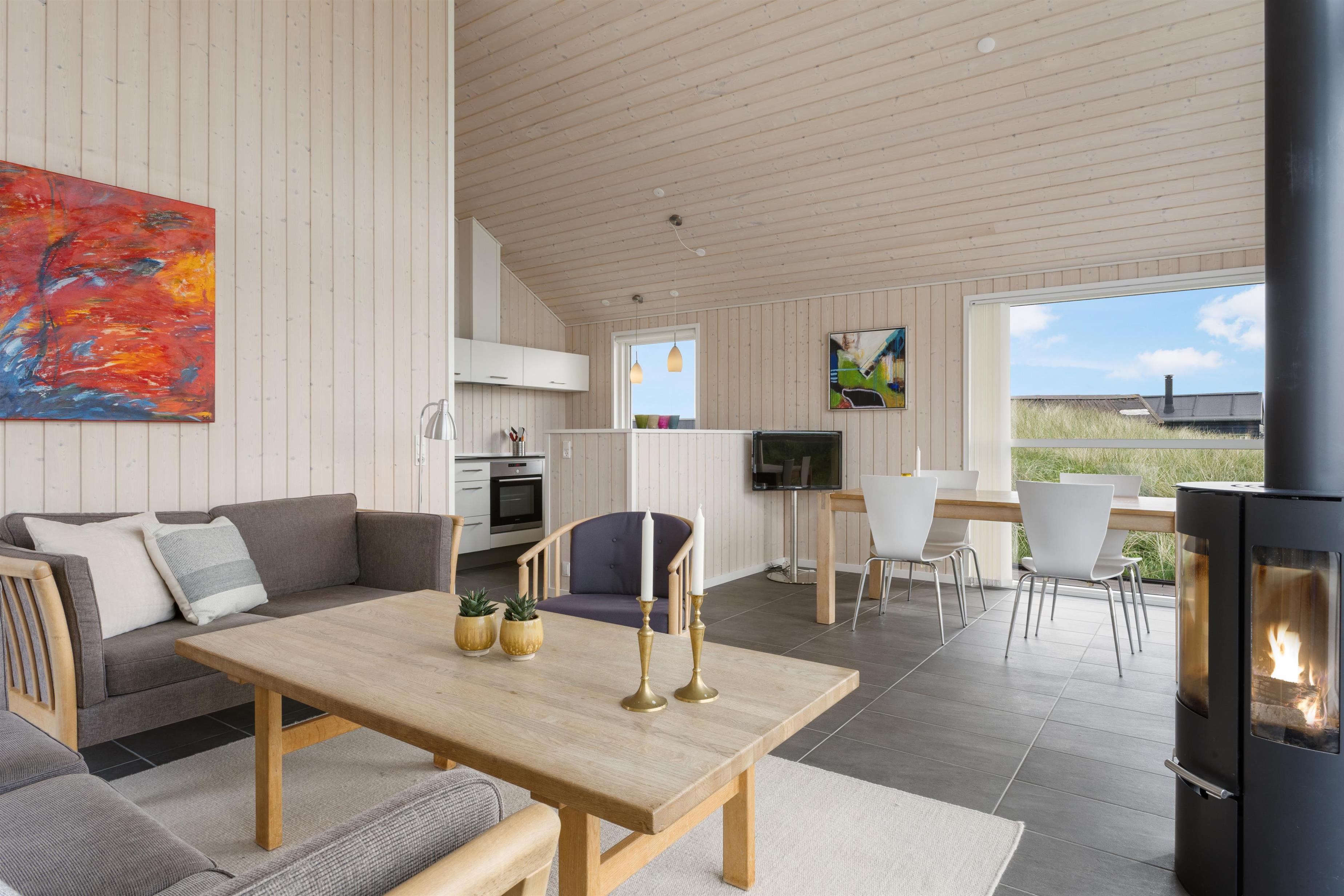 I dette dejlige sommerhus møder du en rummelig stue og et veludstyret køkken, hvor der er højt til loftet samt hems. Her kan du tilbringe kvalitetstid med familien eller vennerne, hygge foran pejsen og nyde den storslåede natur. De tre soveværelser er alle med komfortable dobbeltsenge og indrettet med fokus på ro og afslapning, så alle får en god nats søvn. Du er blot 100 meter fra stranden og ca. 2 km fra Løkkens liv og leben. Udsigten fra stuen er fænomenal og med det store vinduespartier inviteres naturen indenfor og kan nydes i al slags vejr.