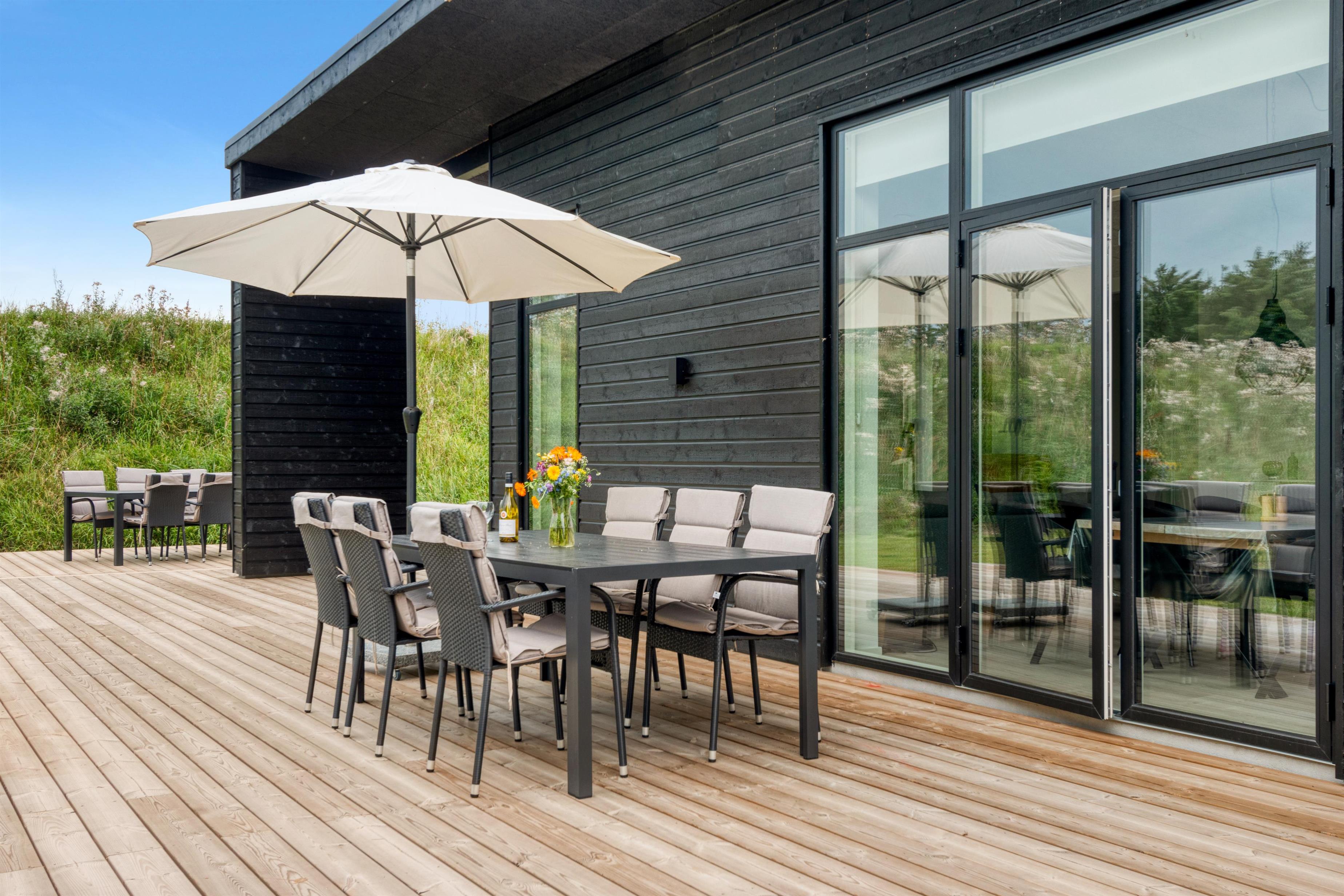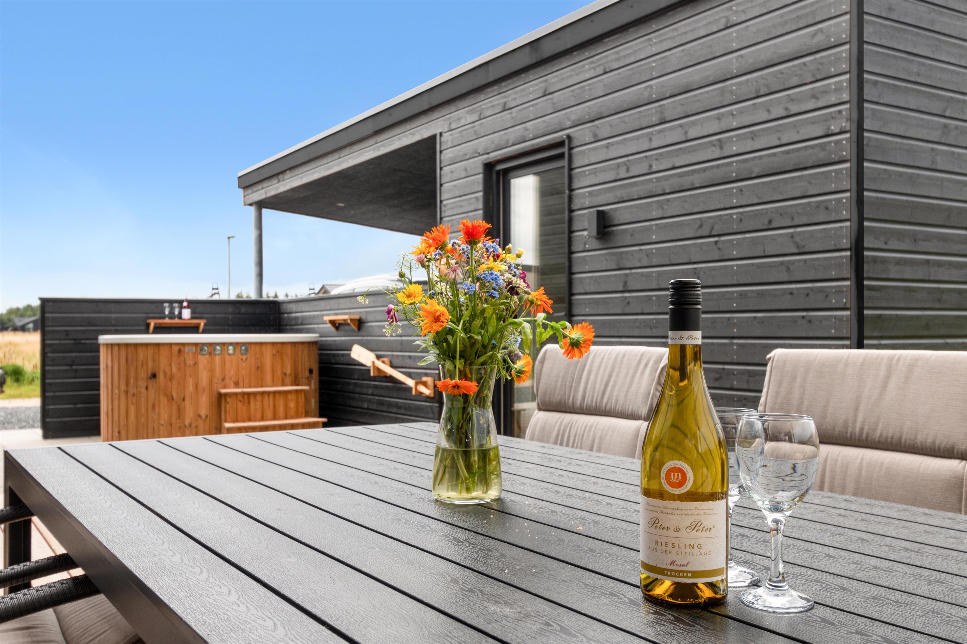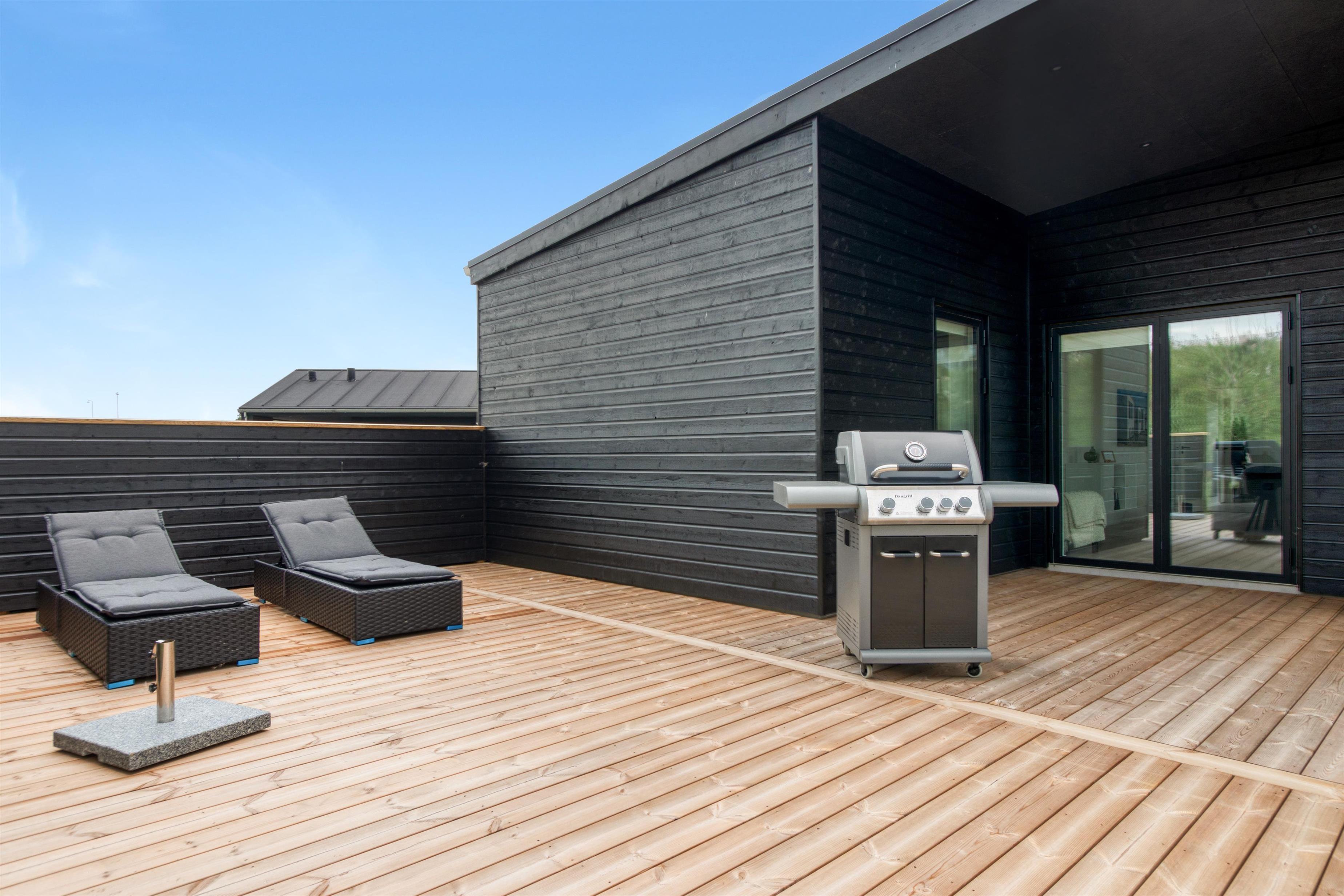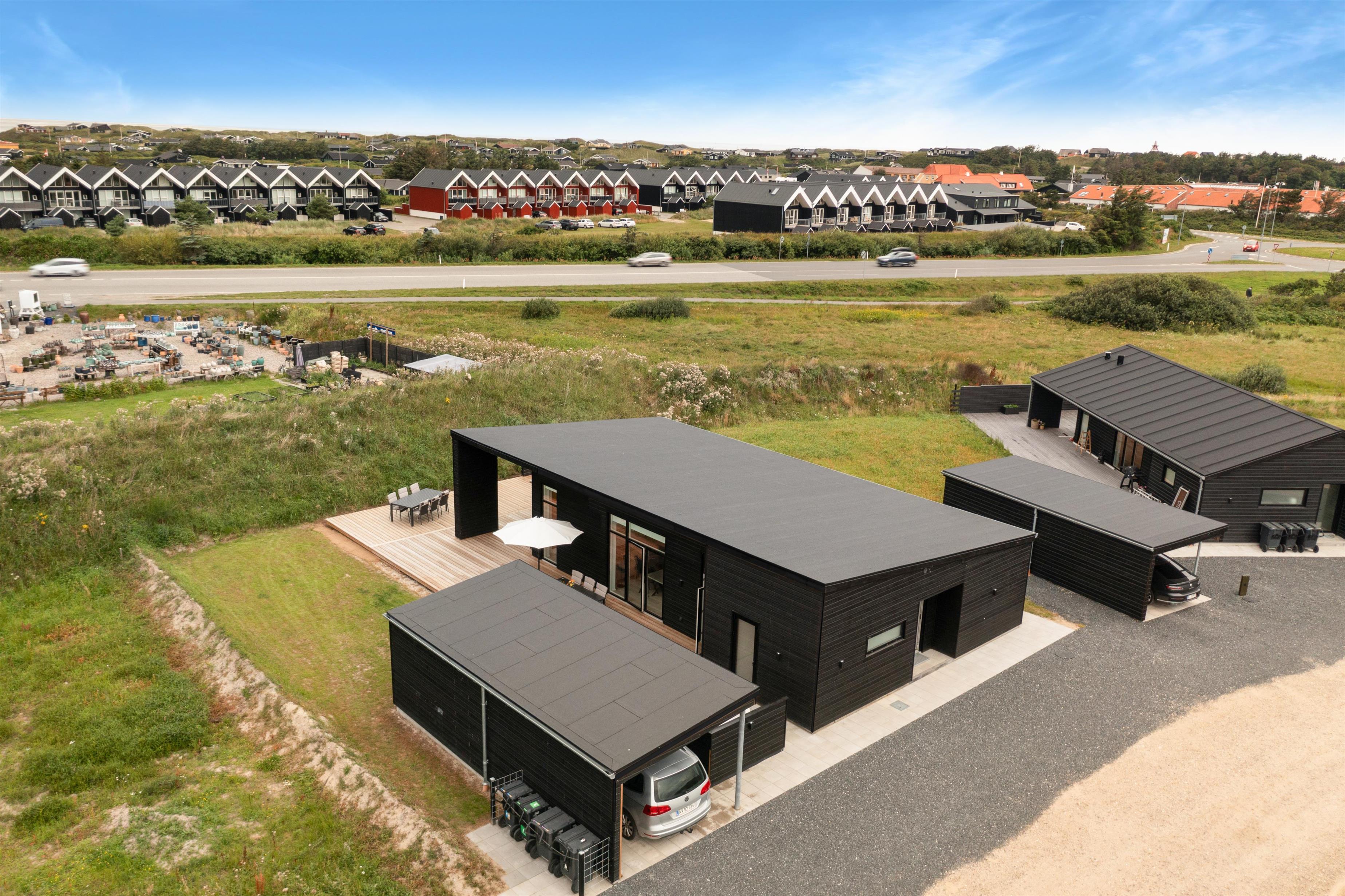 Moderne sommerhus i Løkken med stor terrasse, spa og tæt på strand og by.