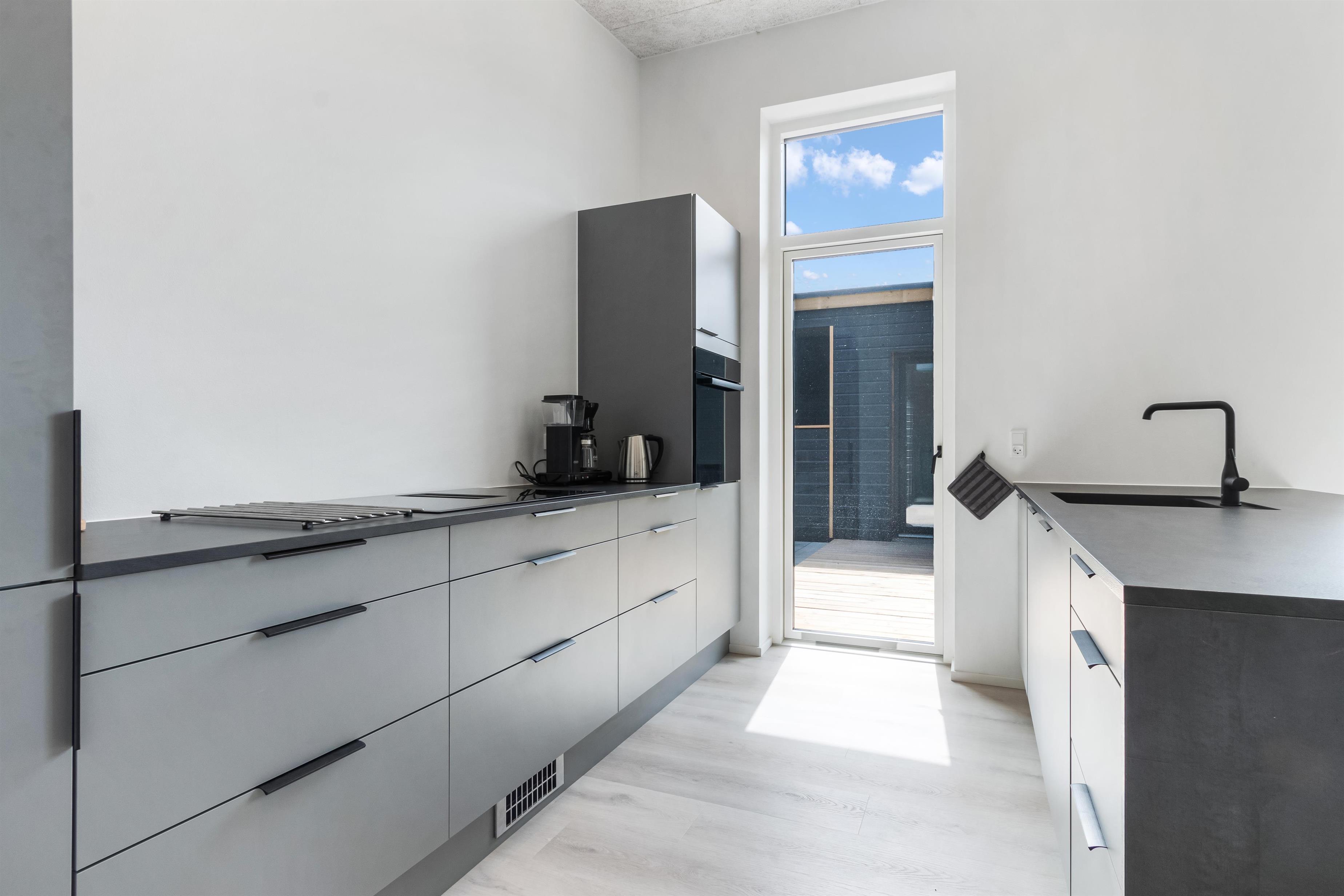 Huset er praktisk indrettet med fokus på komfort og moderne faciliteter, og det er opvarmet med fjernvarme. Stort, lyst og lækkert køkken. Der er et aflåseligt skur, carport, havemøbler og alt, hvad vores hjerter begærer, når man lejer et moderne og nyopført sommerhus i Løkken.