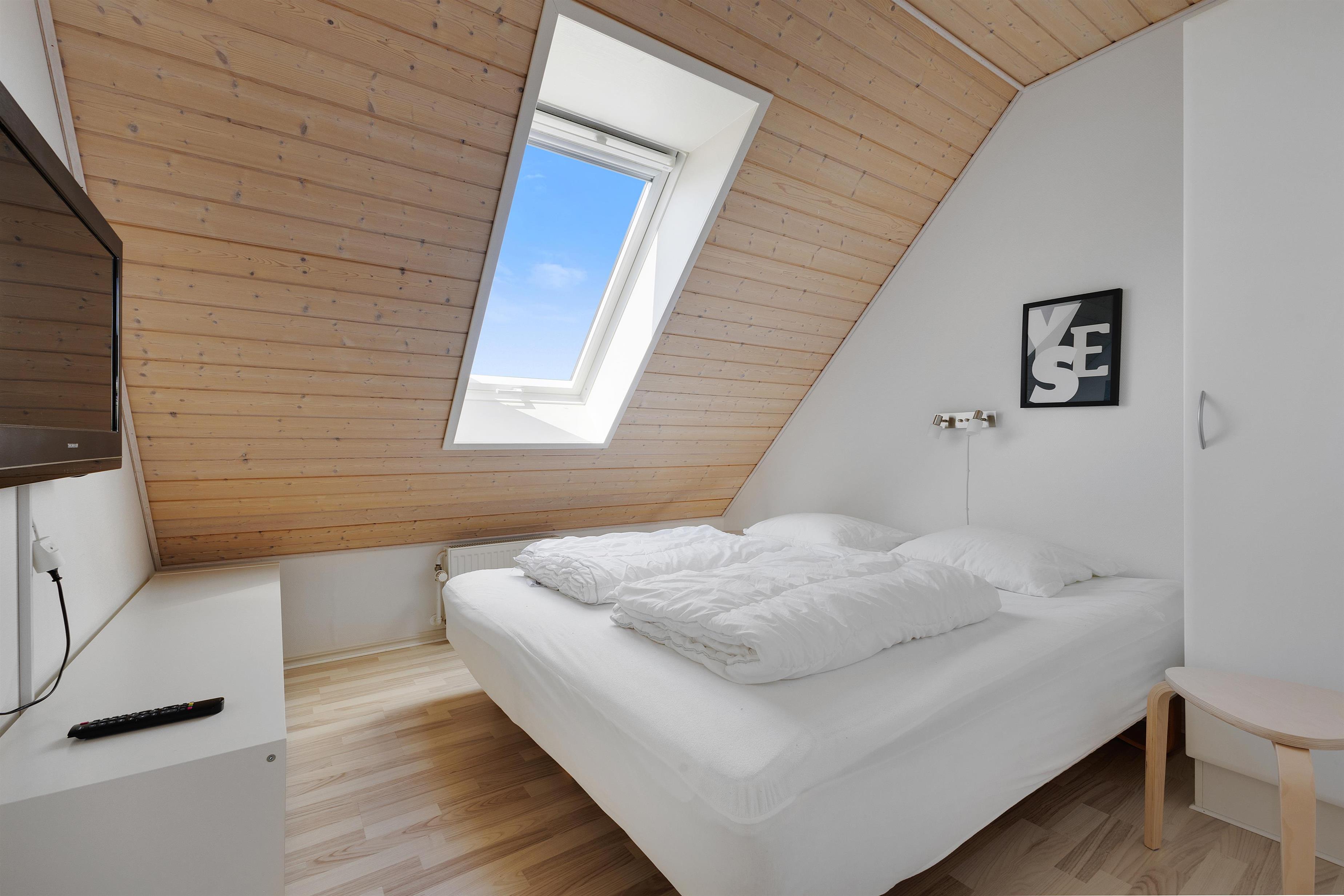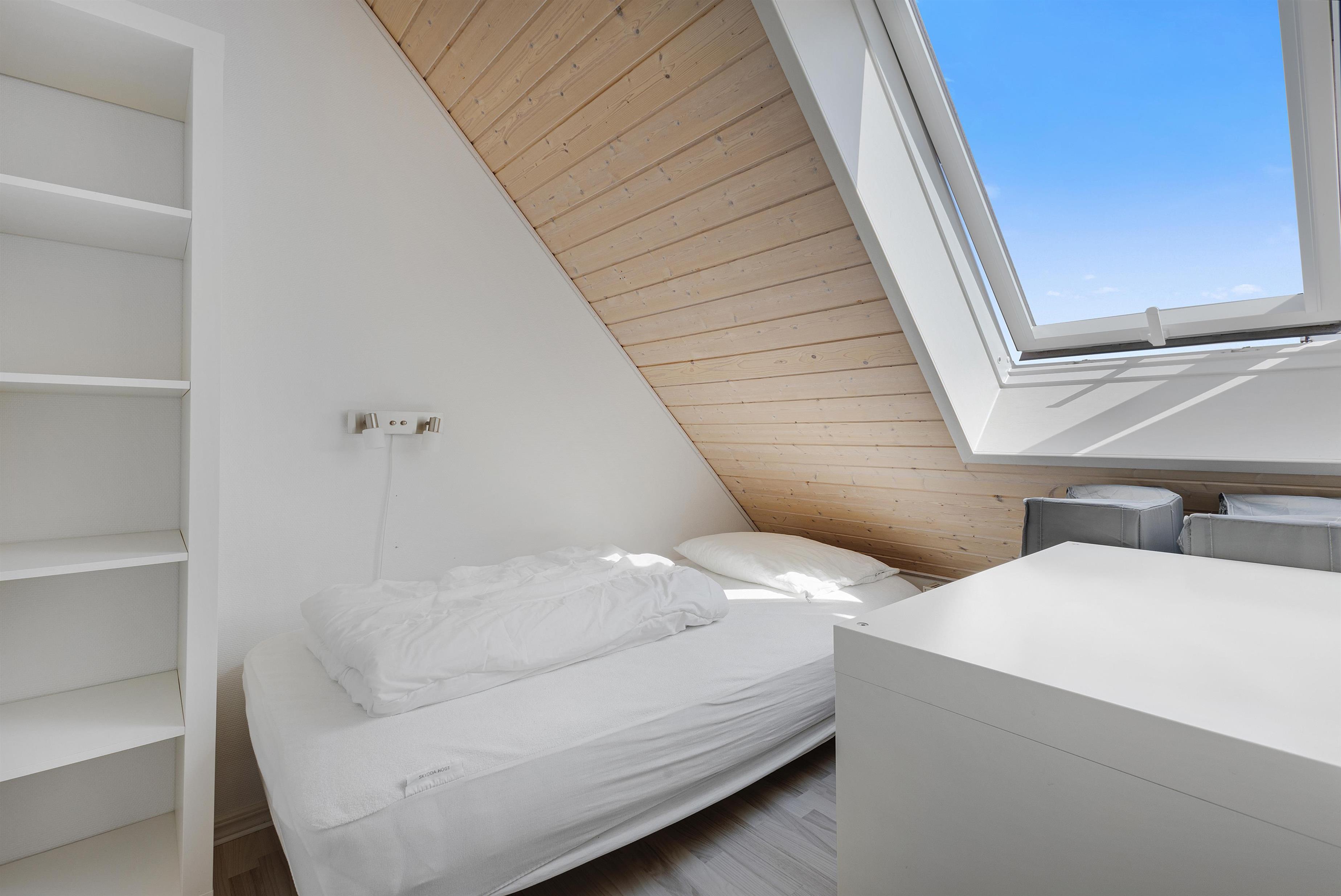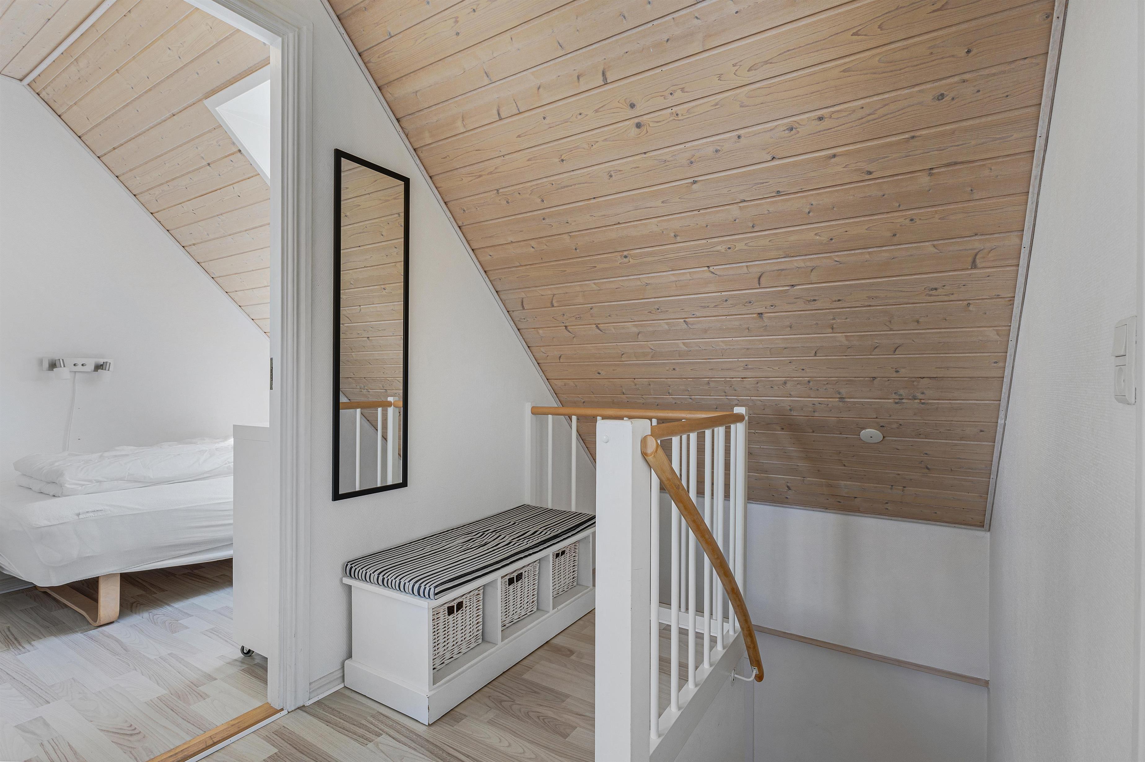 Her er tale om et enderækkehus, der ligger væk fra selve Jyllandsgade. Her har du privat parkering og en feriebolig på 75 kvadratmeter, hvor der er plads til 5 personer. Alle soverum findes på 1. sal, mens stueetagen er dedikeret til et dejligt stort badeværelse samt et lyst og åbent køkken/alrum og stue med udgang til den afskærmede have.