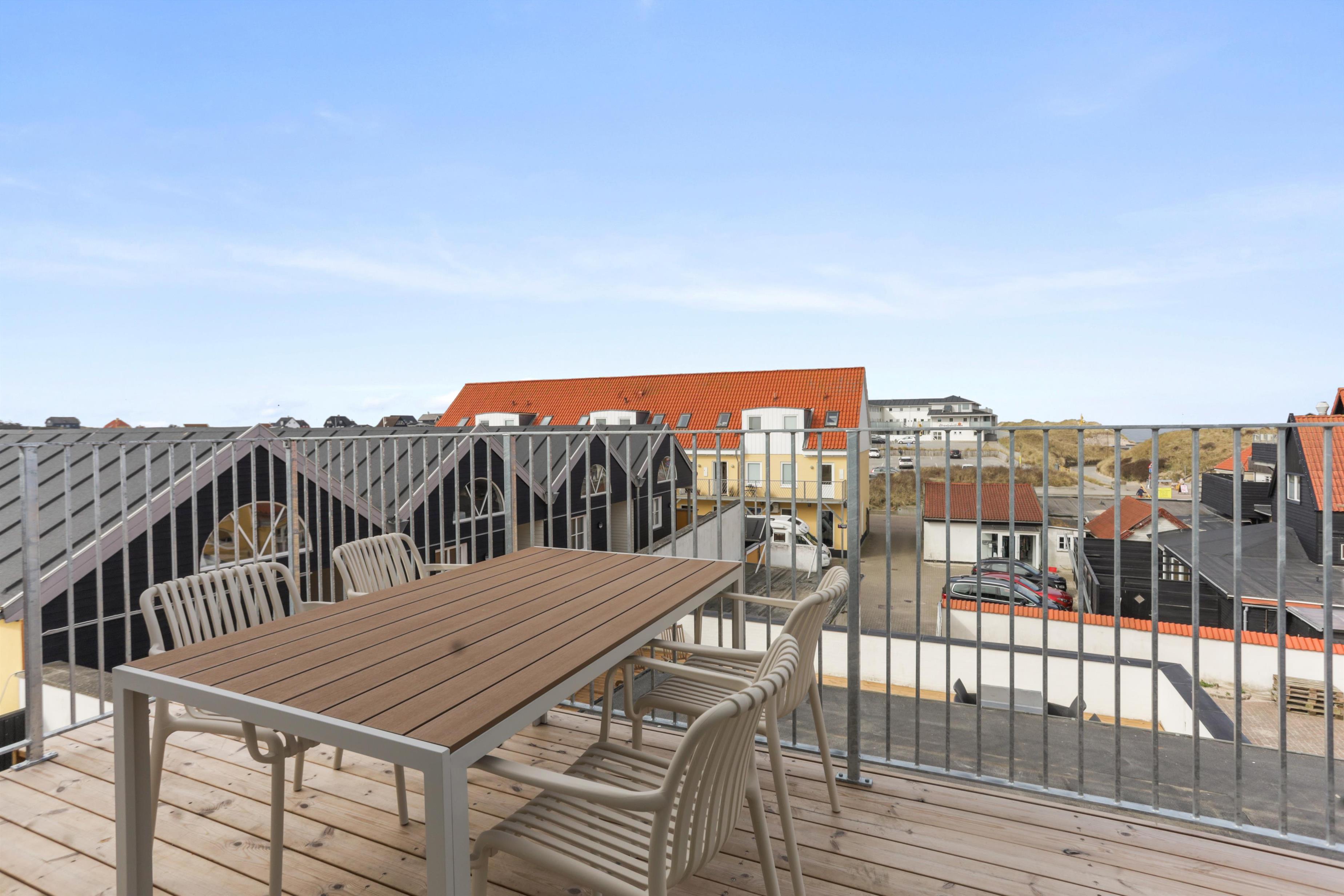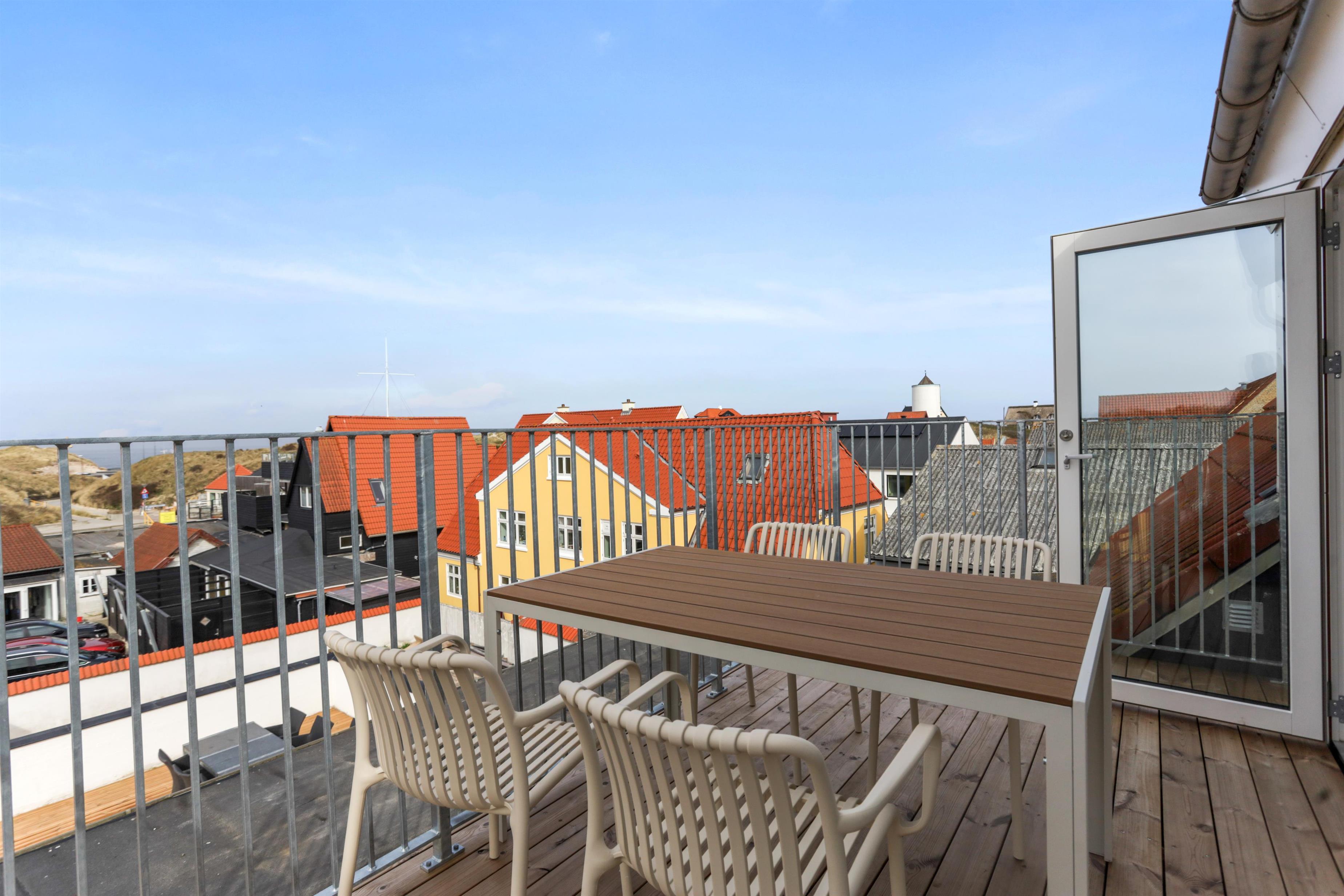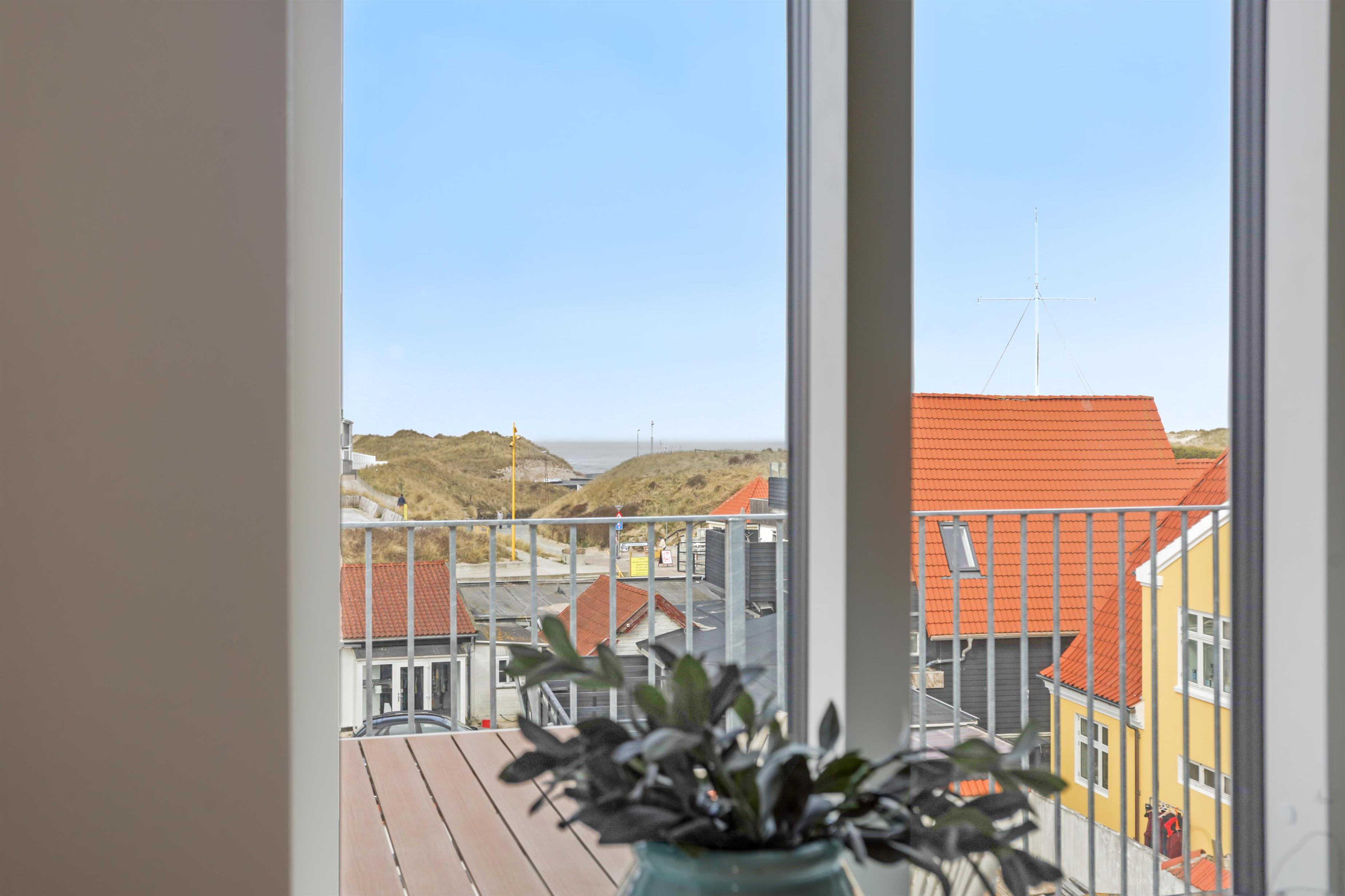 En af lejlighedens højdepunkter er den store balkon, hvor du kan slappe af med udsigt til havet og klitterne. Balkonen er som skabt til lange, afslappende feriedage, hvor du kan nyde lyden af byens liv blandet med Vesterhavets brusen – ren feriestemning i særklasse!