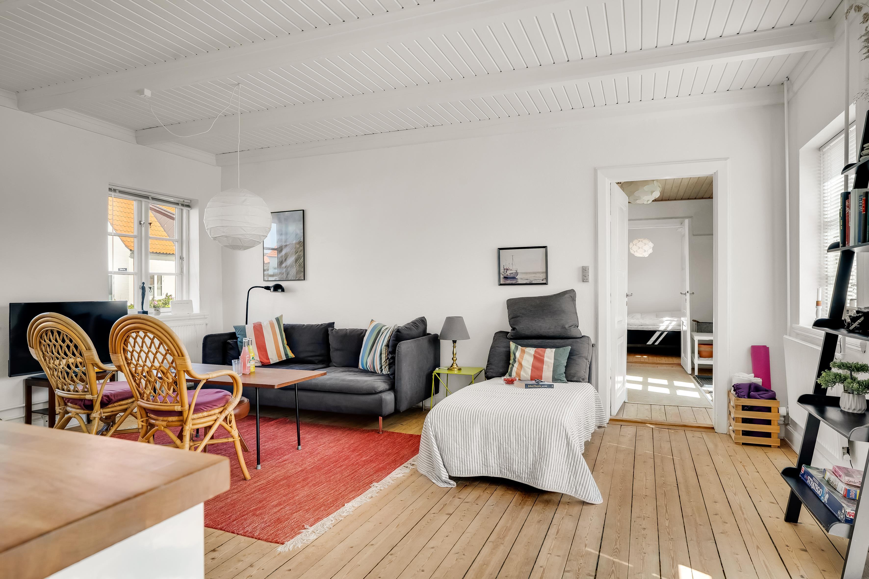 Trods husets centrale placering, er der også en dejlig have til huset, der er skjult bag et hegn, og byder på en fredelig oase netop overfor Løkken Idrætscenter, hvor der er svømmehal, fitnesscenter og paddletennis. Fra stuen kan I gå direkte ud på den sydvendte terrasse, der er ideel til afslapning.