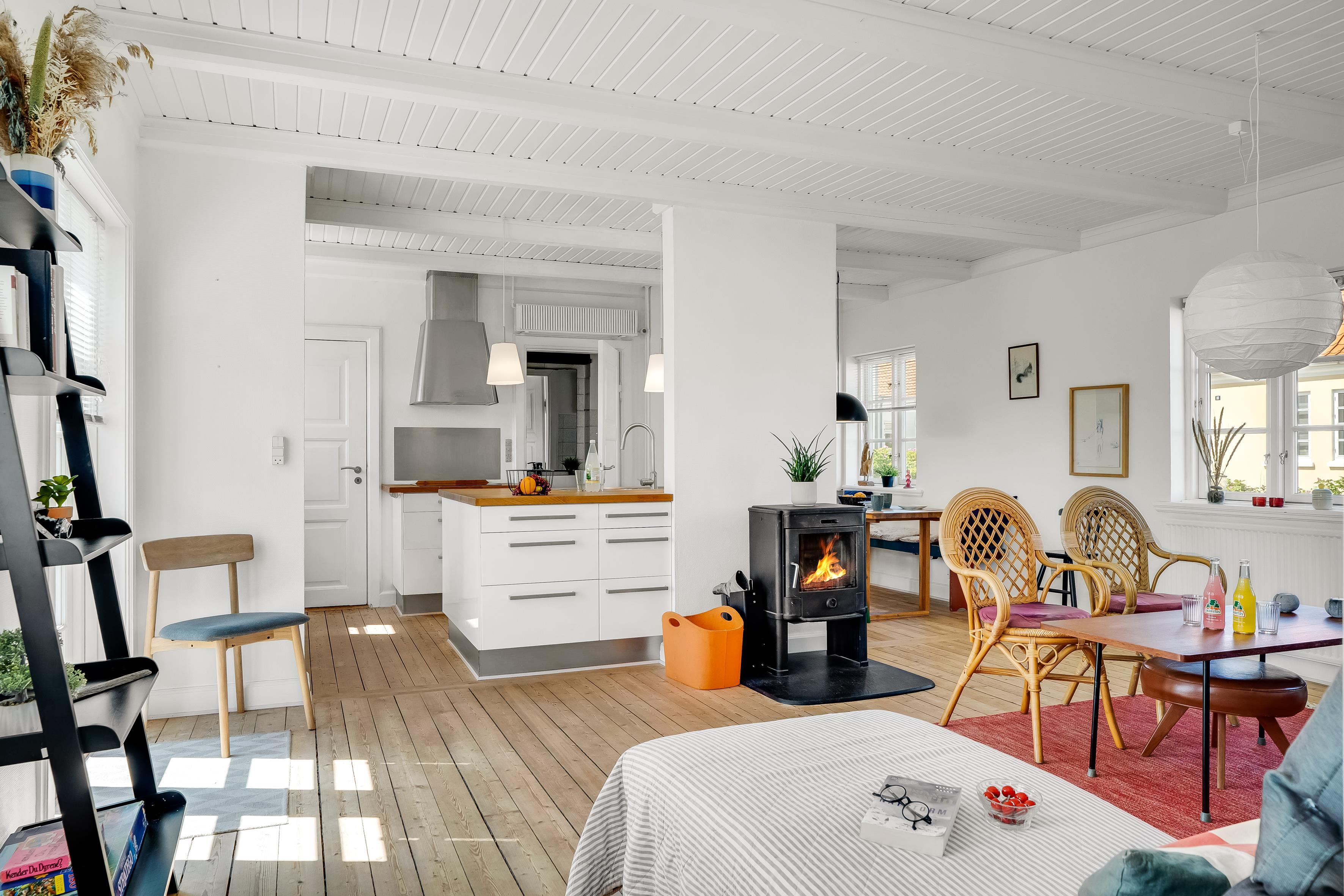 Dette fine murstenshus har prydet Damgårdsvej i næsten 100 år, og efter en flot renovering er rummene lyse og imødekommende med det super flotte, åbne køkken/alrum i forlængelse af stuen og de 3 soverum. Samtidig er sommerhuset udstyret med alle nødvendige faciliteter som opvaskemaskine, vaskemaskine, tørretumbler og brændeovn, så ferien bliver ekstra komfortabel. Huset har 1 badeværelse og plads til op til seks gæster. Der er parkering lige uden for huset.