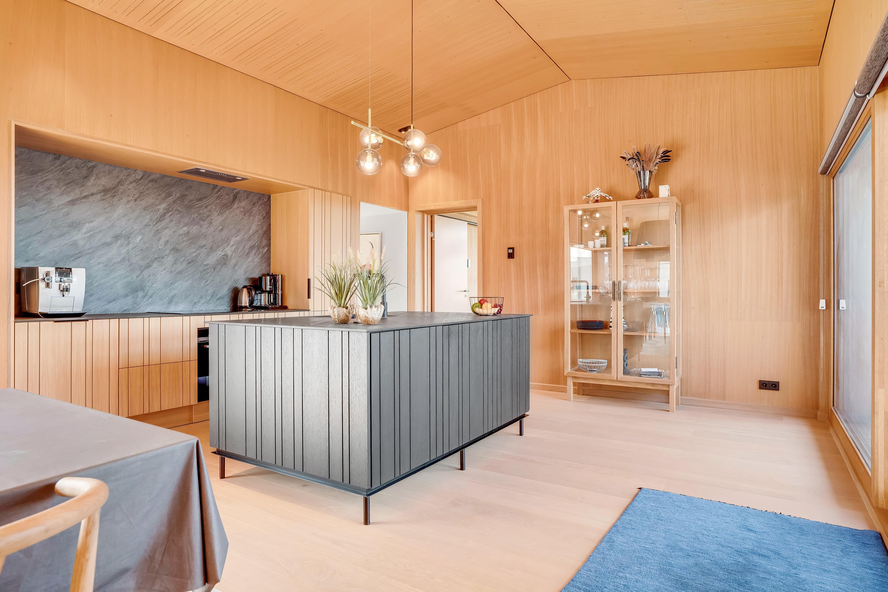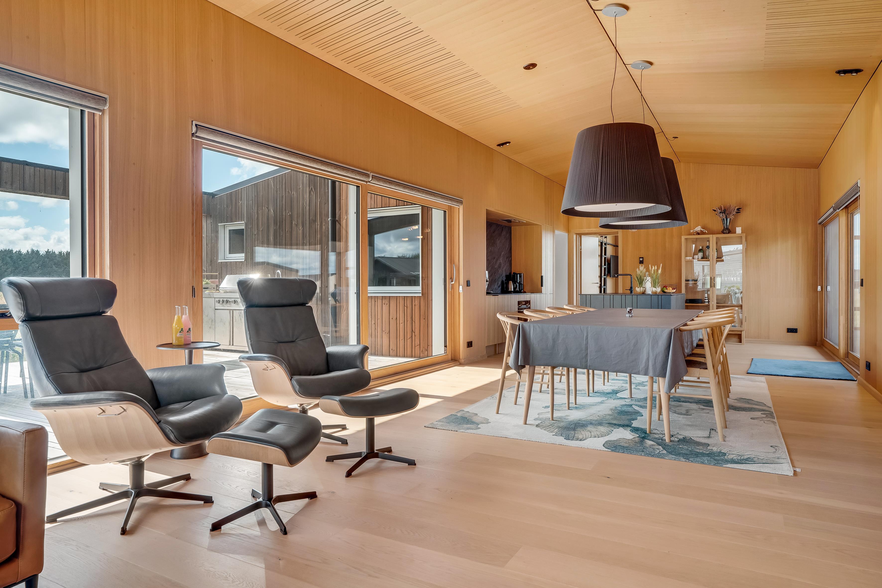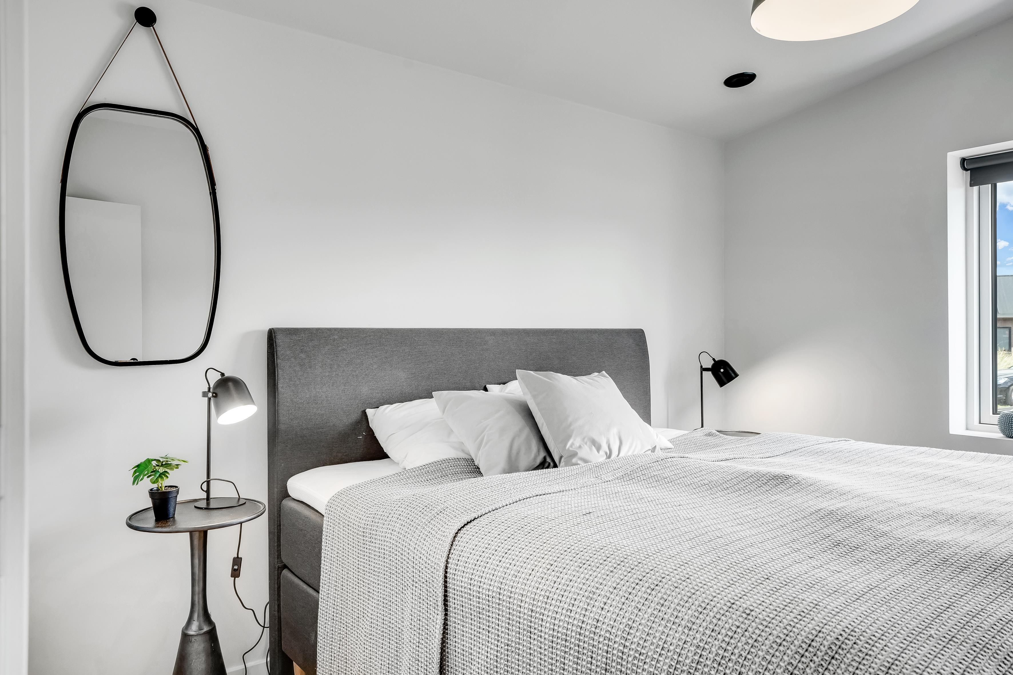 Sommerhuset rummer op til 7 gæster fordelt på 5 soveværelser med tre dobbeltsenge og to enkeltsenge. Hjertet af huset er det åbne køkken-alrum, som ligger i direkte forbindelse med stuen og byder på en lys, funktionel og velovervejet indretning i klassisk dansk design. De to badeværelser er både rummelige og elegant udstyret, og huset er placeret i et moderne nybyggerkvarter med både helårsboliger og ferieboliger side om side.