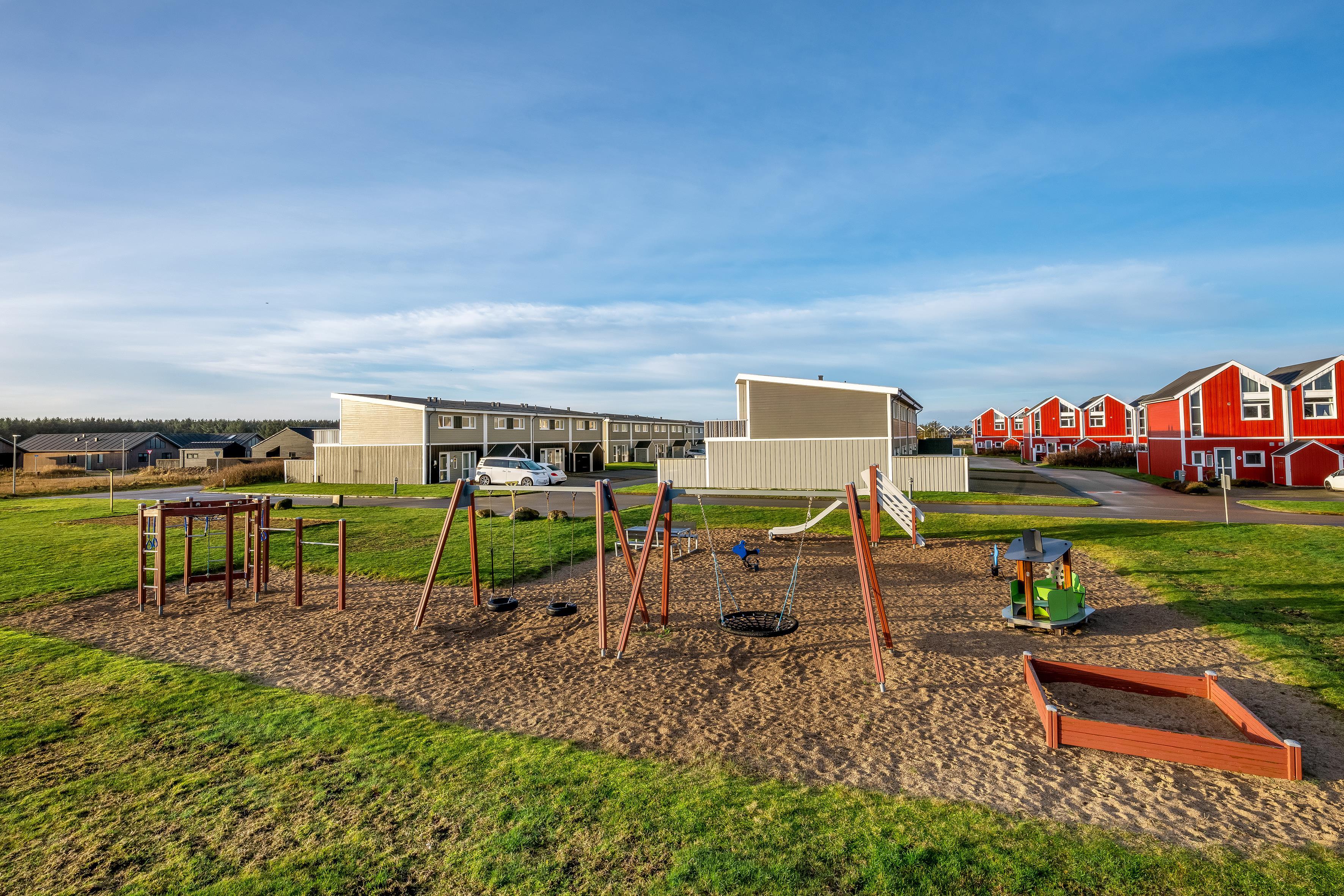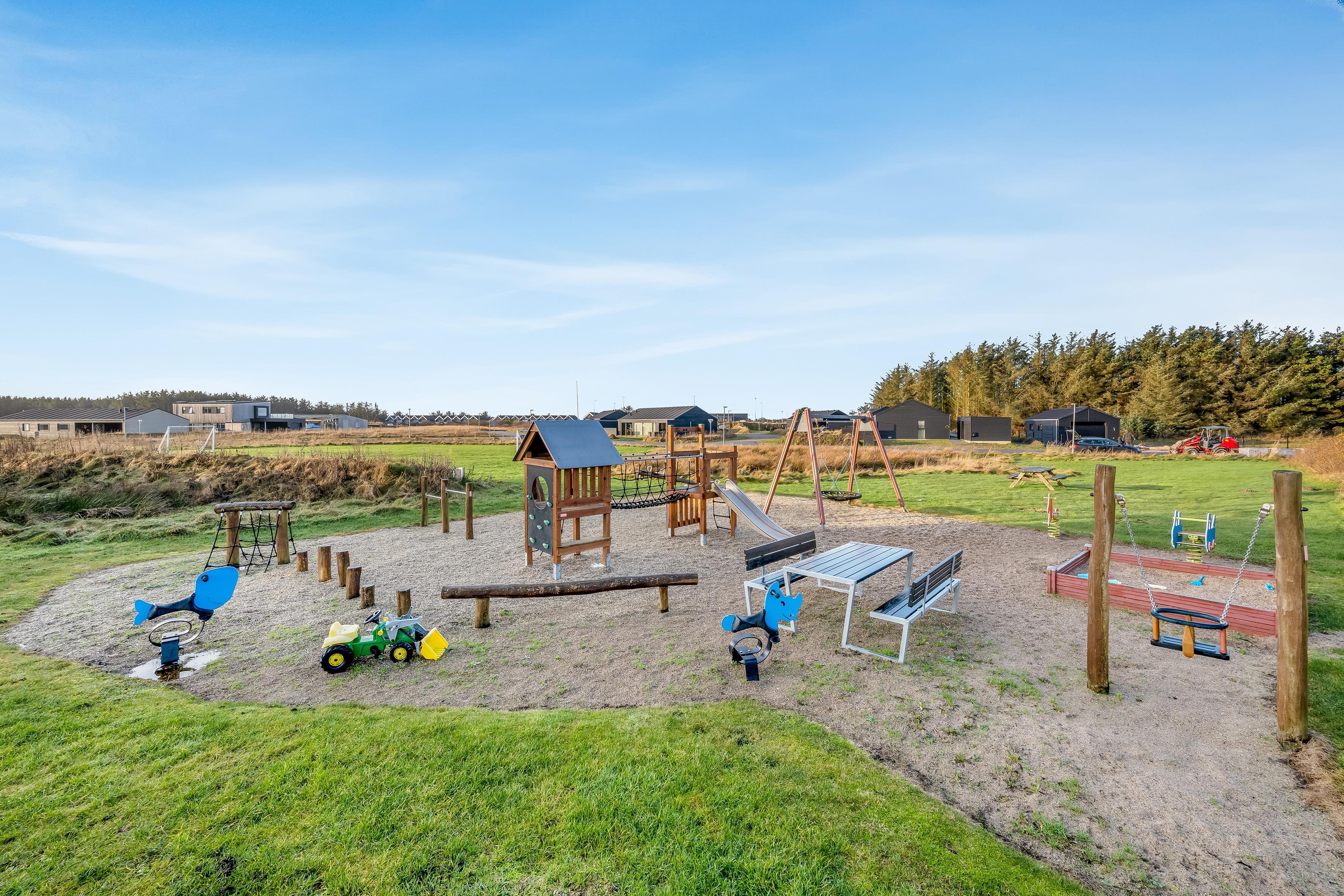 Med flere terrasser og masser af lækre udeområder er det let at finde læ og sol. Der er god plads til leg og hygge, og fra huset er der kort afstand til både strand, by og indkøb – alt ligger inden for cirka en kilometer. Ca. 500 meter væk er der legepladser og golfbane, og vejen er blind, så den er ikke særlig trafikeret. Det er muligt både køre i bil, på cykel eller at gå ned på stranden, der er en af Danmarks bedste badestrande.