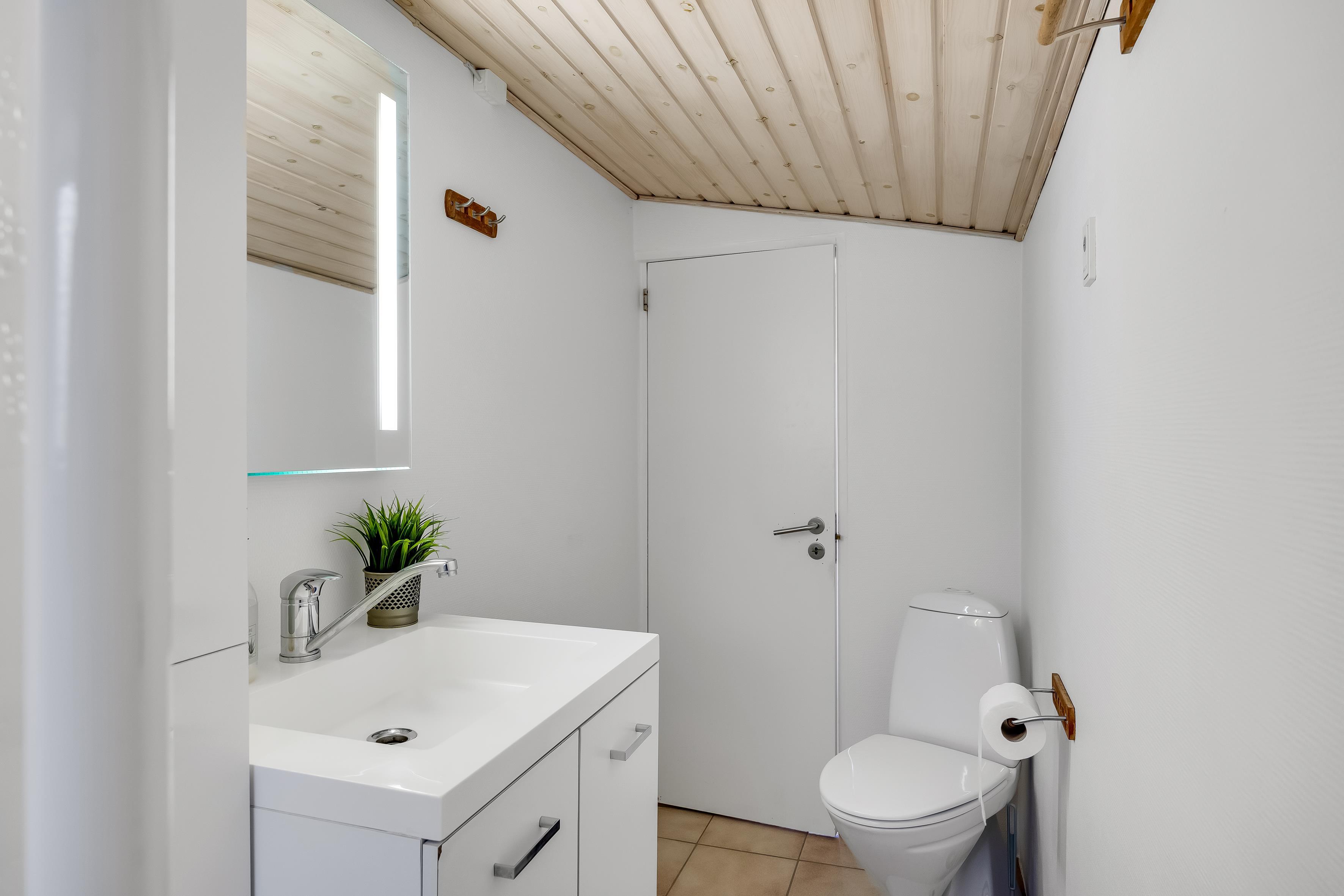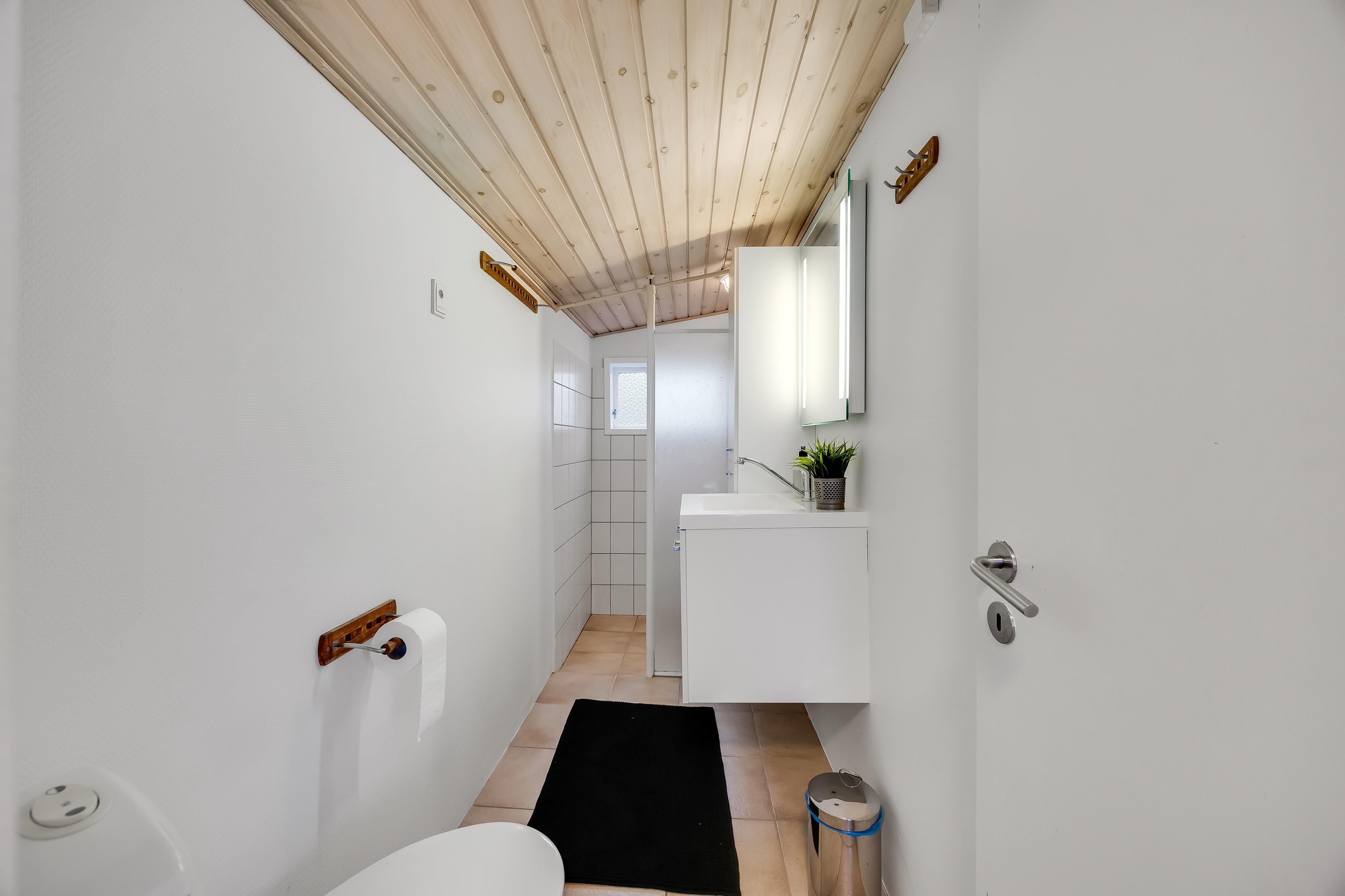 De store vinduer lader lyset strømme ind og giver et fantastisk kig til naturen omkring huset – perfekt til afslapning i fredelige omgivelser tæt på vandet. Dette hus emmer af klassisk, dansk sommerhusudlejning, når det er bedst.