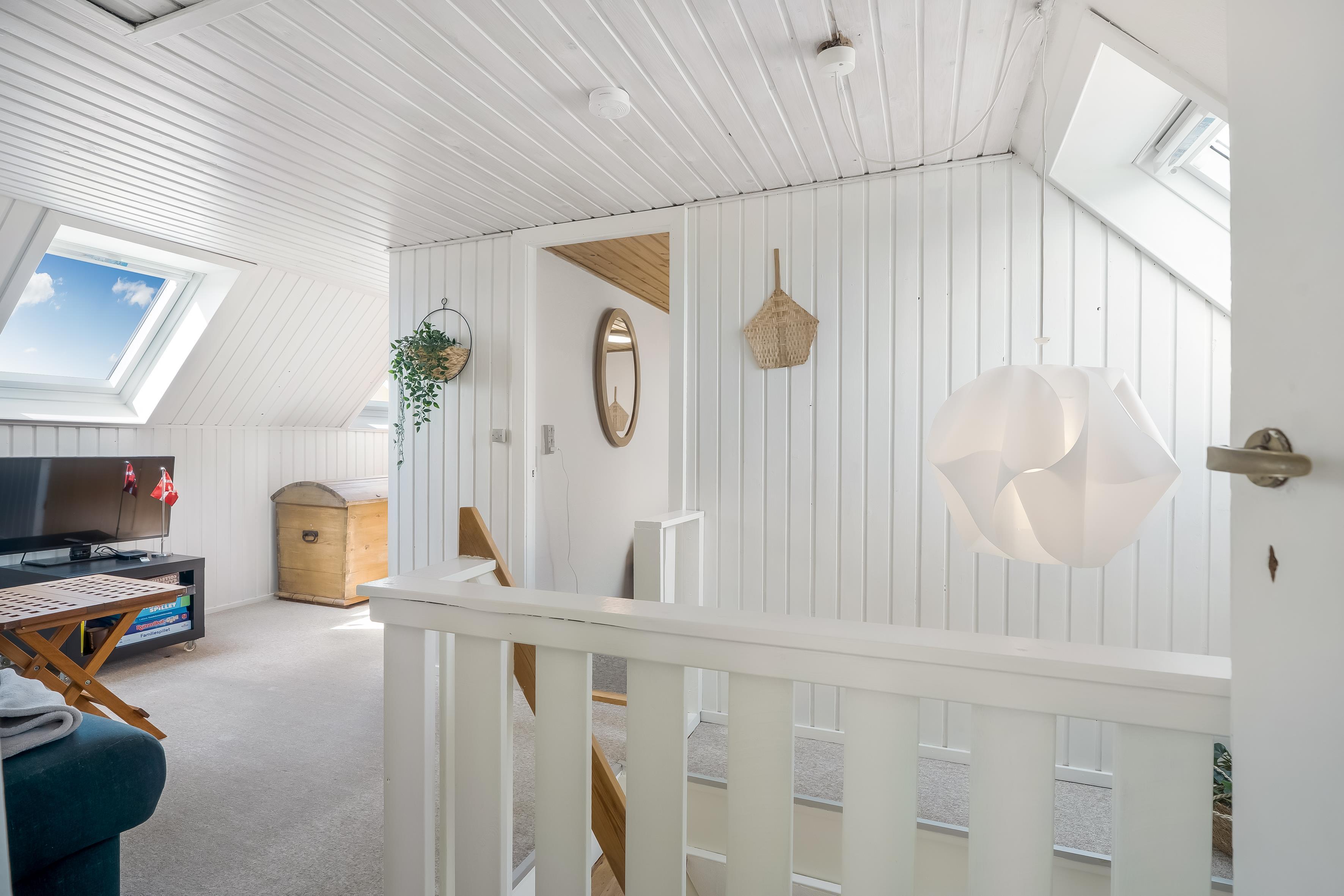 NB. trappen op til husets første sal er stejl. Huset har desuden et bryggers ved siden af hoveddøren samt et aflåseligt skur med et ekstra køleskab og havemøbler.