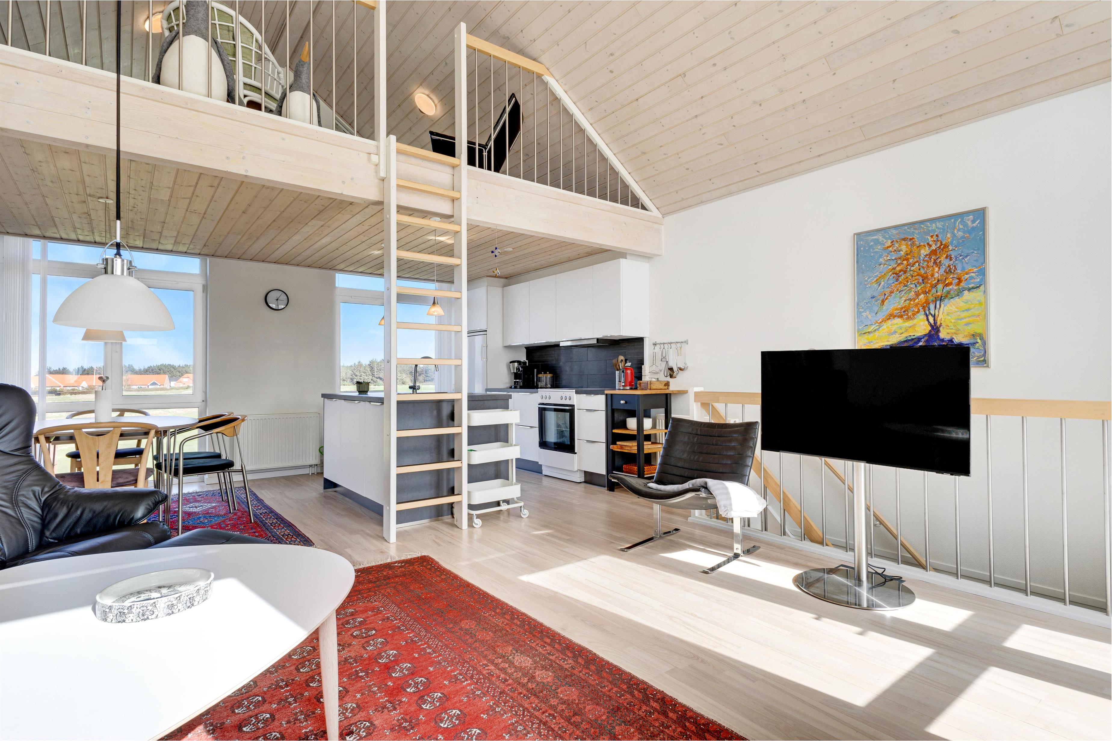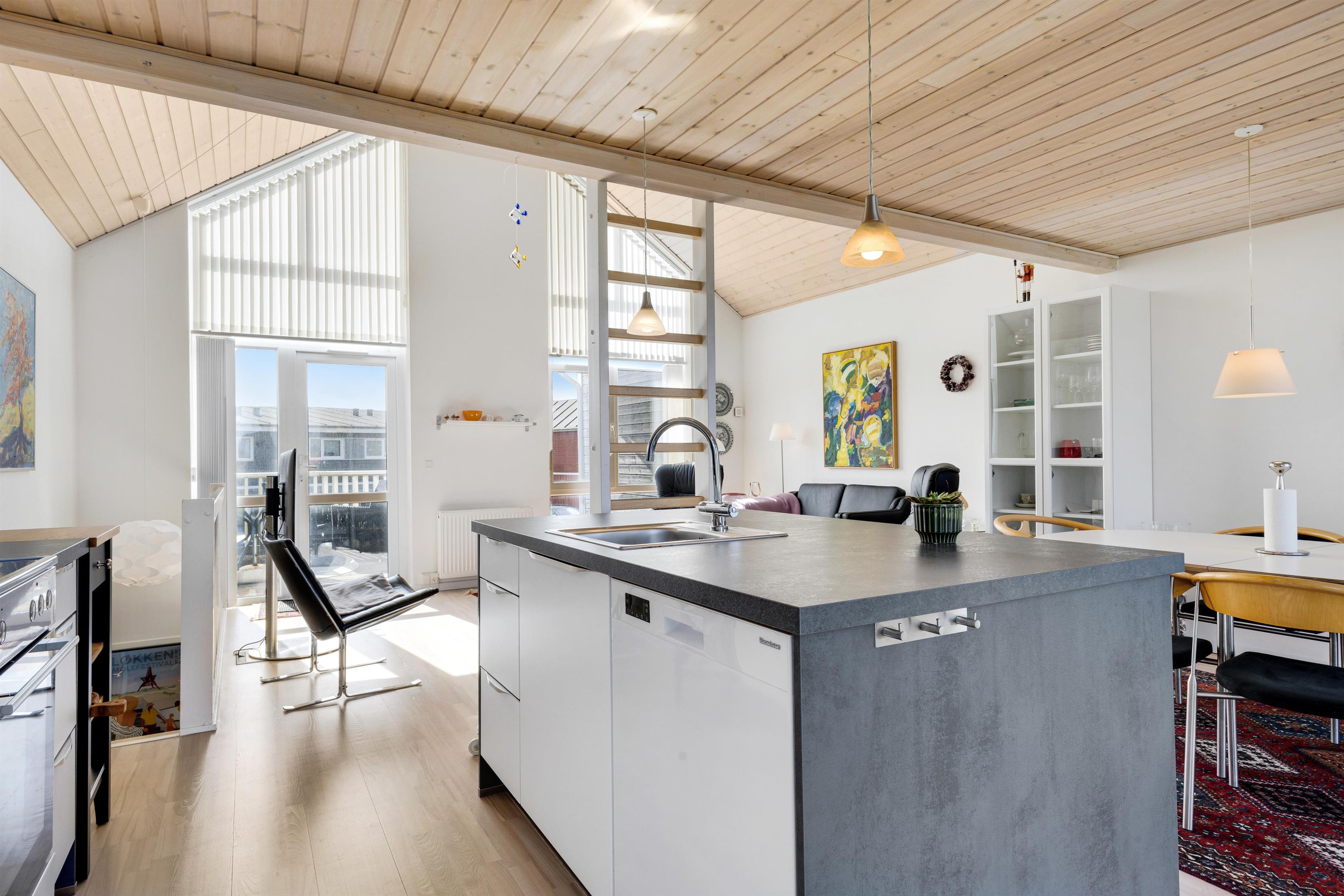 Sommerhuset er perfekt beliggende i Løkken med mulighed for både at trække sig tilbage og slappe af med eksempelvis mange timers golf, eller hygge sig på en af husets to terrasser, den ene er i stueplan ved husets hoveddør og den anden er på første sal med udgang fra den hyggelige stue.