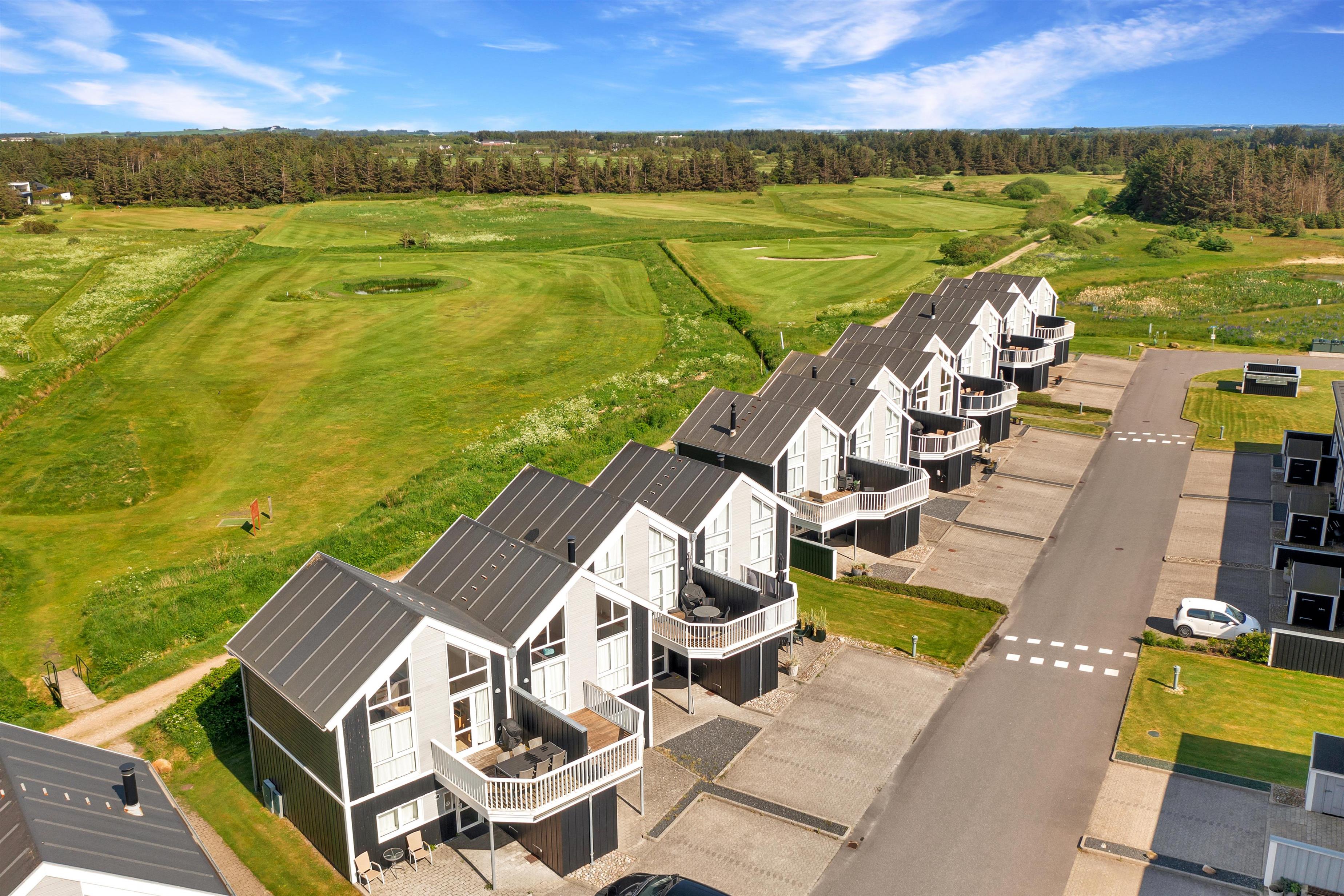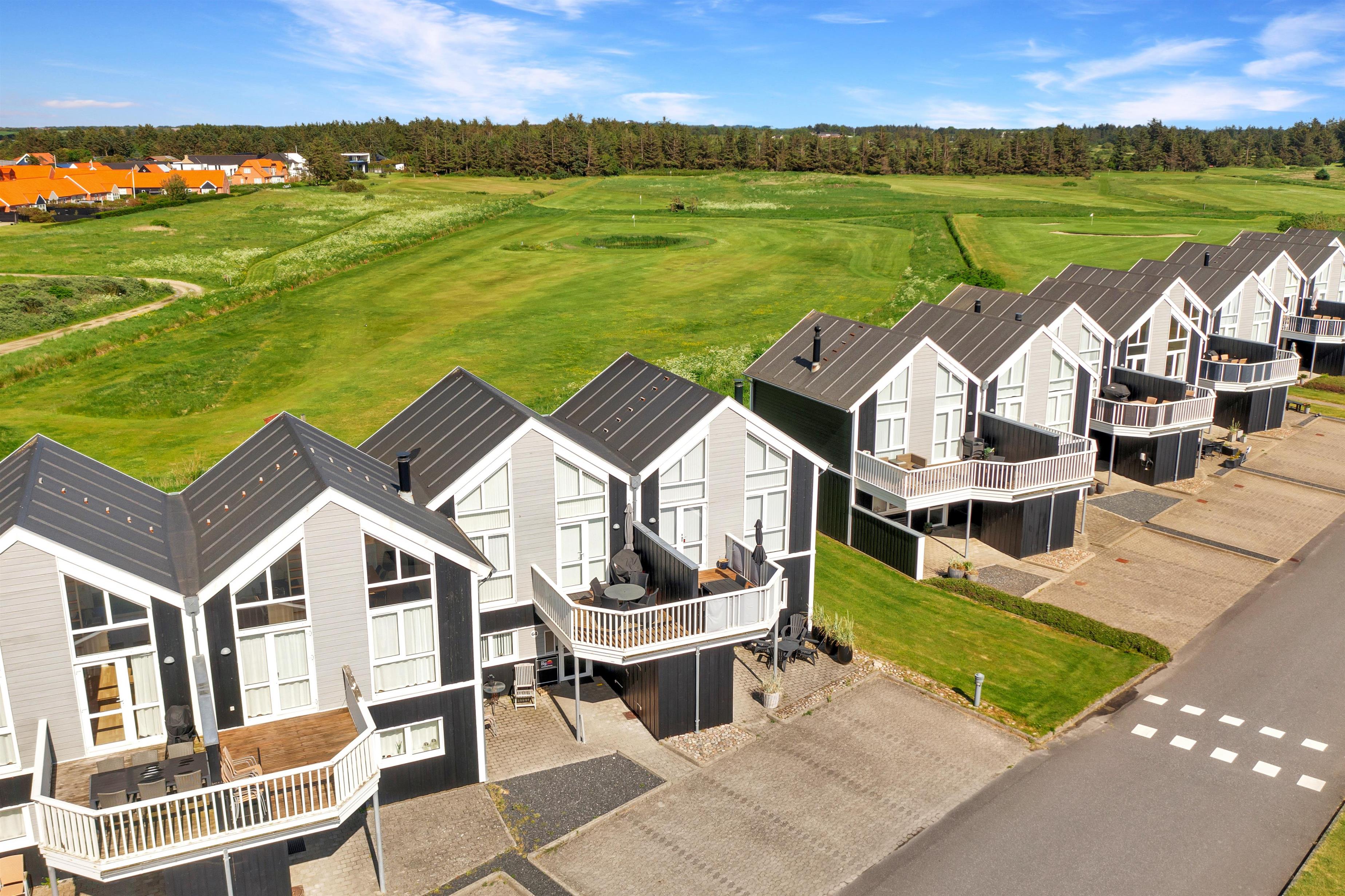 Charmerende sommerhus i Løkken med udsigt over golfbane og nær strand, perfekt til afslapning og aktiviteter.