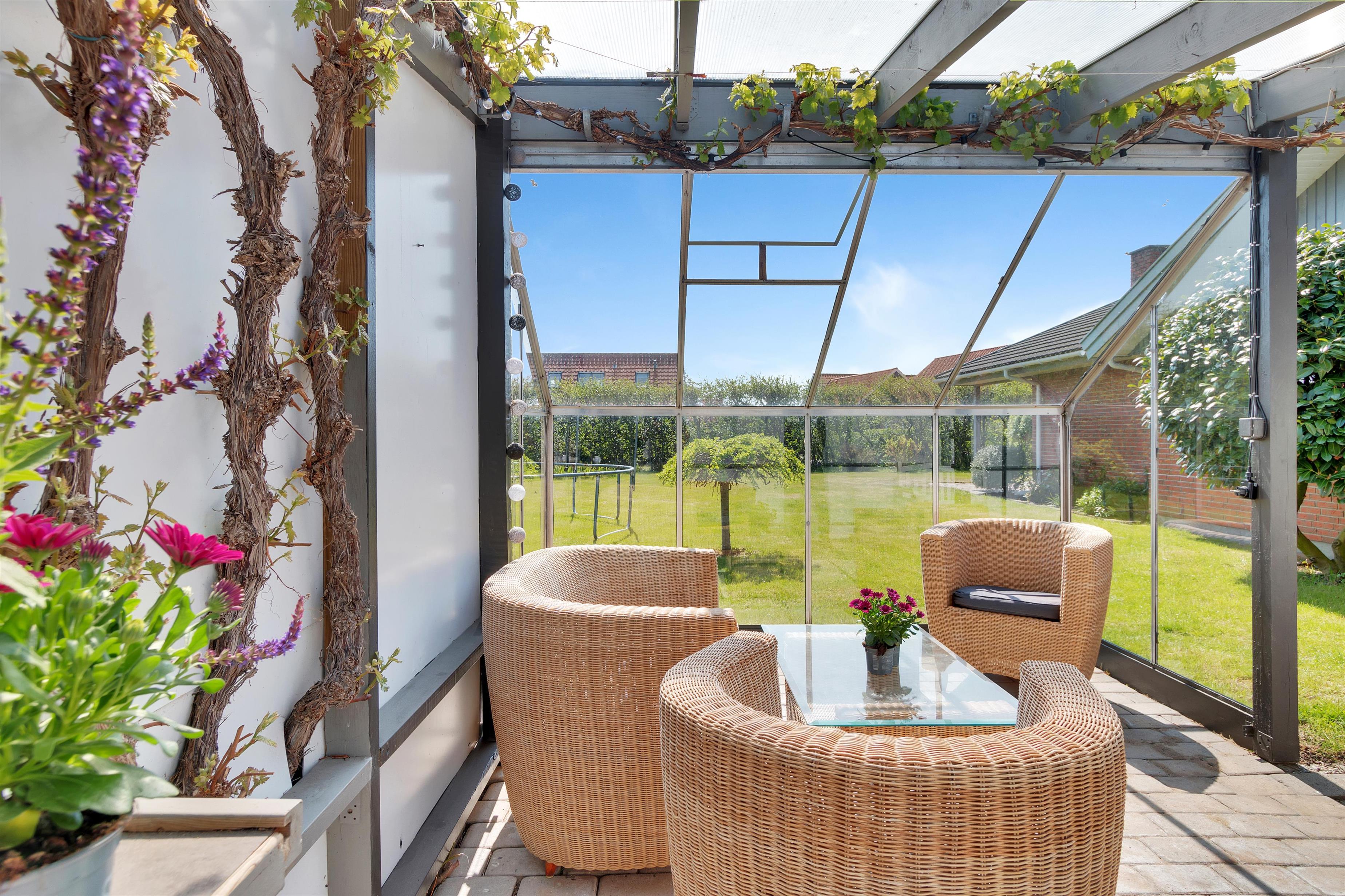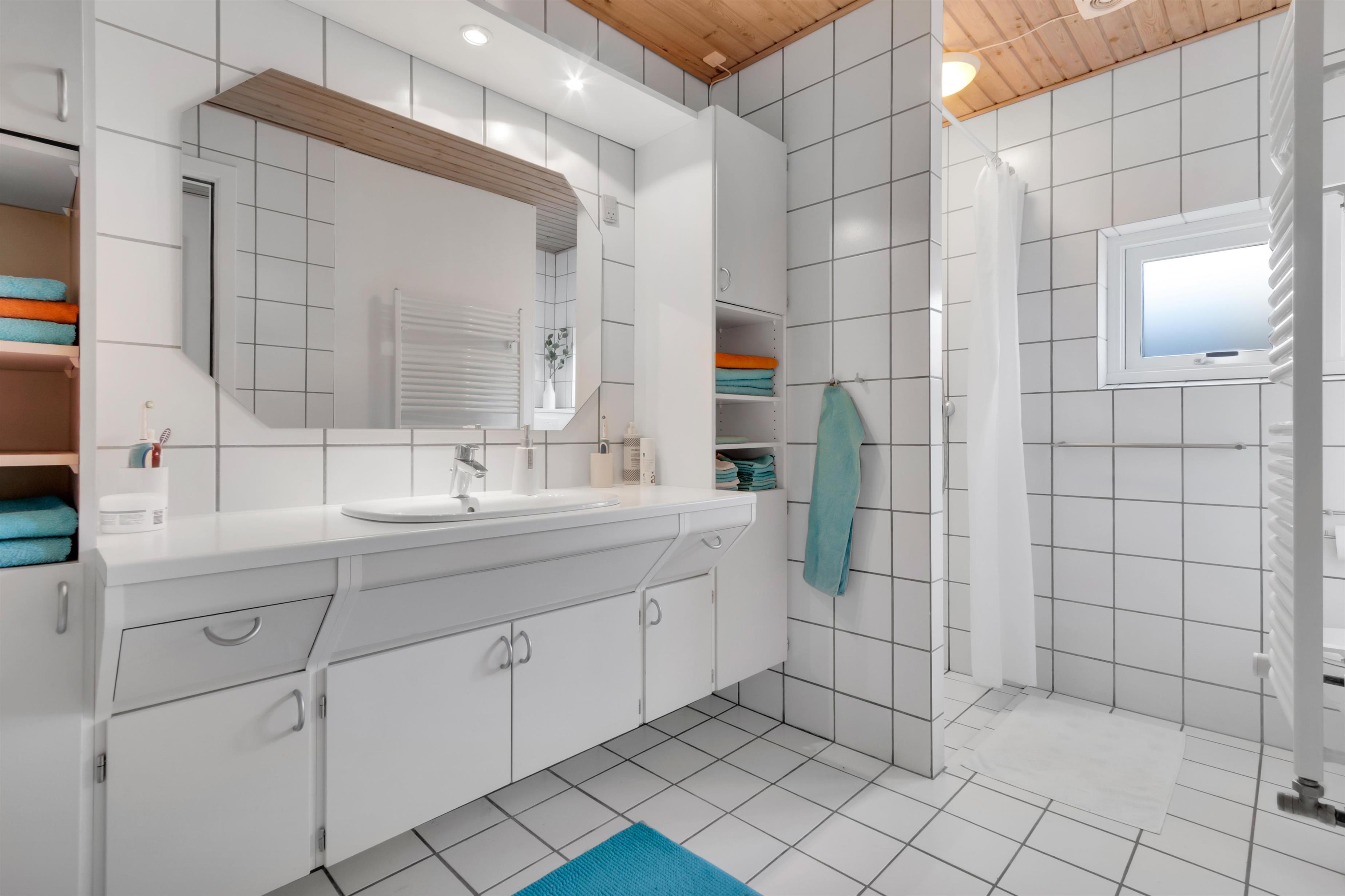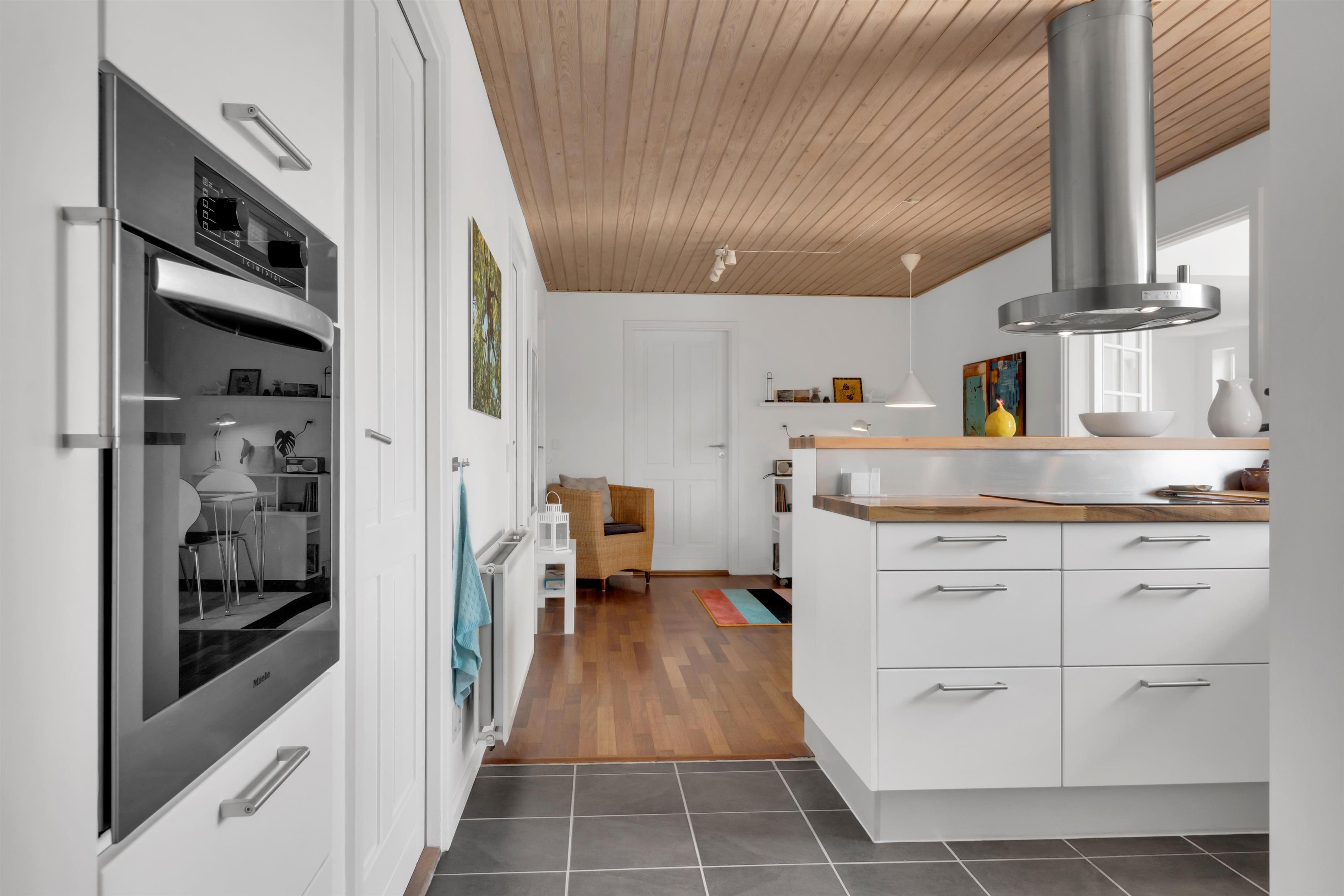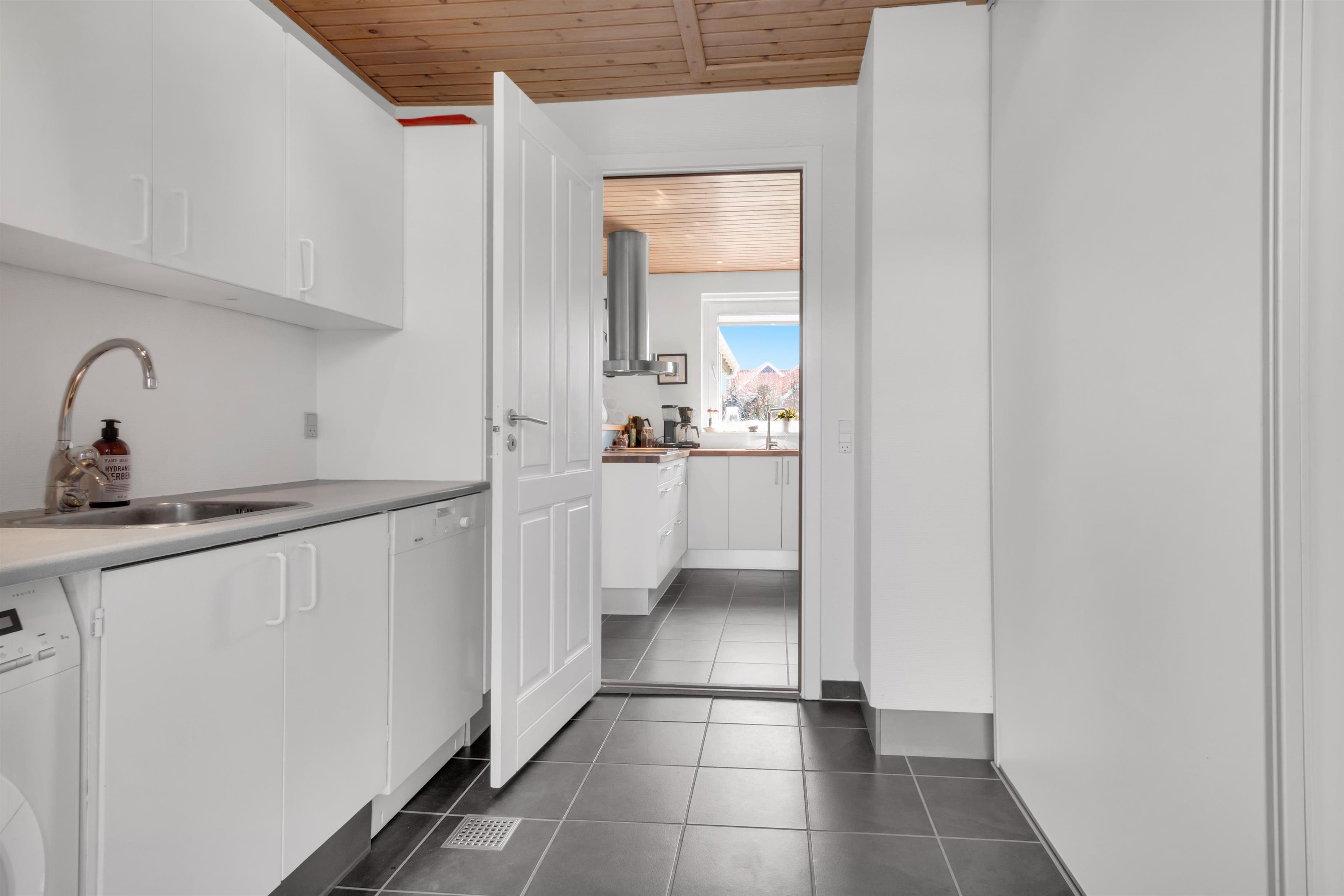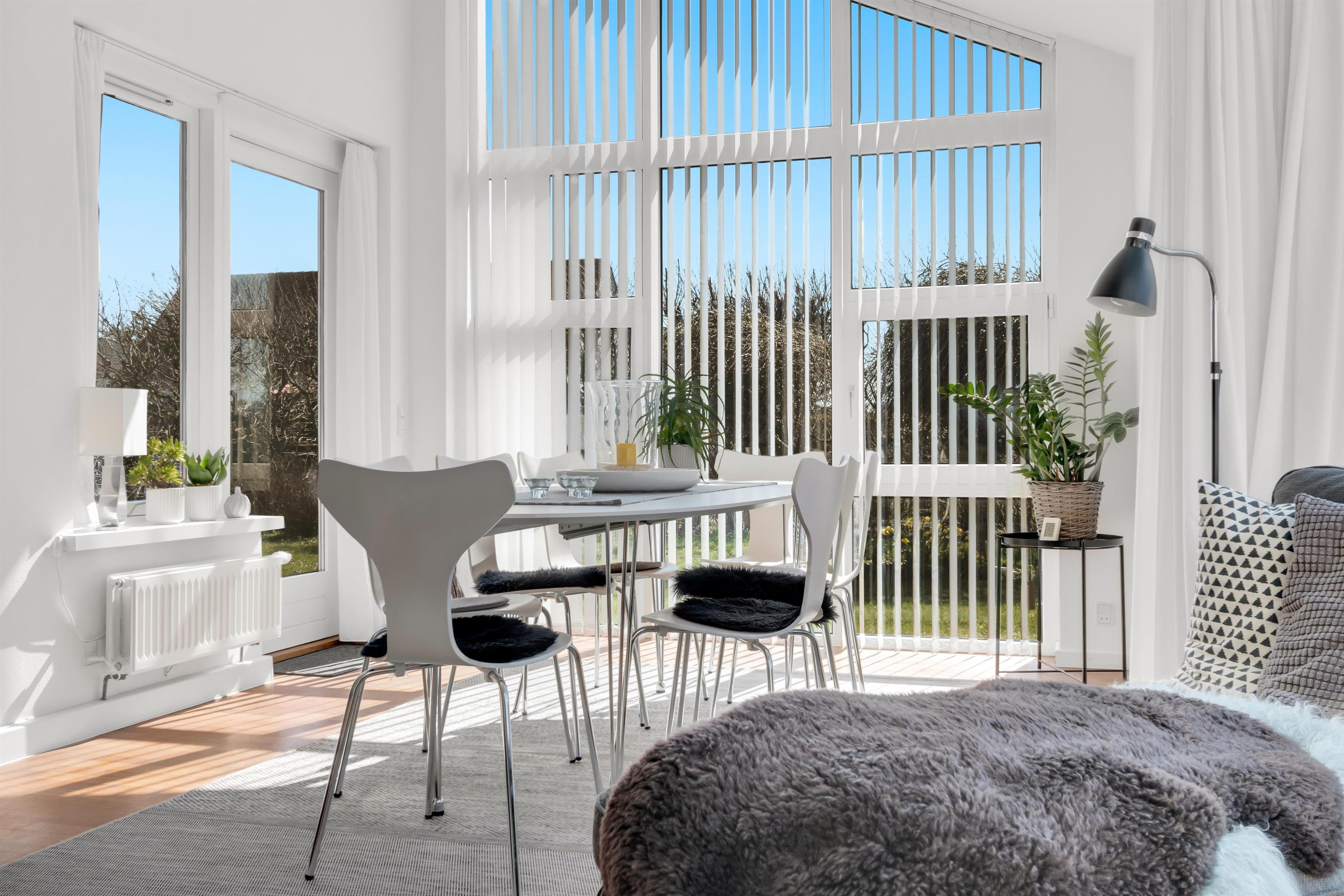 Ud over at boligen kan rumme hele 9 personer, må husets hjerte siges at være det utroligt skønne opholdsrum med store vinduespartier og et fantastisk lysindfald. Her er en chaiselong at slænge sig i, et stort spisebord samt en rigtig flydersofa foran brændeovnen. Til den ene side er der dobbeltdøre fra opholdsrummet og ud til køkkenet, hvor der ligeledes er ekstra spiseplads, og til den anden side er der udgang til den dejlige, afskærmede have. Der er fire soverum og sovepladserne er fordelt på køjesenge, enkeltsenge, dobbeltseng og sovesofa - og dertil en barneseng. Køkkenet er dejligt åbent og der er fjernvarme i huset, hvilket er en billig varmekilde. Der er et enkelt badeværelse med toilet, et ekstra toilet og et skønt bryggers.