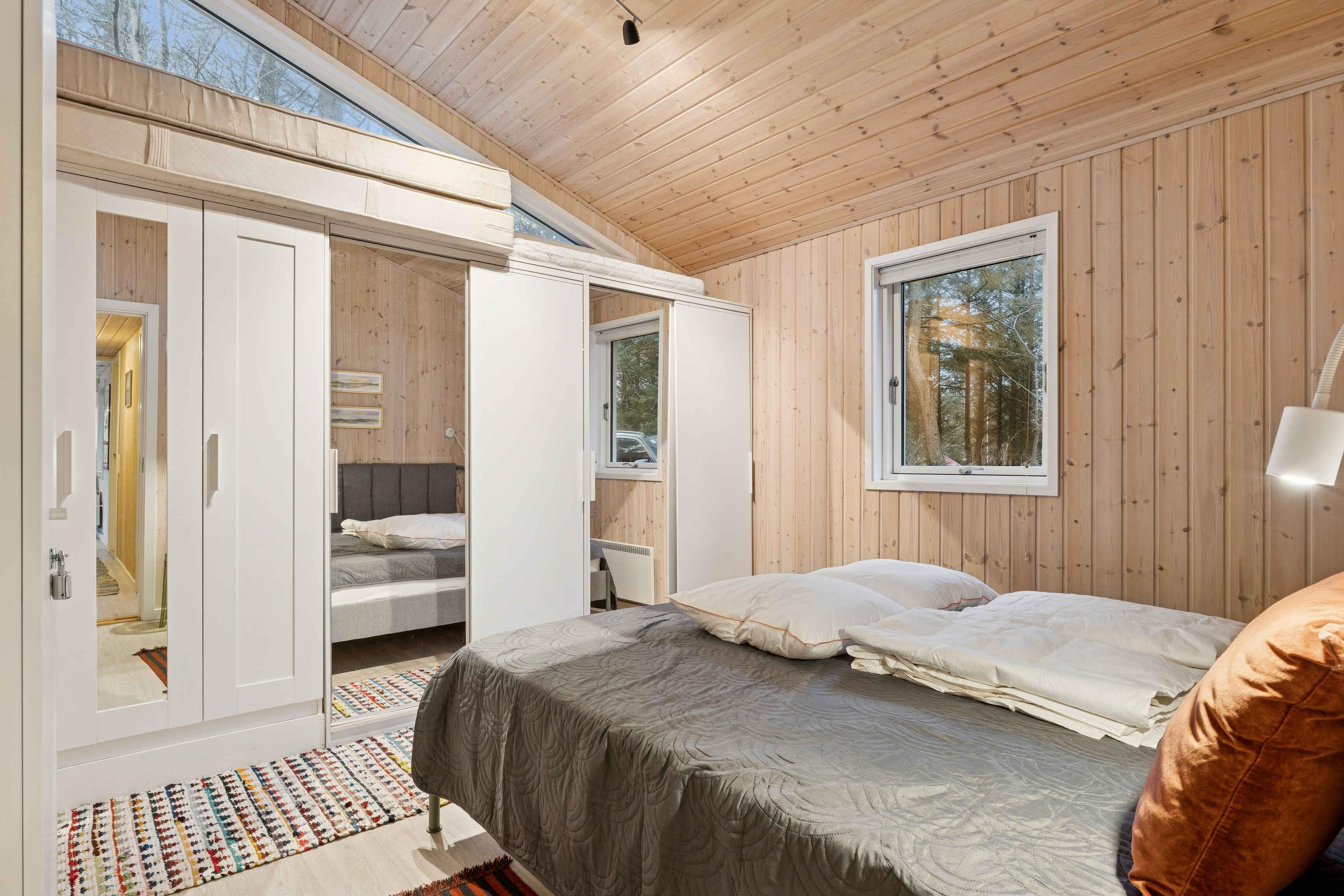 Sommerhuset er beliggende i Nørre Lyngby, 4 km nord for Løkken og 10 km syd for Lønstrup og 25 km fra Blokhus. Der er således nem adgang til flere af de hyggelige byer i området, som byder på et væld af aktiviteter, spisesteder og liv. I Nørre Lyngby er der roligt og hyggeligt, og med under 800 meter til Vesterhavet. Nørre Lyngby strand har fint hvidt sand og smukke stejle klitter. Stranden har det hvide badeflag, som bl.a. symboliserer, at badevandskvaliteten er høj. Huset ligger på en 2.250 m2 grund, der både rummer græsarealer og skov. På grunden er der desuden et shelter til fri afbenyttelse. Grunden ligger roligt og ugenert ud til en grusvej. Huset er på 116 m2 og består af en oprindelig, men renoveret, del fra 1969, og en nybygget del fra 2014. Man kommer ind i huset igennem bryggerset, hvor man til den ene side har et stort soveværelse med dobbeltseng (180x200) og et badeværelse, og til den anden side kommer ind i køkken/alrummet. Køkkenet er fra 2023 og rummer fint plads til 6 personer. Fra alrummet er der adgang til husets meget hyggelige og rummelige stue hvor der både er brændeovn og en sofagruppe. Her er der forskellige bøger og spil til fri afbenyttelse. Herudover er der adgang til en hyggelig hems. Fra både stue og alrummet er der adgang til en delvist overdækket terrasse. Fra køkkenet er der adgang til husets andet badeværelse. Herudover er der adgang til husets to øvrige mindre soveværelser. Det ene består af 2 senge på 70x190 og det andet værelse har 2 boksmadrasser på 80x200.