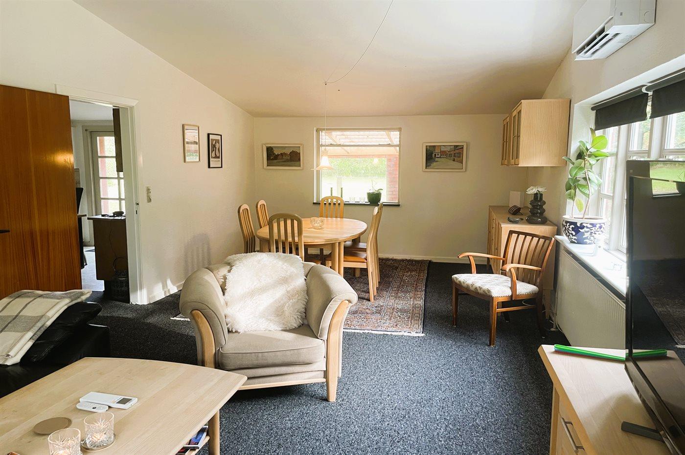 Der er i alt 3 soveværelser. Sovepladserne fordeler sig på: 4 sovepladser i dobbeltsenge. 2 sovepladser i enkeltsenge.
