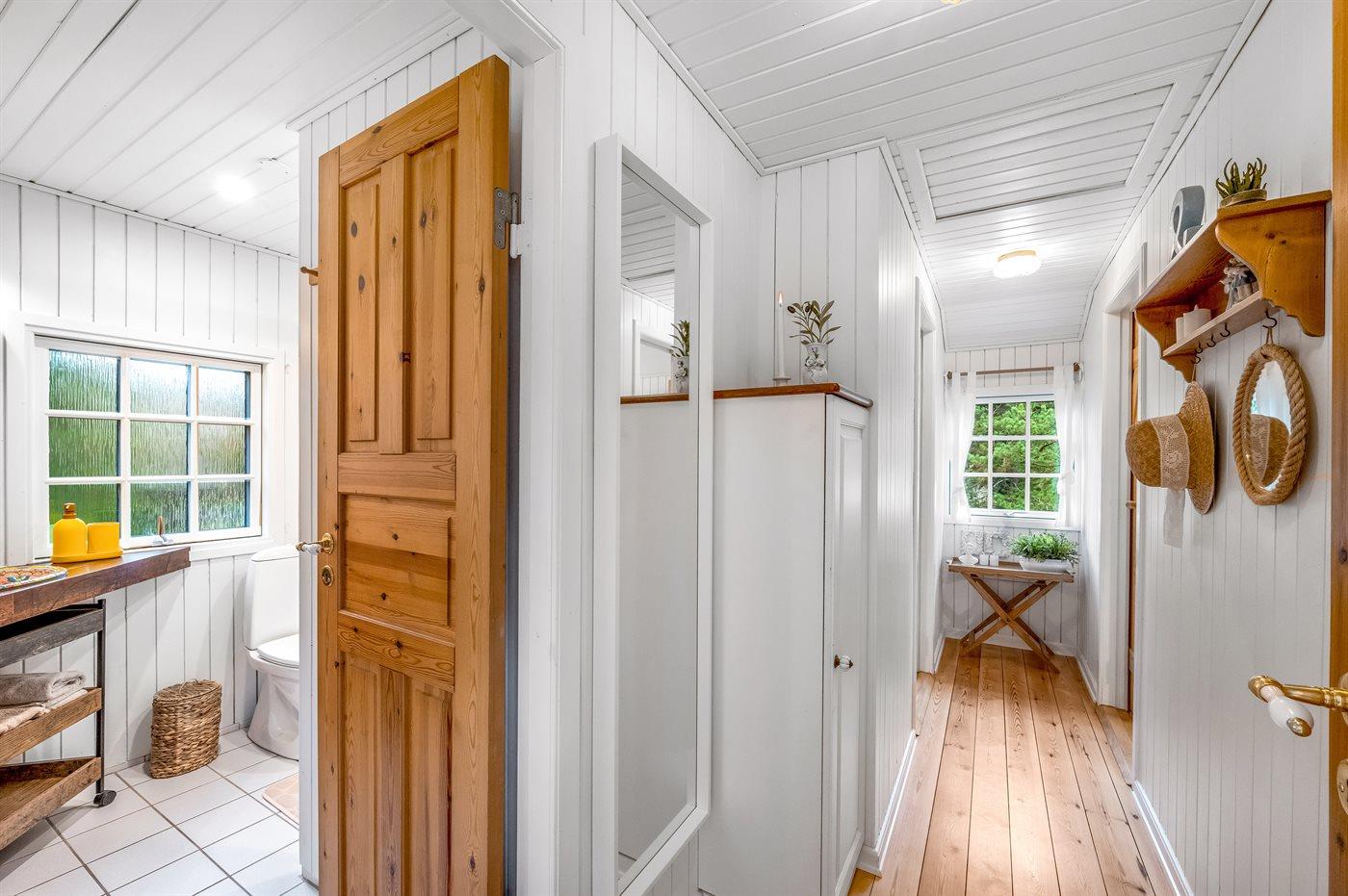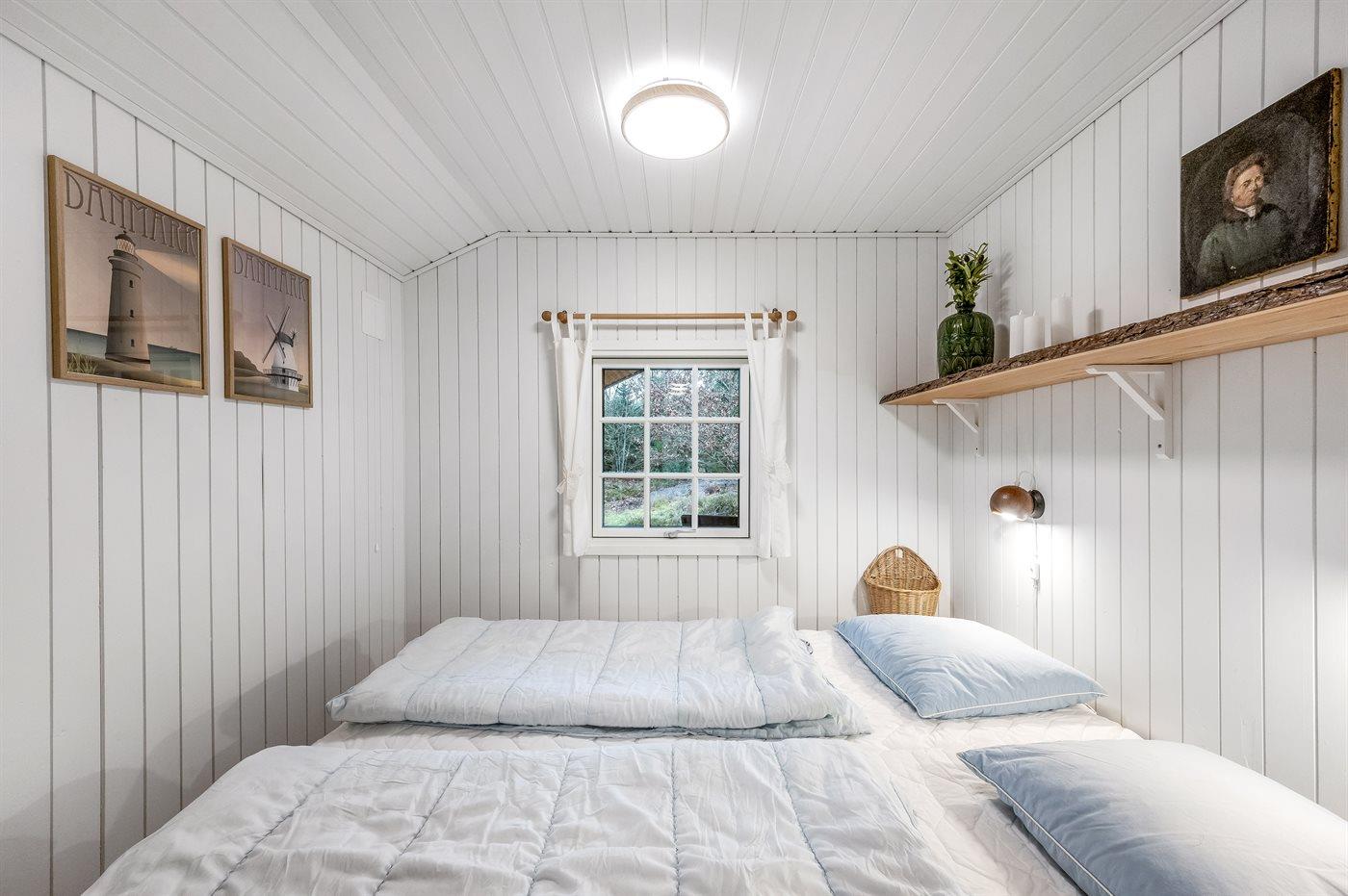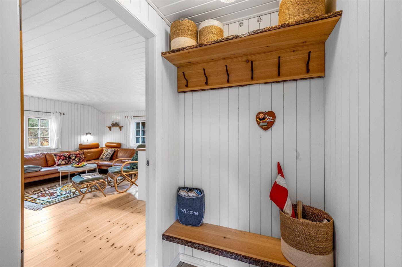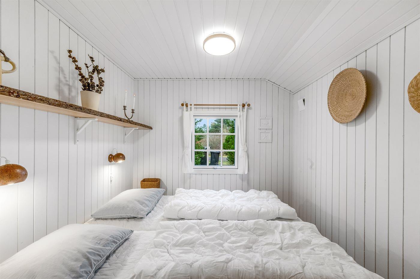 Indenfor er sommerhuset smukt og stilfuldt indrettet med en afslappende sommerhusvibe. Sommerhusets køkken er velindrettet, og her er der plads til, at flere kan hjælpes ad og hygge sig sammen om madlavningen. Fra køkkenet er der åbent til sommerhusets hyggelige stue med den store sofa, hvor I kan slappe af med en god bog eller se en film. I spiseafdelingen kan I tænde op i brændeovnen, og nyde de store gulv til loft vinduer, der giver fornemmelsen af at sidde midt ude i naturen.