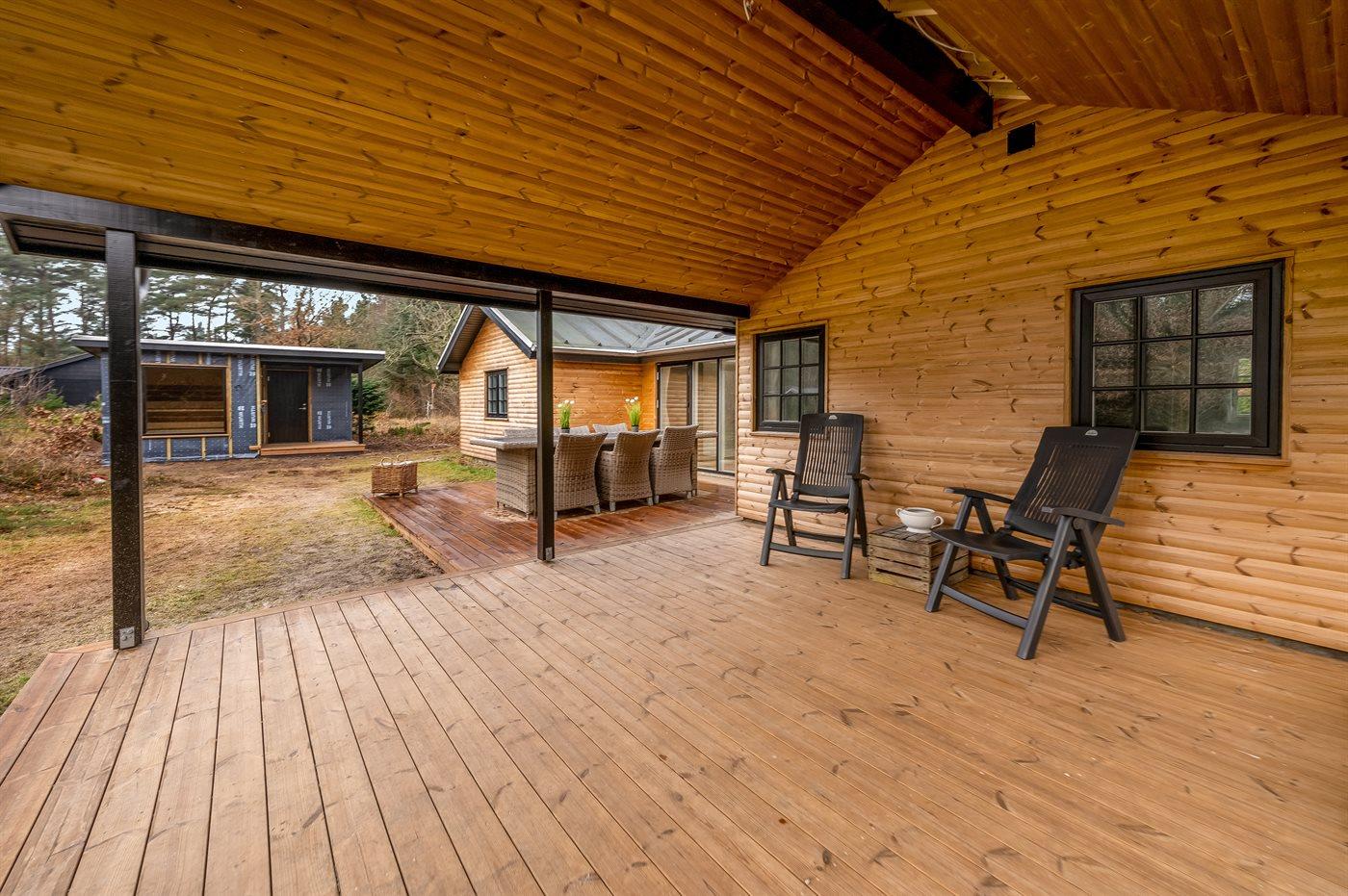 Udenfor på de smukke træterrasser kan I nyde naturen og forkæle jer selv med afslapning og velvære i den lækre udesauna, og I kan tage et kølende bad under udebruseren. Det er en fantastisk oplevelse både sommer og vinter. Grunden er designet efter princippet ’vild med vilje’, og her er der plads til sjov, leg og gåen på opdagelse for både hund, børn og barnlige sjæle. Her finder I flere helt ugenert beliggende terrasser og solkroge.