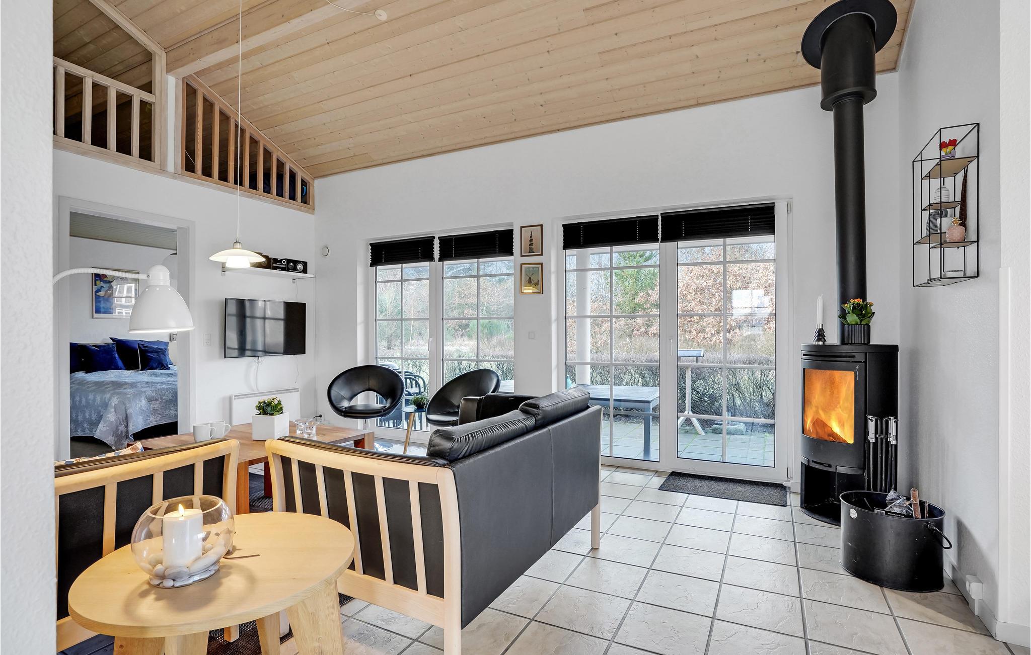 Højt til loftet, masser af lys og god plads. Det er hovedingredienserne i dette sommerhus, hvor I får opskriften på en god ferie. Børnene kan slå sig ned i deres egen hule på hemsen, mens hele familien kan samles til brætspil i den store stue, hvor brændeovnens knitrende ild garanterer hyggen. Udendørs har I terrasse og stor have til leg og spil.