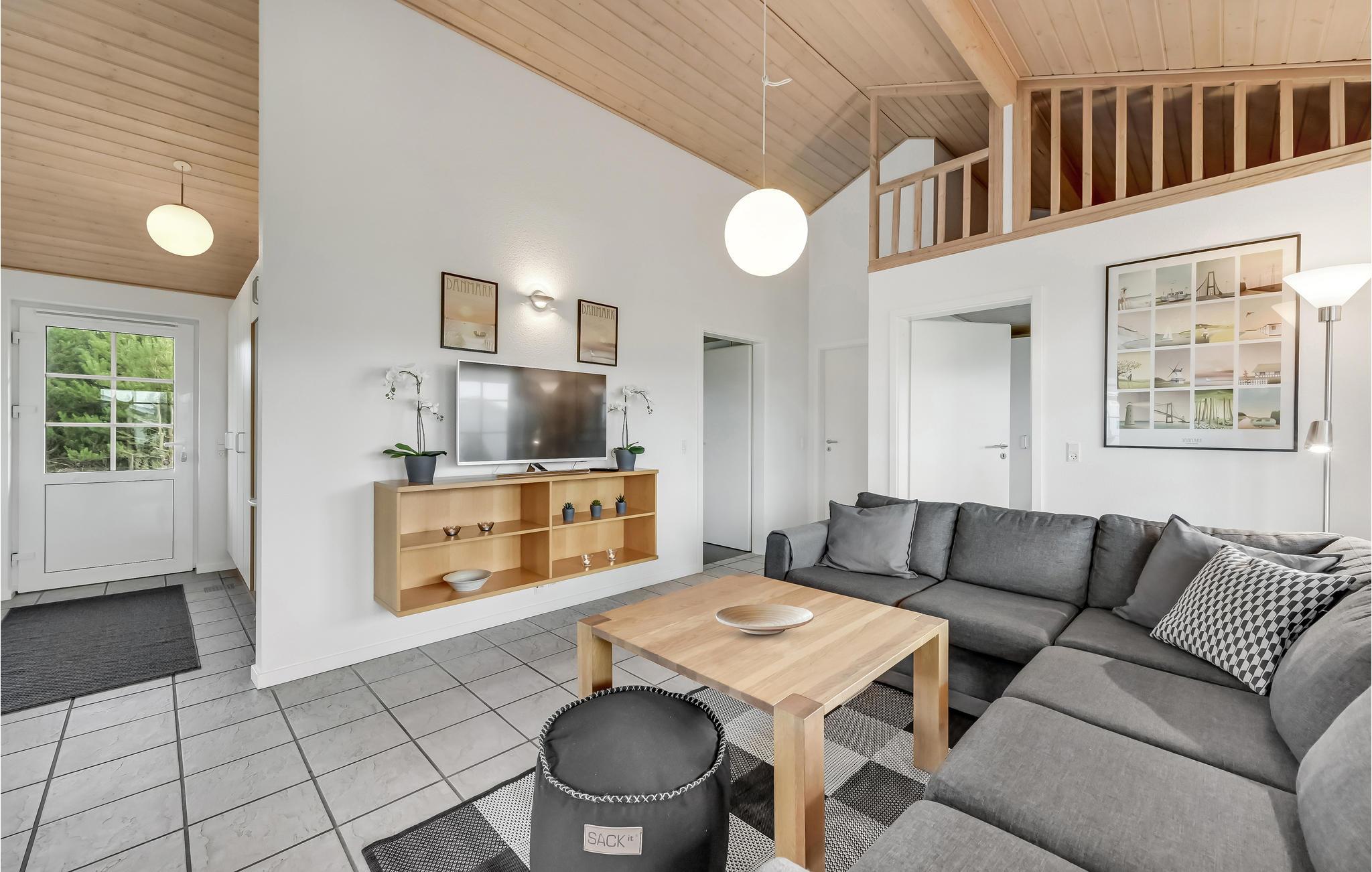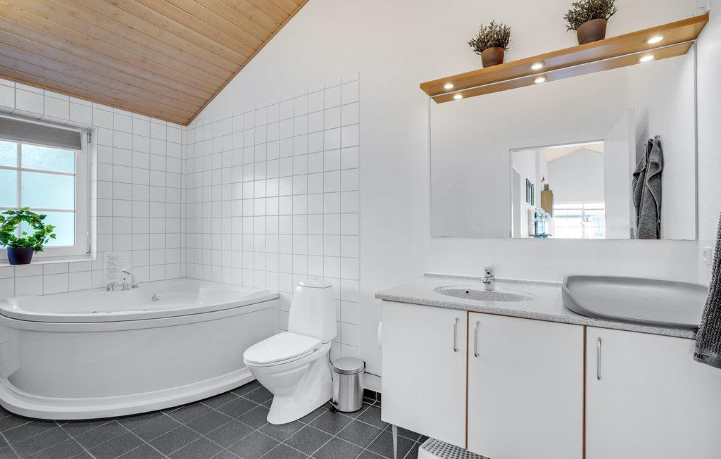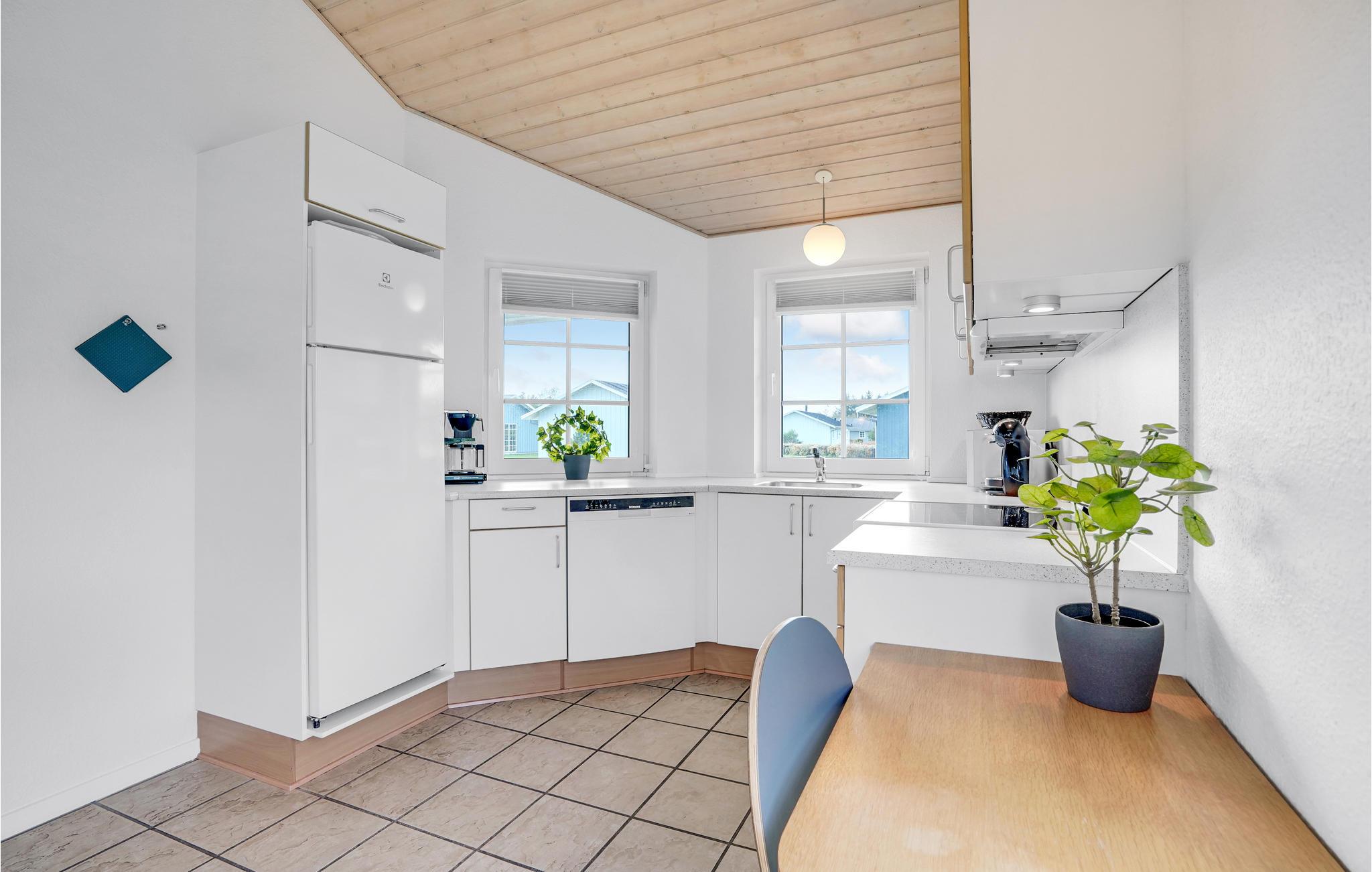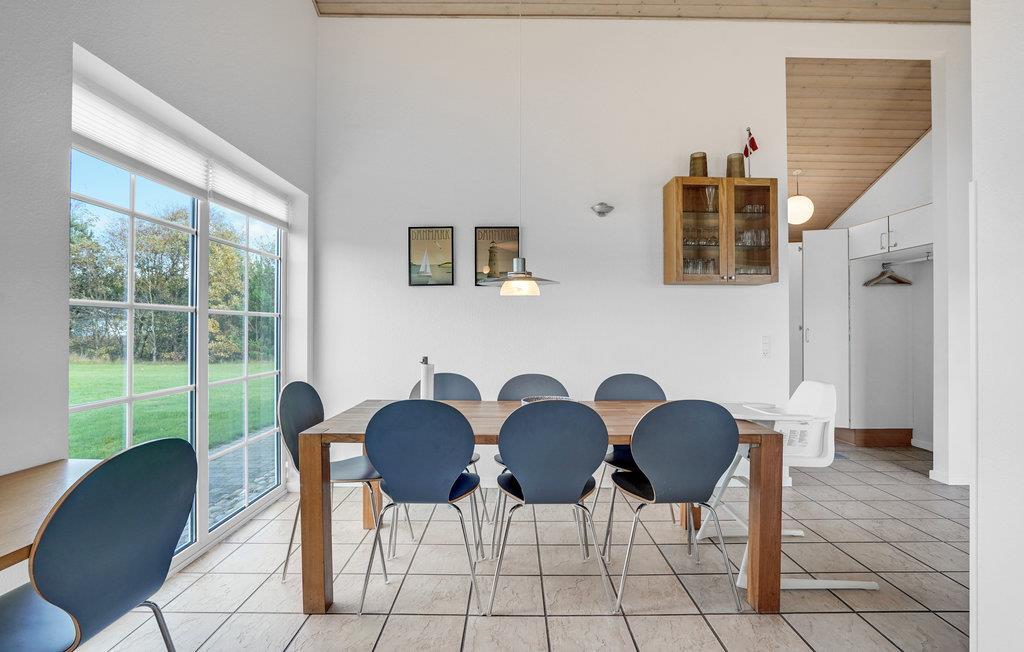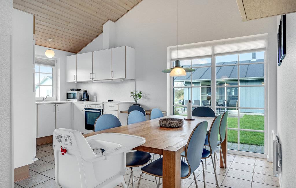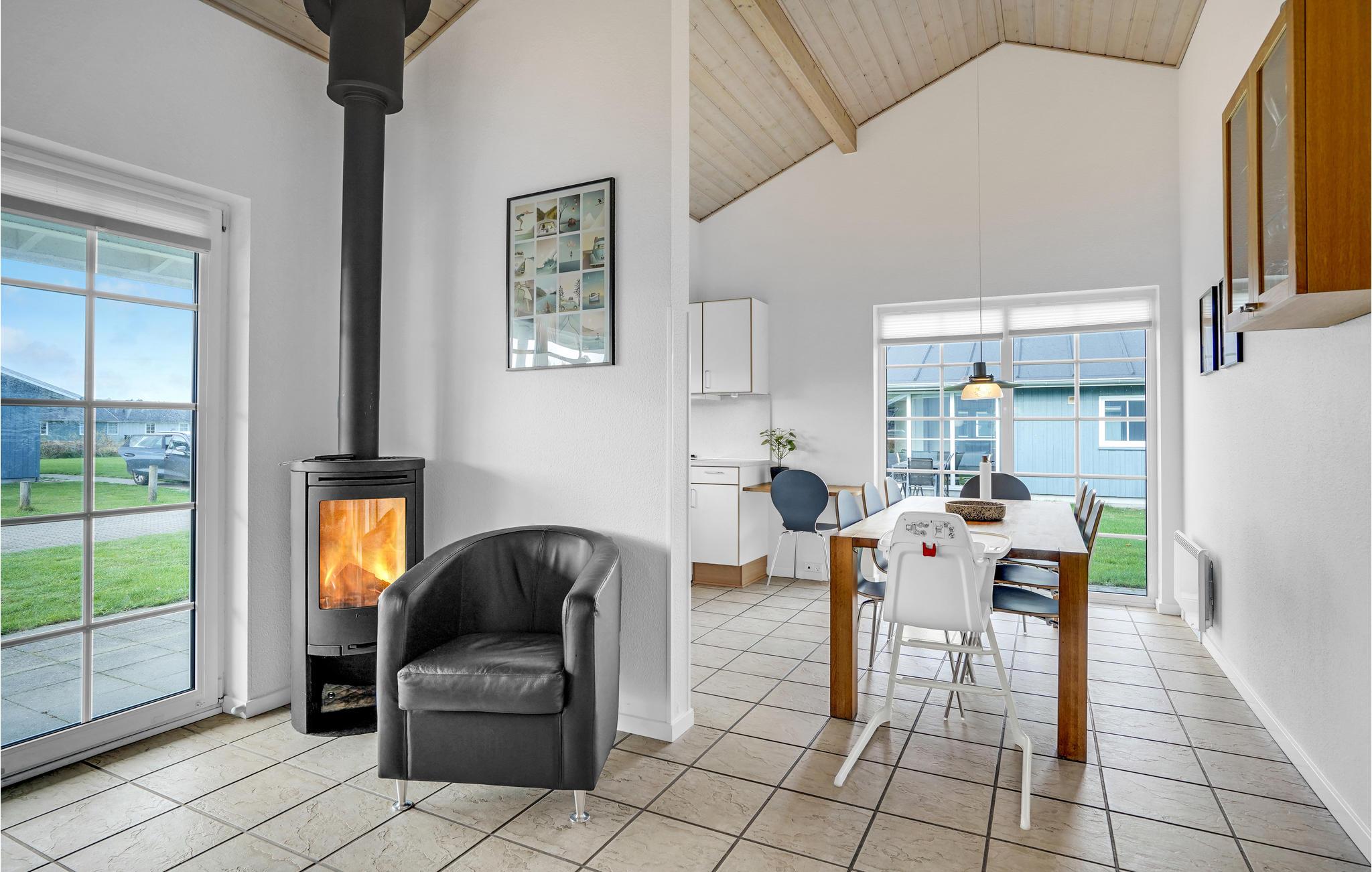 Dette hyggelige, lyse feriehus har plads til op mod otte gæster. Her får I nogle skønne dage, hvor I kan give jer god til i køkkenet og nyde lækker friskbrygget kaffe fra Dolche Gustos kapselmaskine. I opholdsstuen er der brændeovn og udgang til delvis overdækket terrasse, så både i sommer- og vinterhalvåret får I et dejligt rum til familiehyggen her. Begynd dagen med en morgenmad på terrassen eller sæt jer her med et glas vin sidst på dagen. Badeværelset har et spabad, hvor I kan læne jer tilbage efter en forfriskende gåtur ved havet. Der står også en grill klar til hyggelige aftener med familien eller vennerne, og baghaven giver børnene masser af plads til at løbe og lege.