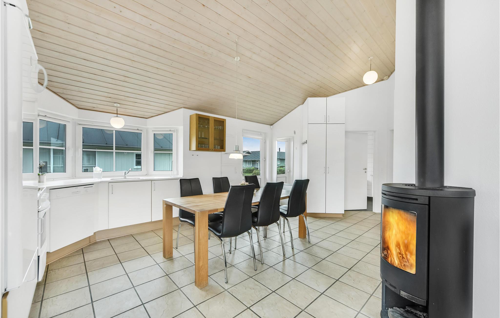 Huset har et flot og rummeligt køkken og stue med brændeovn og udgang til en delvist overdækket terrasse. I det skønne badeværelse er der jacuzzi, hvor I kan slappe af efter en frisk gåtur ved havet. Der er flere gode aktivitetsmuligheder i området, herunder mountainbikestier, vandrestier og det fascinerende Vesterhav er mindre end 15 minutters kørsel væk.