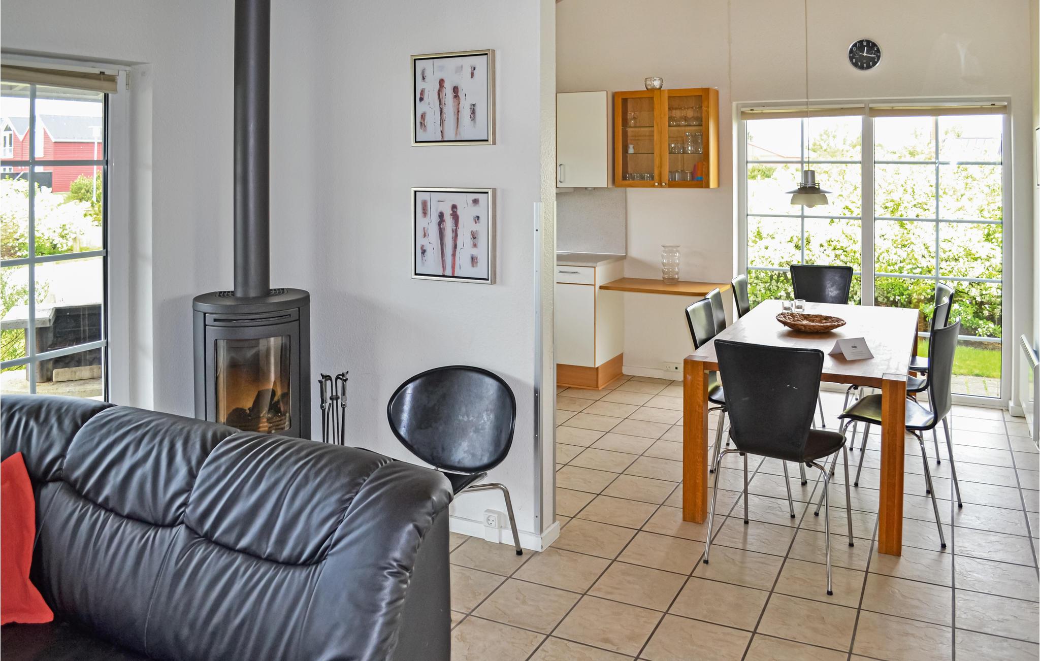 Huset har et dejligt og rummeligt køkken/alrum med brændeovn og udgang til en delvis overdækket terrasse. I det flotte badeværelse er der spabad, hvor I kan slappe af efter en frisk gåtur langs havet. I området er der flere gode aktivitetsmuligheder, bl.a. mountainbikeruter, vandrestier og det fascinerende Vesterhav ligger under 15 minutters kørsel væk.