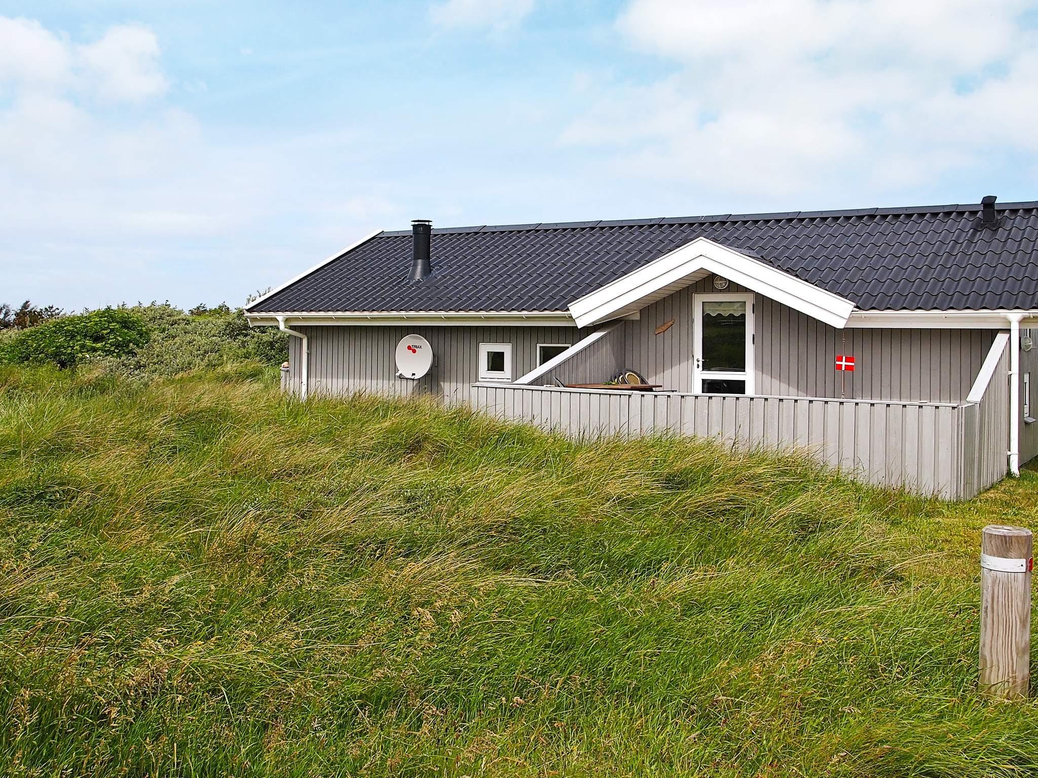 Ca. 100 m fra havet på en stor, let kuperet klitgrund ligger dette velholdte sommerhus. Fra et par af vinduerne i stuen kan I lige akkurat skimte havet, mens I fra et højt punkt på grunden har en god havudsigt. Opholdsstue i åben forbindelse med køkkenet, to soverum, alkove og badeværelse med bruseniche og gulvvarme. Indretningen er smagfuld og moderne i dansk sommerhusstil og med hovedvægten lagt på trivsel, samvær og hygge. Til billig opvarmning og hygge er der brændeovn. Den åbne terrasse mod syd/vest har godt med læ, mens den øst/syd vendte terrasse er overdækket. Grunden er åben, let kuperet og har udsigt over havet fra et højt punkt.