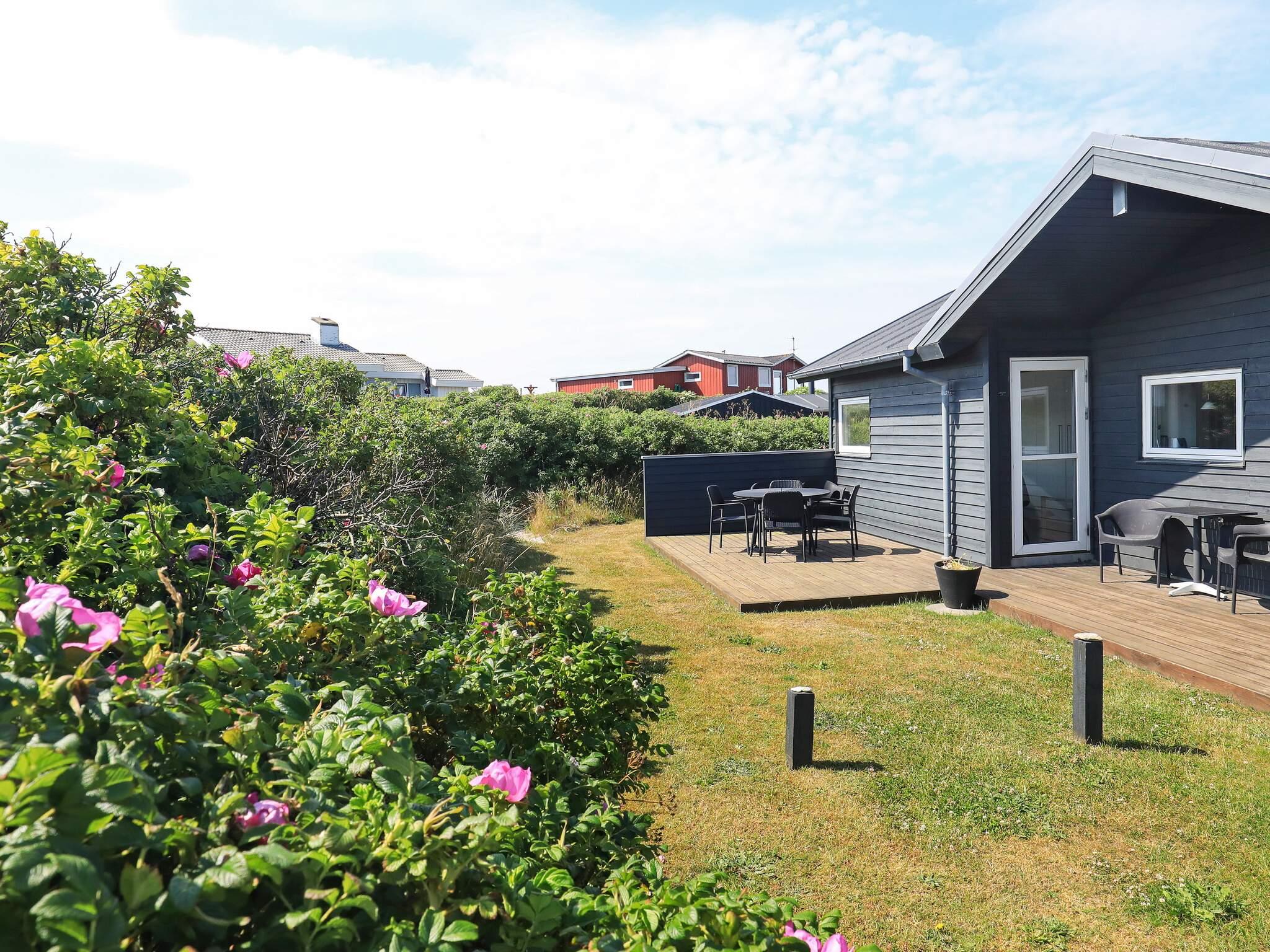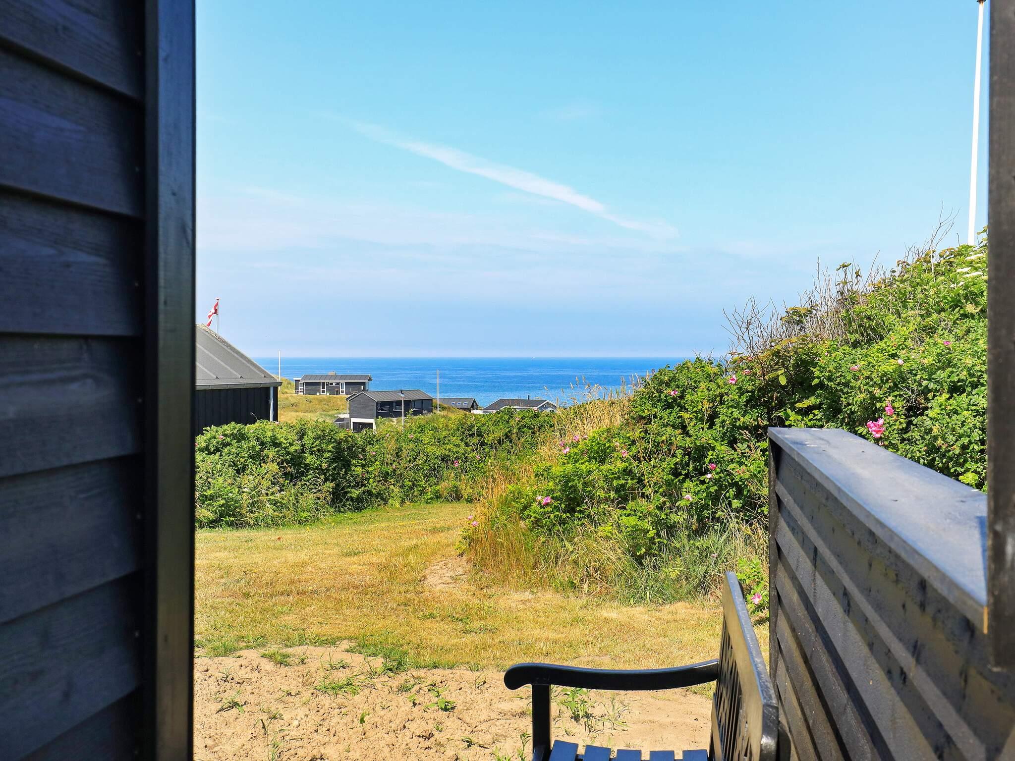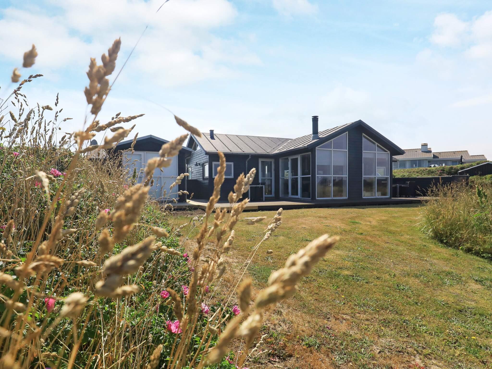 Arkitekttegnet sommerhus med panoramaudsigt over Vesterhavet fra værelser, køkken og stue. Huset er beliggende på en 750 m² naturgrund få hundrede meter fra badestrand. På grunden er der rig mulighed for boldspil m.m. Moderne møblering med bl.a. fladskærms-tv med parabol og dvd-afspiller, konvektionsbrændeovn og alle moderne bekvemmeligheder. Huset er indrettet med åbent køkken/alrum og stue med klinkegulv. Der er fra værelser samt stue udgang til de store træterrasser.