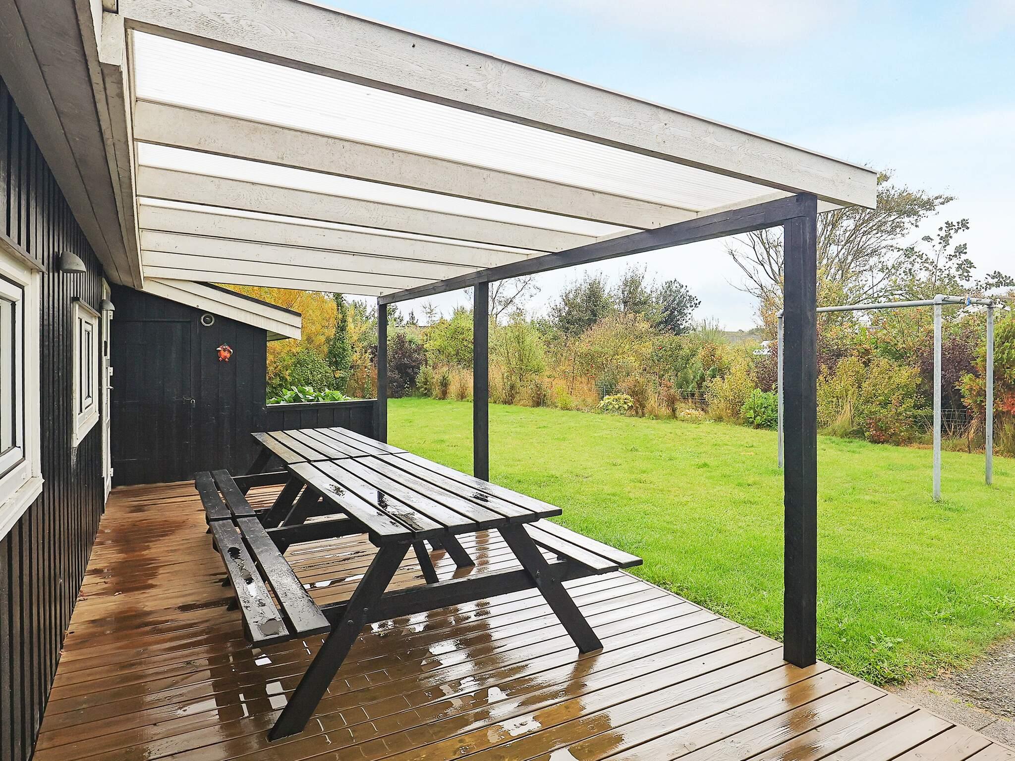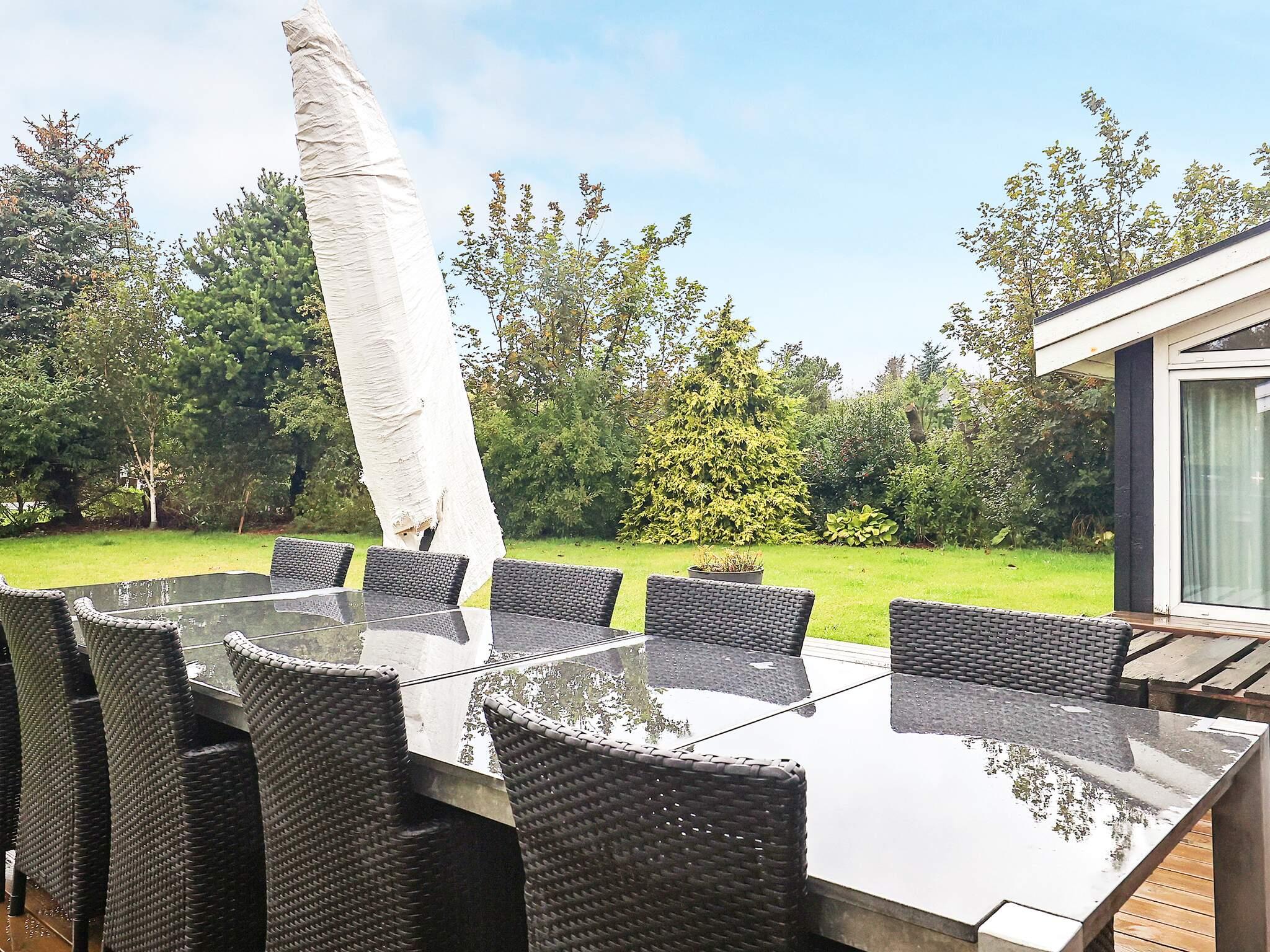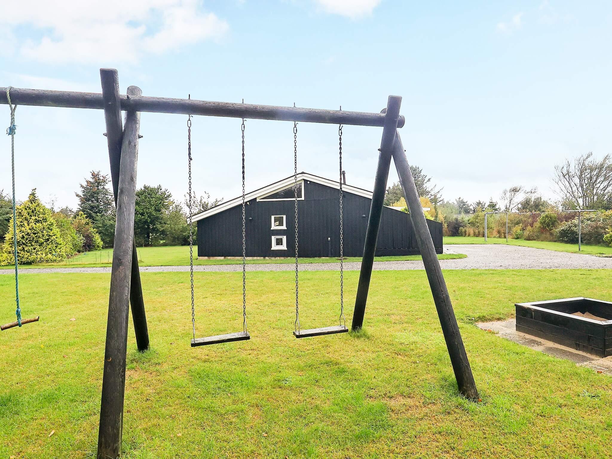 På den store grund er der sandkasse og gynge til børnene. Der er anlagt en overdækket og en åben terrasse mod både øst, syd og vest, så udelivet kan nydes både i dag- og aftentimerne. Den store græsplæne indbyder til boldspil og leg med hele familien.