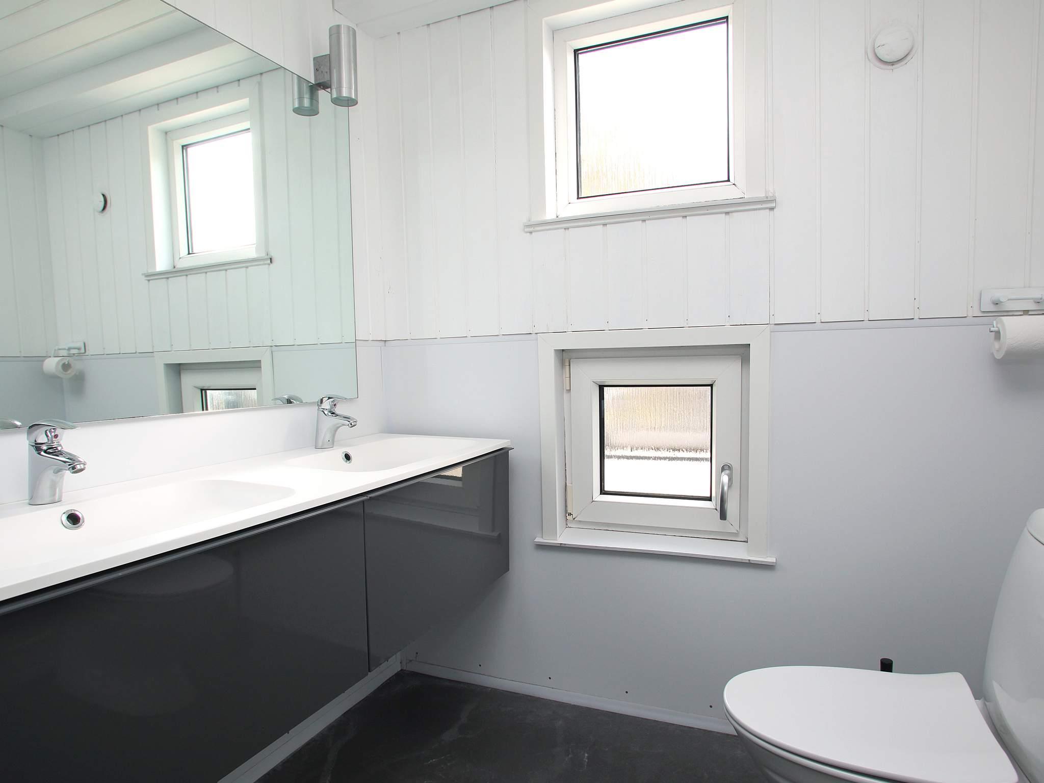 I forbindelse med swimmingpoolen er der adgang til sauna, spabad og ekstra badeværelse med bruseniche og gulvvarme. Det store badeværelse indeholder bruseniche, gulvvarme, vaskemaskine og tørretumbler.