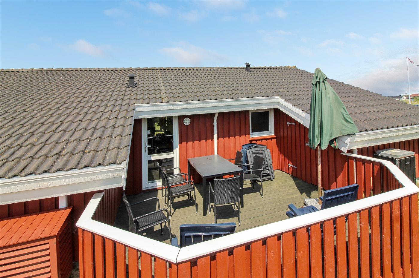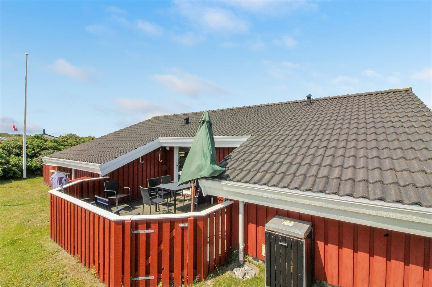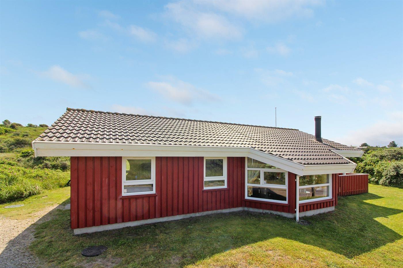 Ferieboligen er beliggende på en 1200 m² stor klitgrund. naturgrund. Der er 300 m til havet. Nærmeste forretning er beliggende i en afstand af 700 m. Til ferieboligen hører 36 m² lukket terrasseareal fordelt på 2 terrasser - heraf er 13 m² overdækket. Der er redskabsrum. Grill til rådighed. Parkering ved ferieboligen.