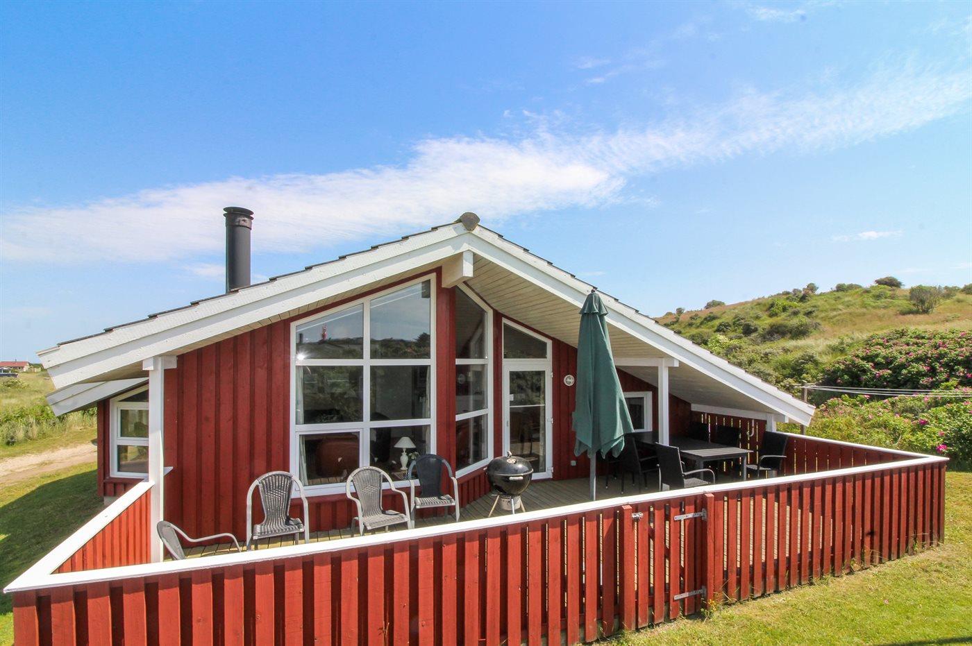 Klassisk dansk sommerhus med en hyggelig indretning beliggende på en åben grund med kig til havet fra såvel hus som grund. Huset ligger i et kuperet og naturskønt område nær havet samt et stort ferieresort med adskillige aktivitetsmuligheder for hele familien.