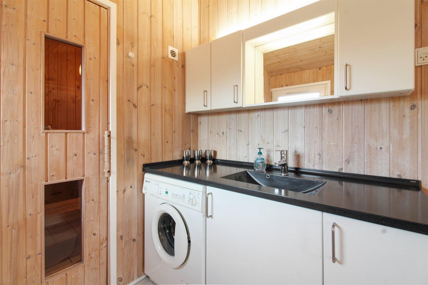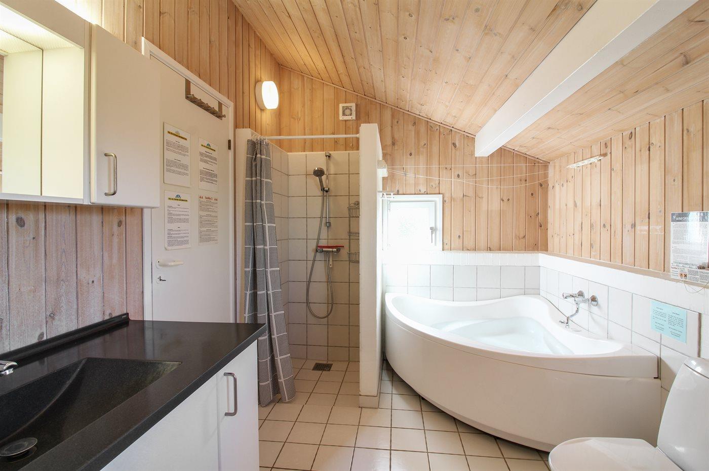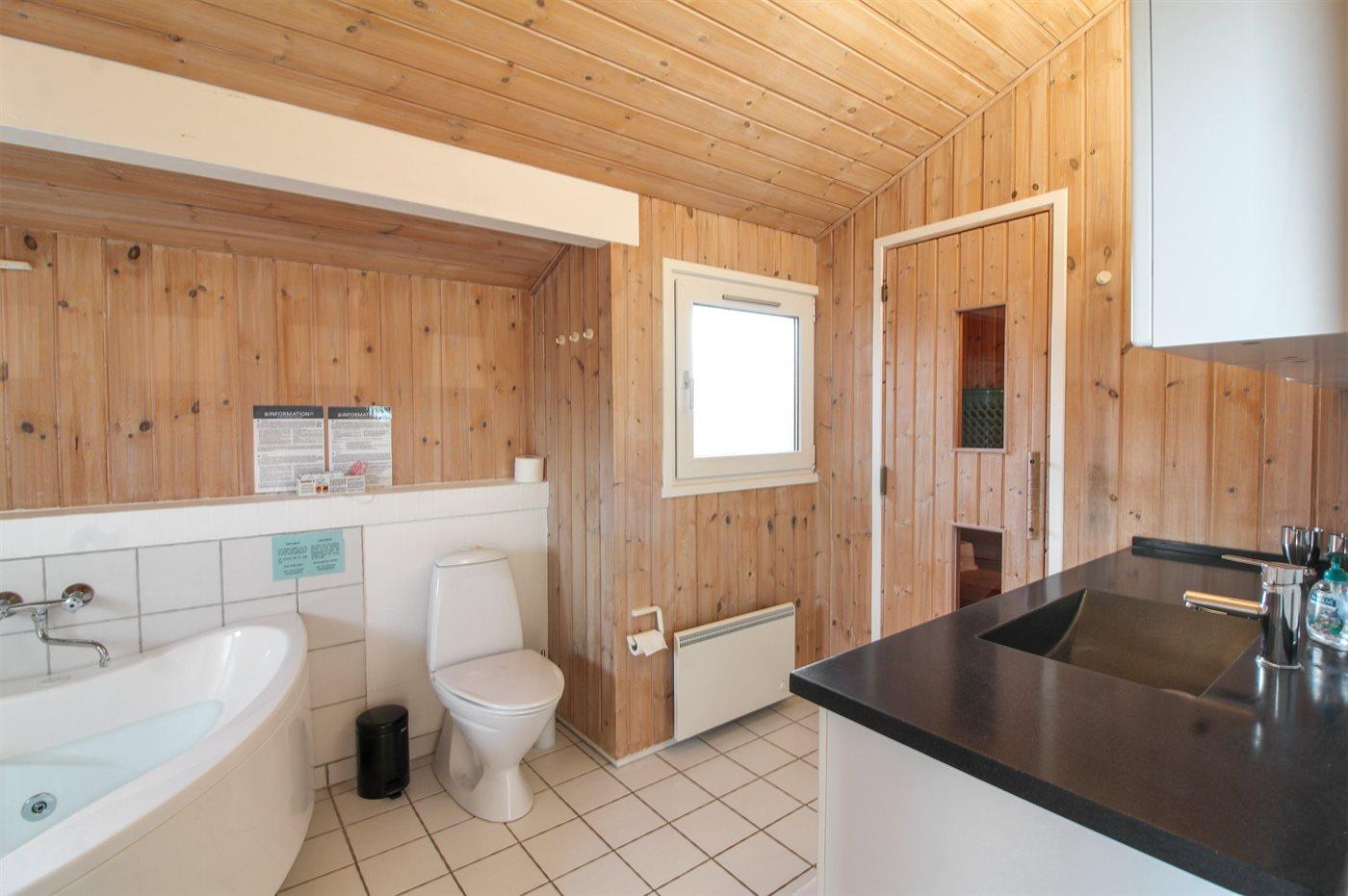 Der er 1 badeværelse med bruseniche og 1 toilet.. Der er gulvvarme på 1 badeværelse. I saunaen er der mulighed for afslapning.