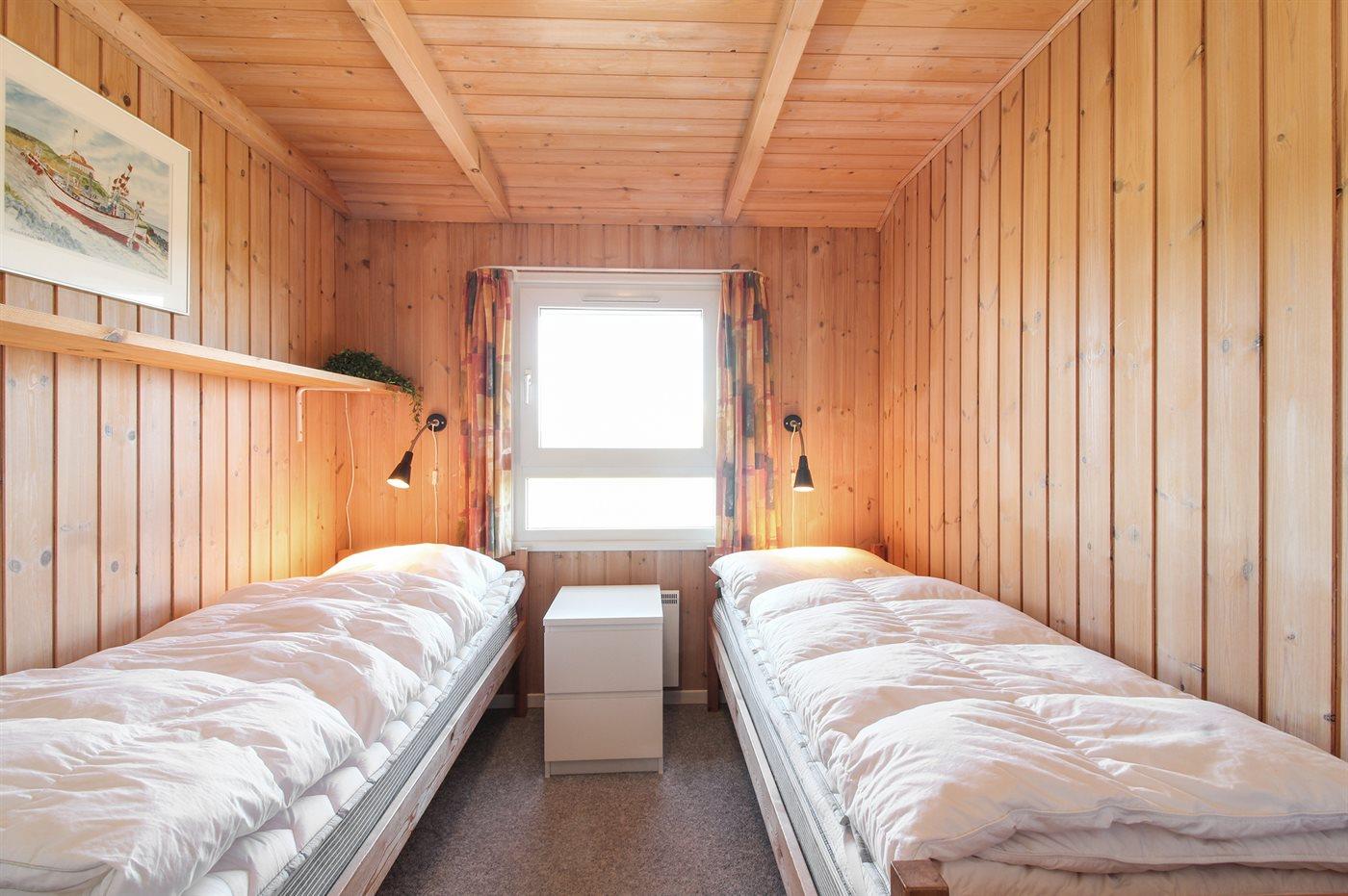 Der er i alt 3 soveværelser. Sovepladserne fordeler sig på: 4 sovepladser i dobbeltsenge. 2 sovepladser i enkeltsenge. Derudover er der 1 stk. barneseng.