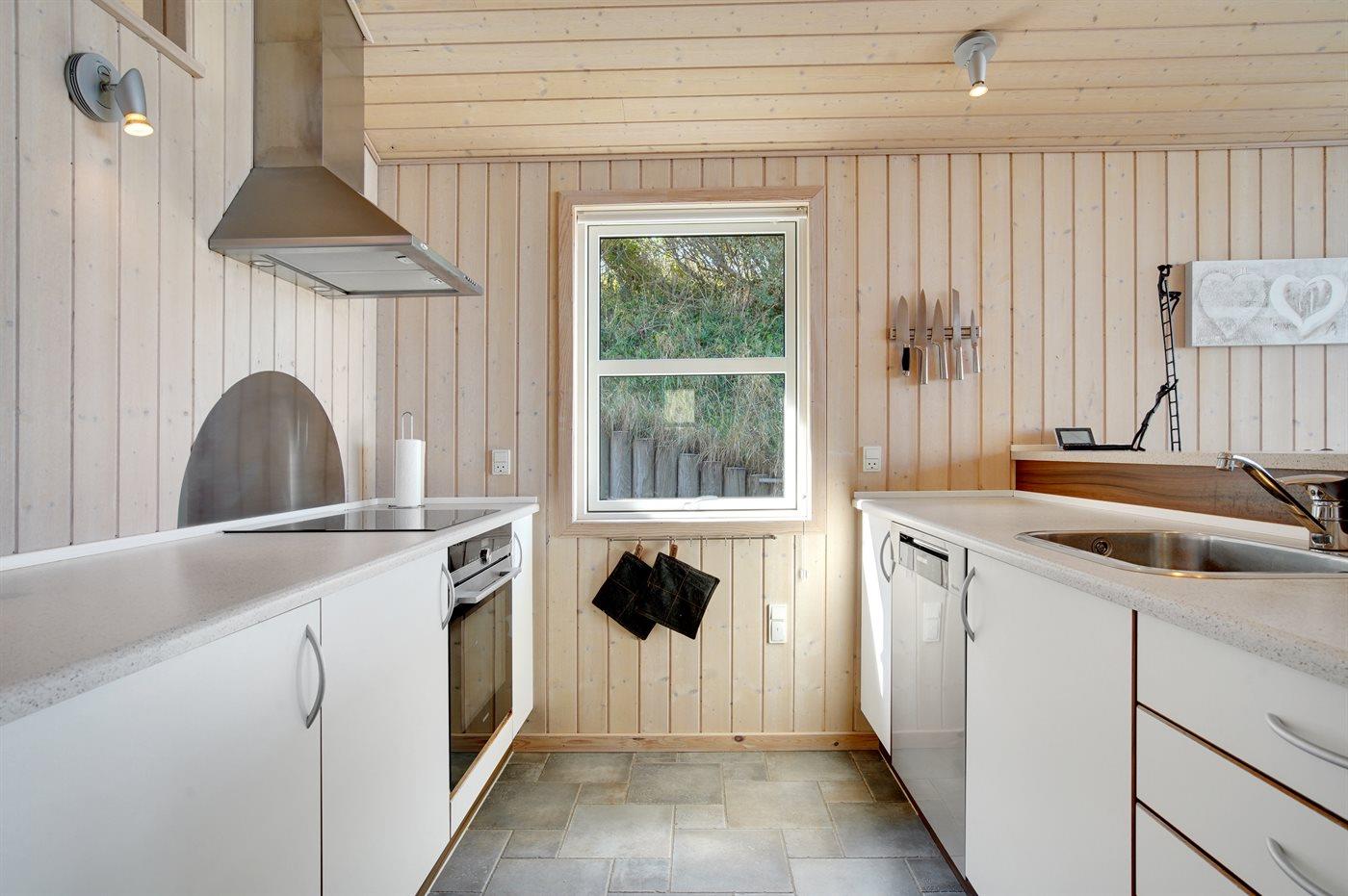 Husets veludstyrede køkken har alt, hvad I behøver til madlavning og bekvemmelighed. Her finder I et moderne køleskab, 4 keramiske kogeplader, en varmluftovn, mikrobølgeovn og en opvaskemaskine, der gør ferielivet endnu mere bekvemt.