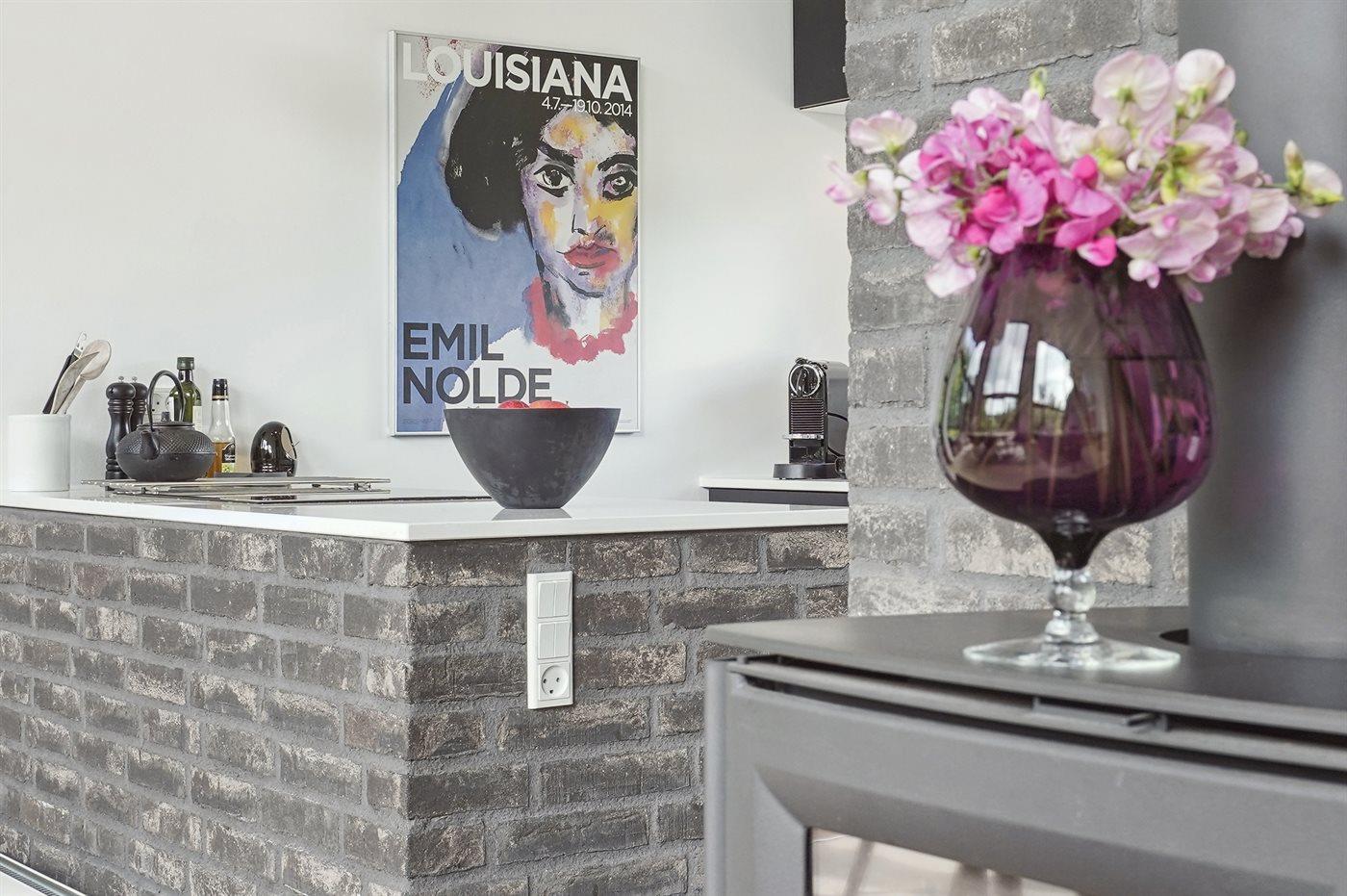Køkkenet er udstyret med 1 køleskab. Der er 4 induktionskogeplader, varmluftovn samt opvaskemaskine.