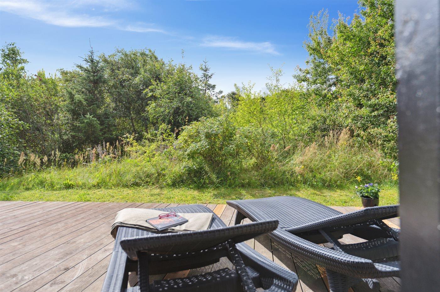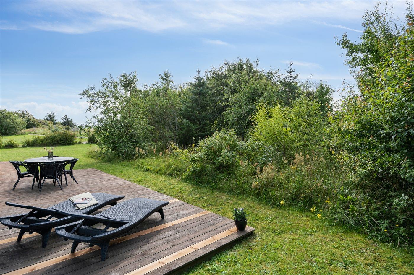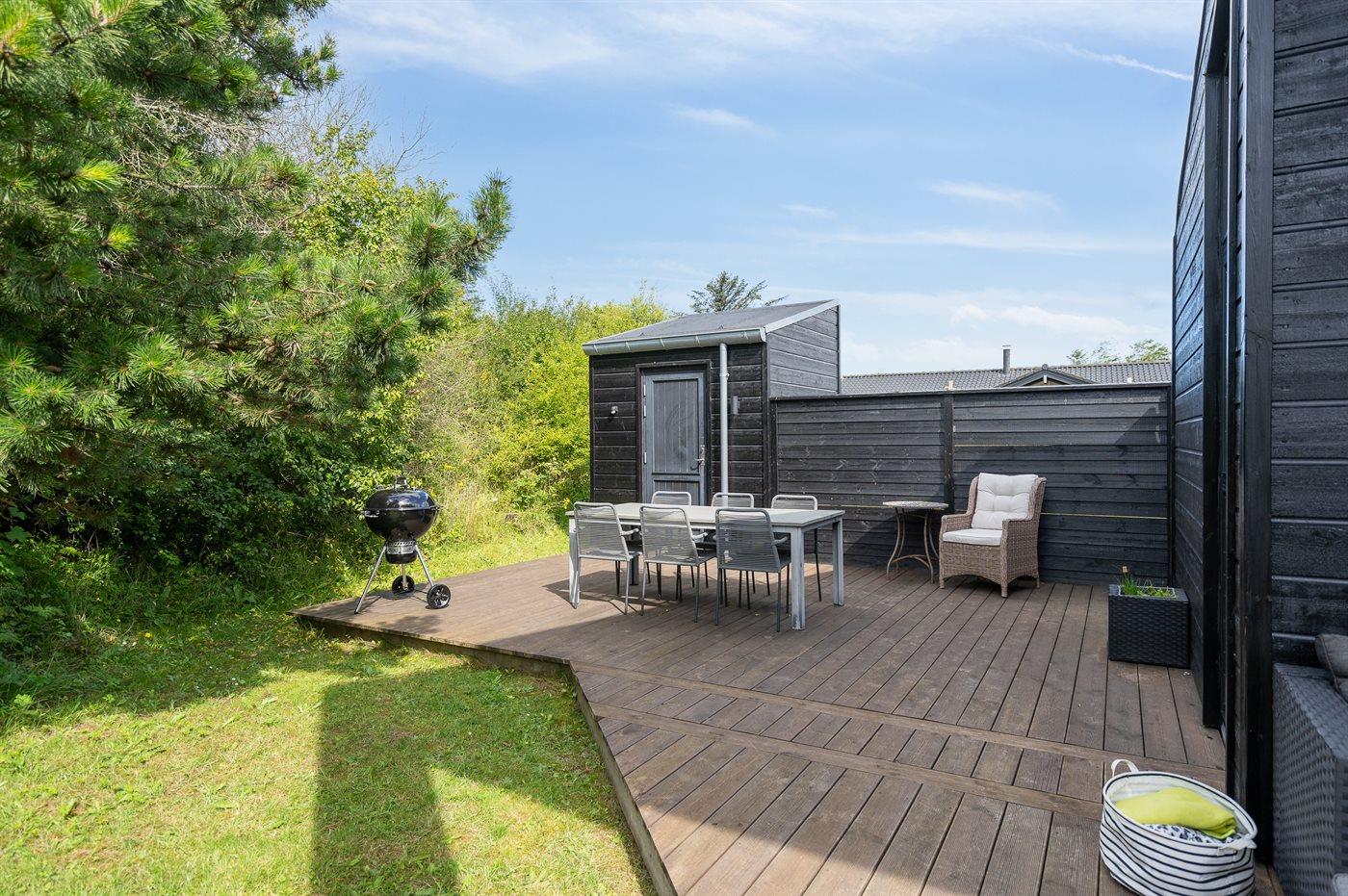 Ferieboligen er beliggende på en 1370 m² stor naturgrund. Der er 900 m til havet. Nærmeste forretning er beliggende i en afstand af 500 m. Til ferieboligen hører 50 m² terrasseareal. Desuden er der 10 m² overdækket terrasse. Parkering ved ferieboligen.