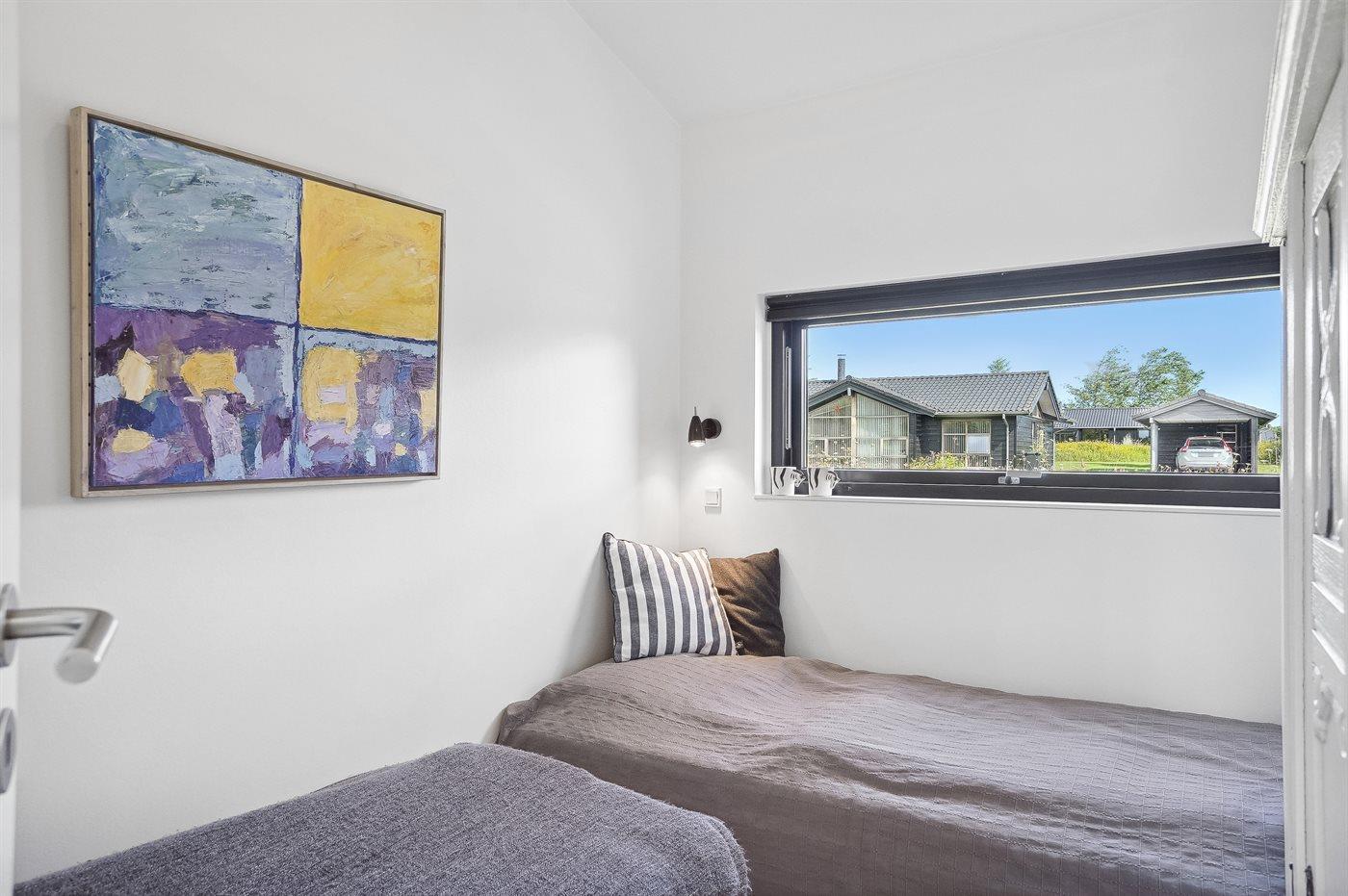 Der er i alt 3 soveværelser. Sovepladserne fordeler sig på: 4 sovepladser i dobbeltsenge. 2 sovepladser i enkeltsenge. 2 sovepladser på madrasser. Derudover er der 1 stk. barneseng.