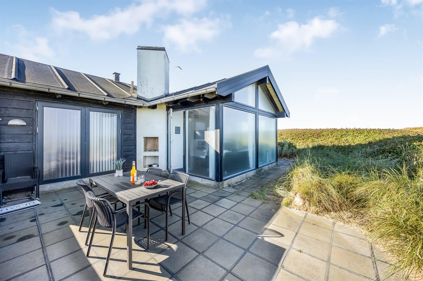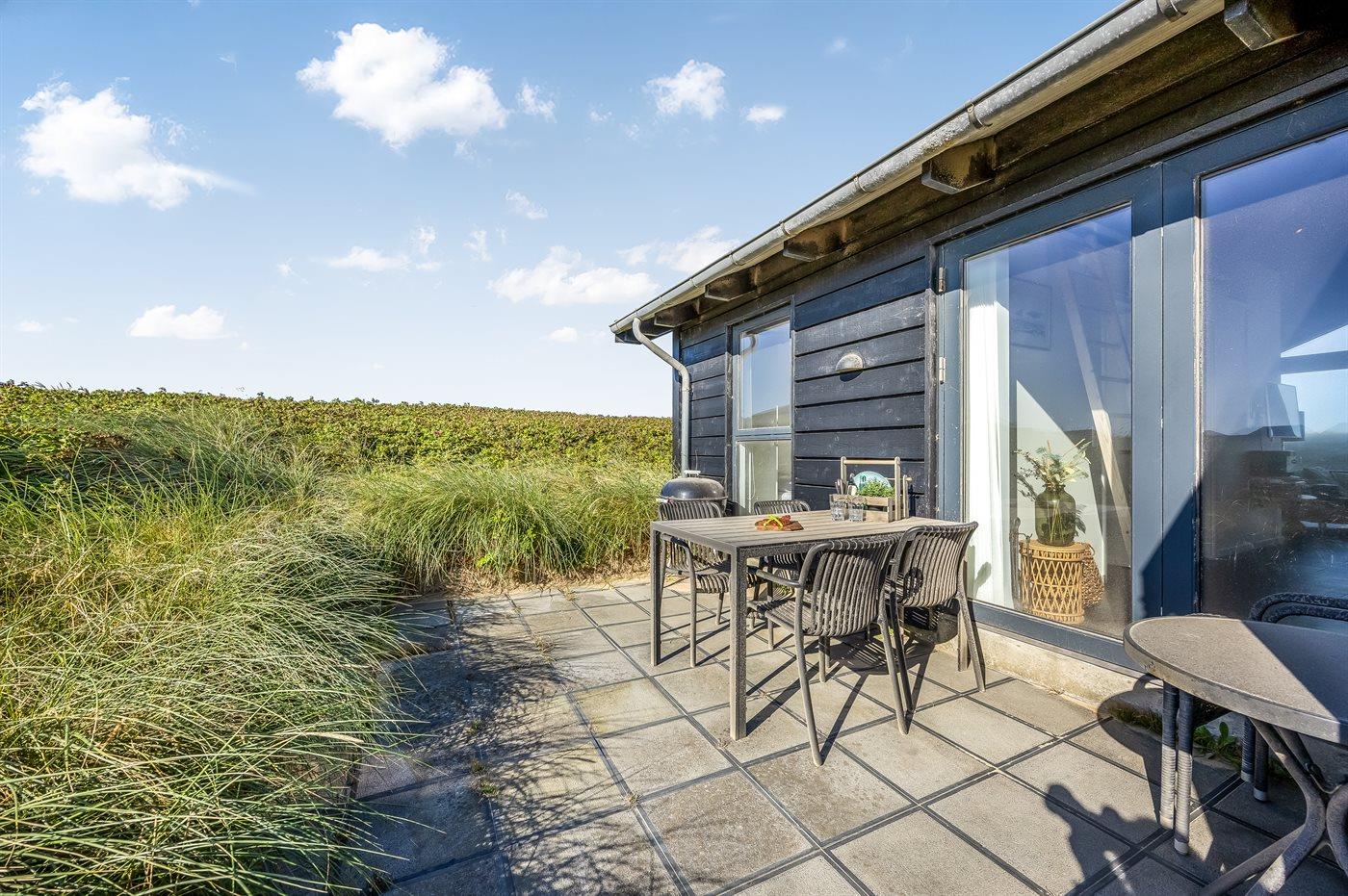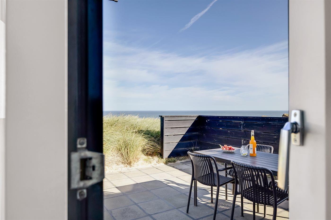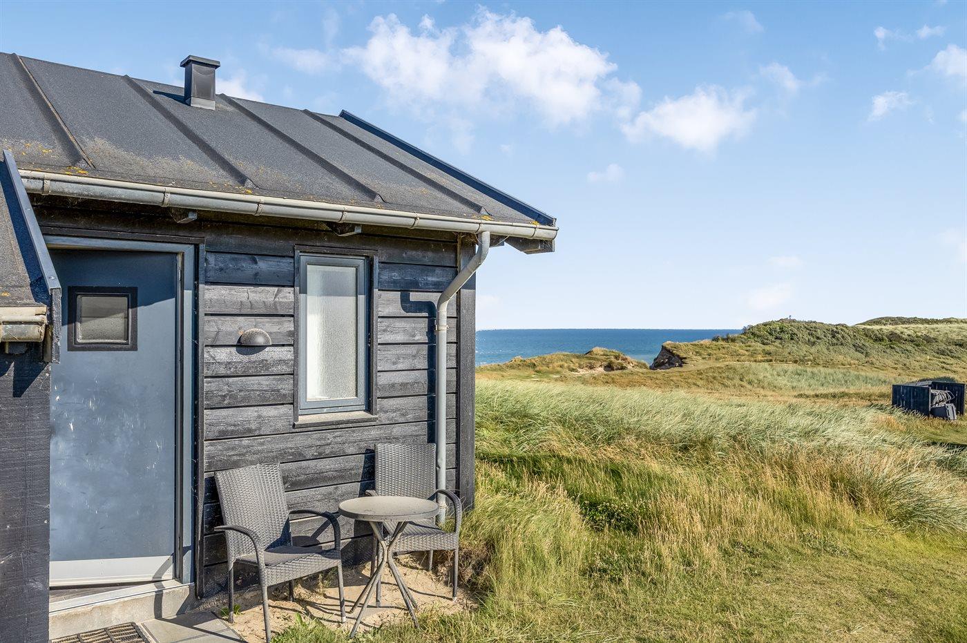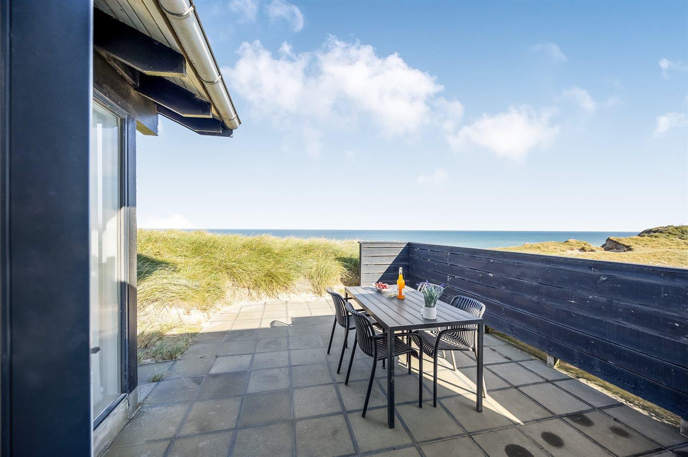 Flot arkitekttegnet sommerhus beliggende på toppen af Klitbakken med panoramaudsigt over havet. Huset ligger lige ved vandet i første række til den stejle kyststrækning ned mod stranden og i gåafstand til Lønstrup by.
