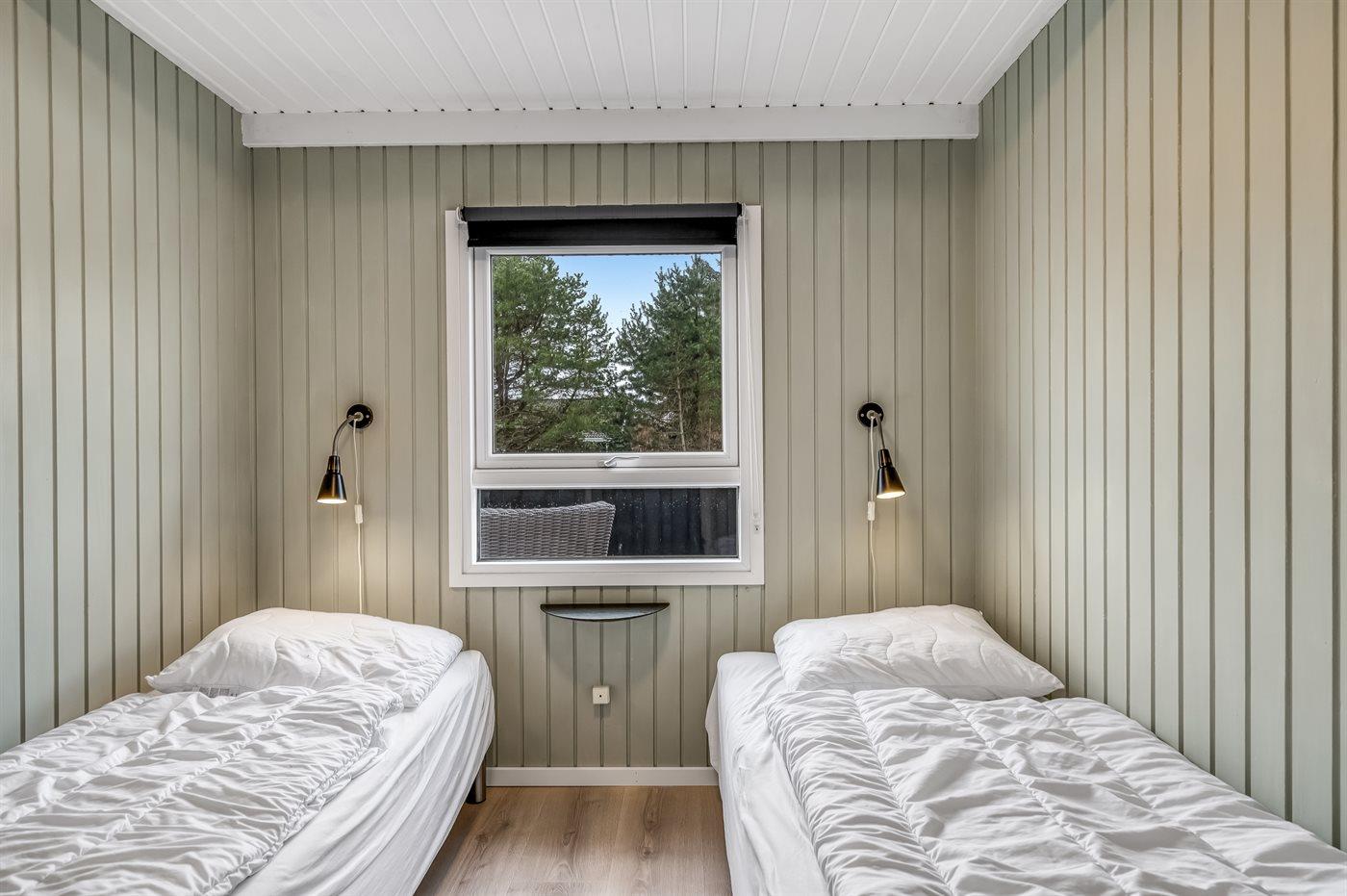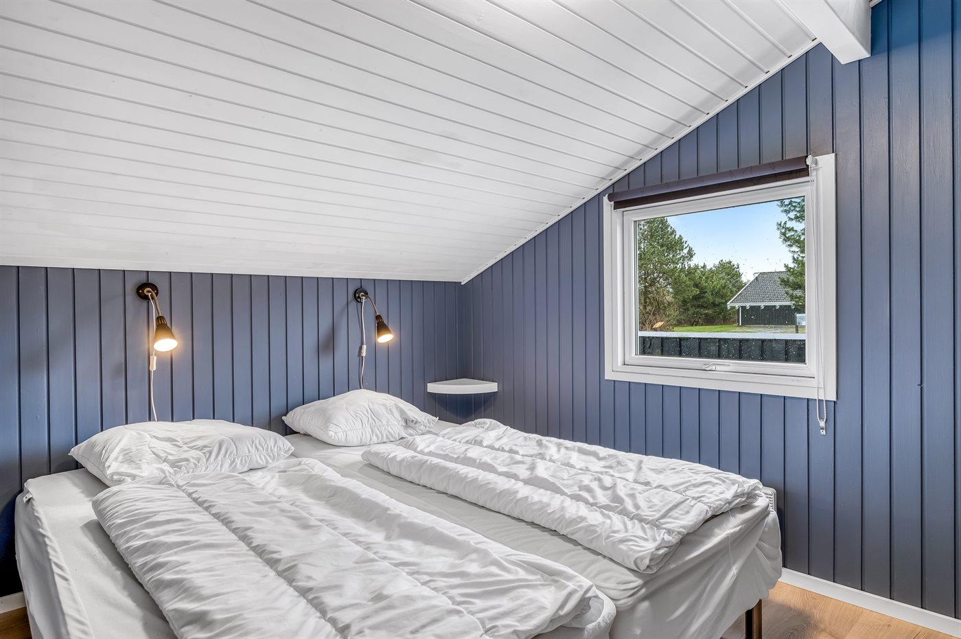 Der er i alt 3 soveværelser. Sovepladserne fordeler sig på: 4 sovepladser i dobbeltsenge. 4 sovepladser i enkeltsenge. 2 af disse sovepladser befinder sig på husets hems. Derudover er der 1 stk. barneseng.