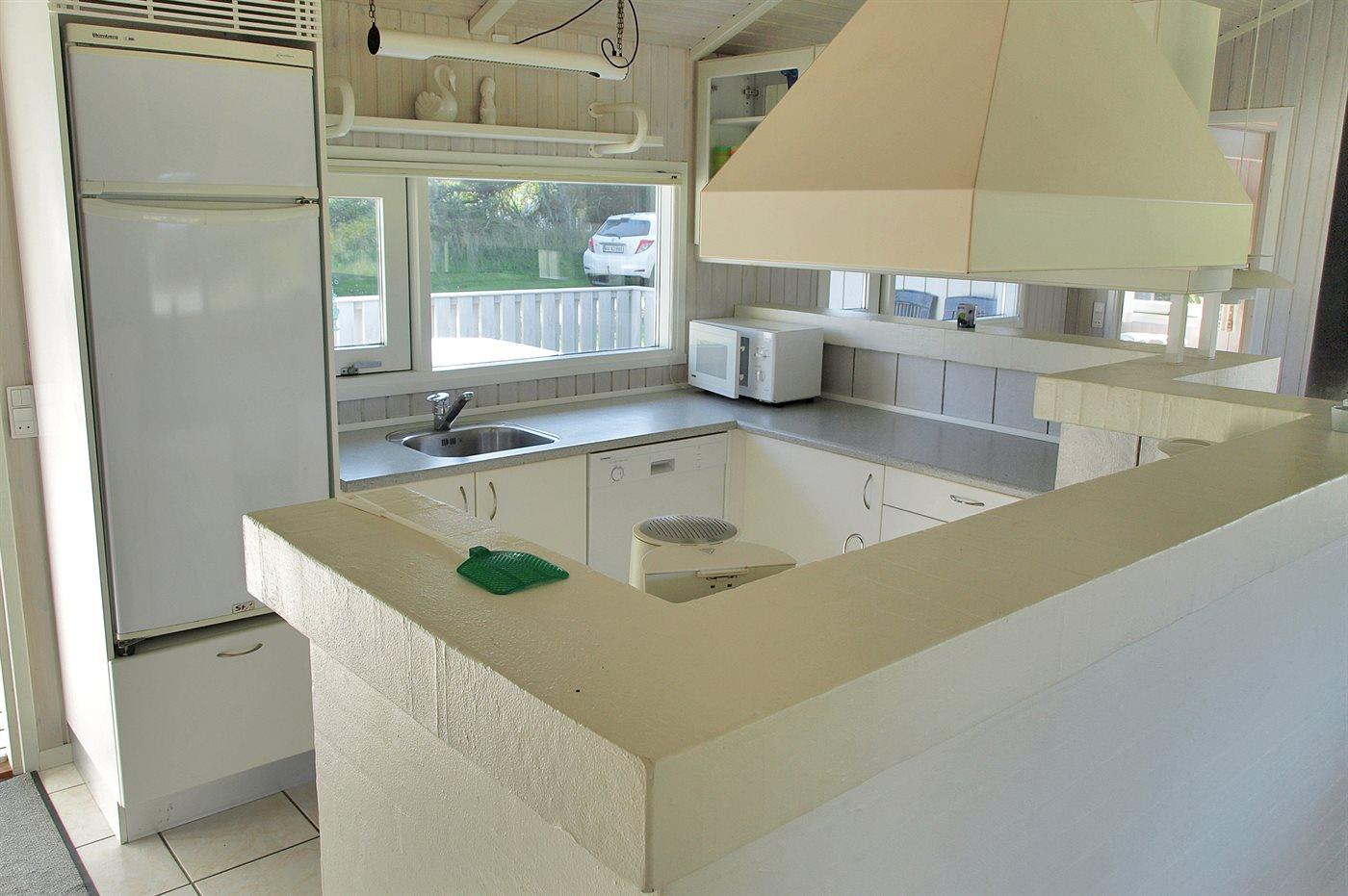 Køkkenet er udstyret med 1 køleskab. Der er 4 keramiske kogeplader, varmluftovn, mikrobølgeovn samt opvaskemaskine.