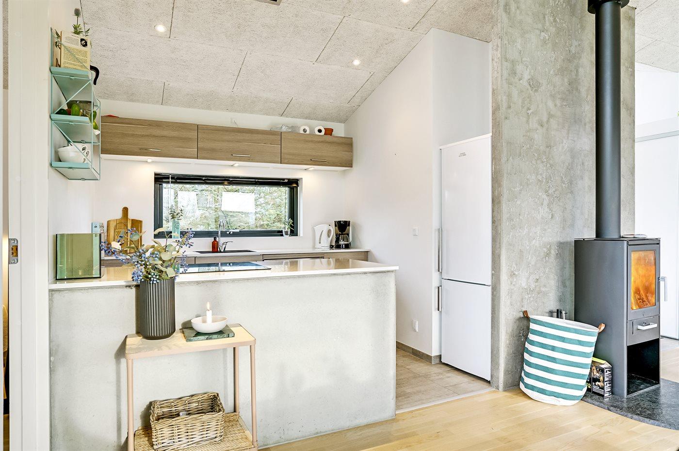 Køkkenet er udstyret med 1 køleskab. Der er 4 induktionskogeplader, varmluftovn samt opvaskemaskine.