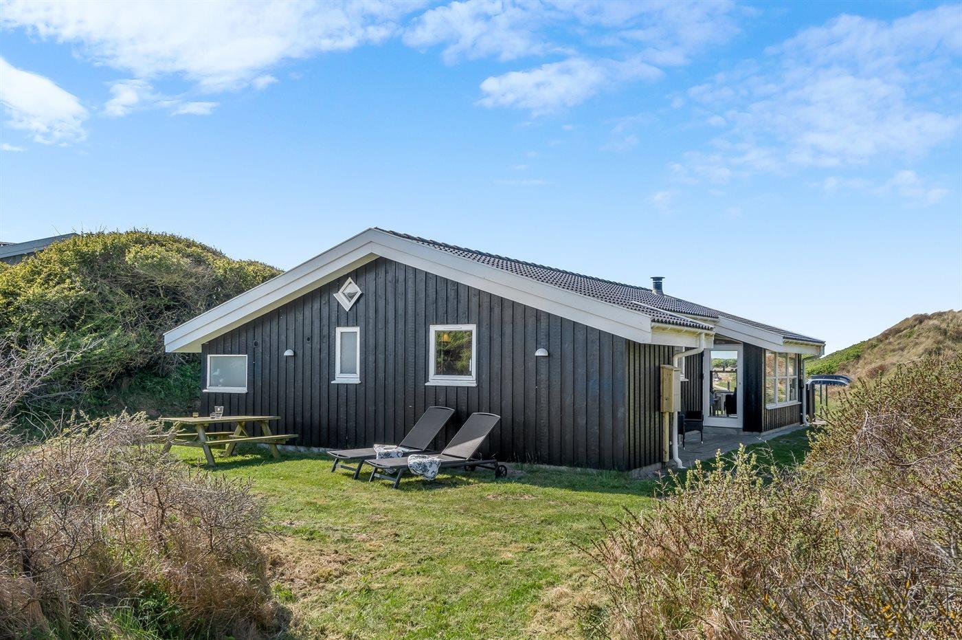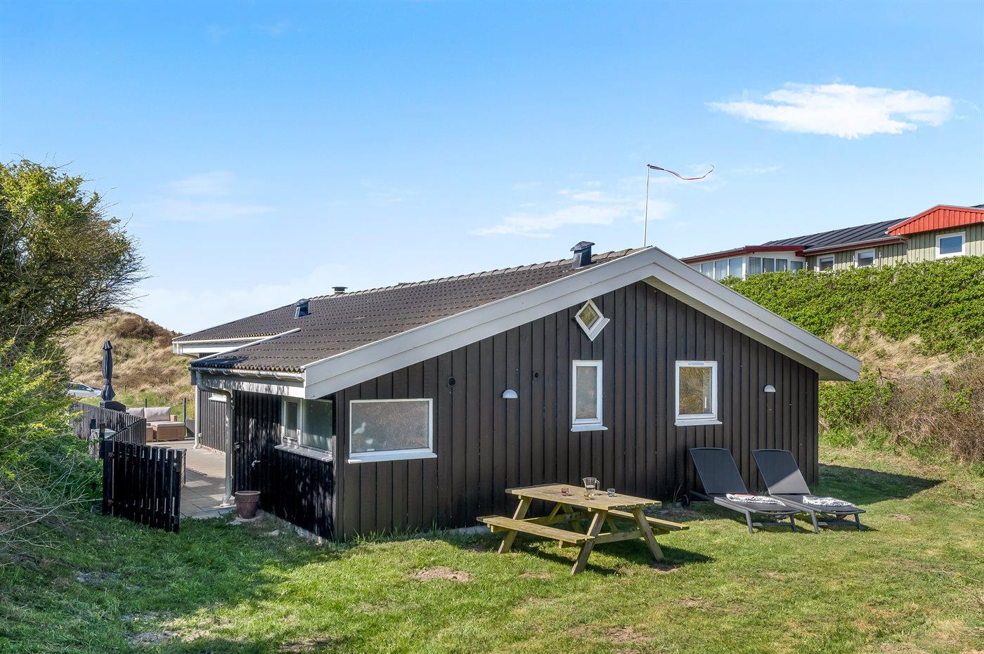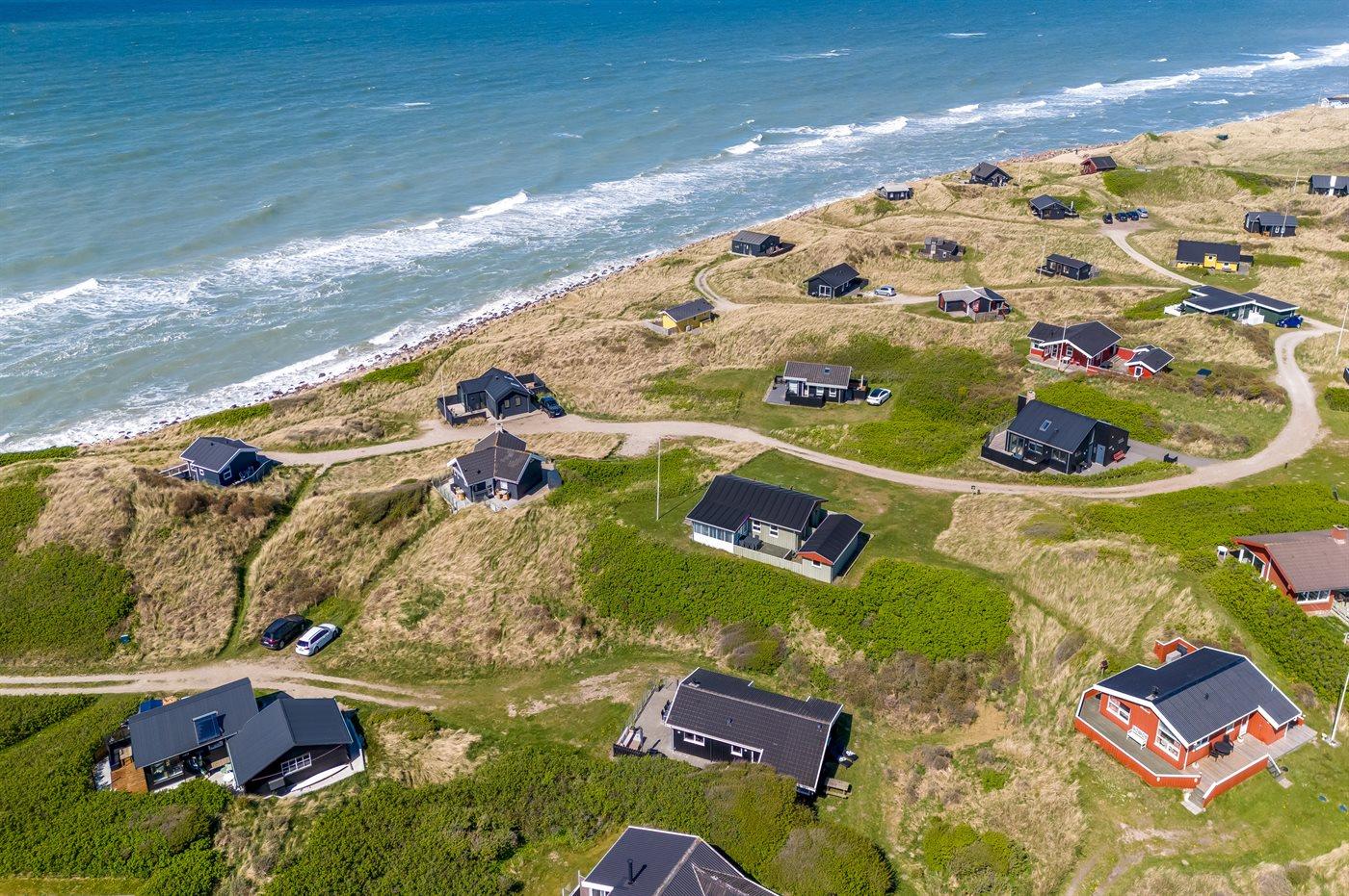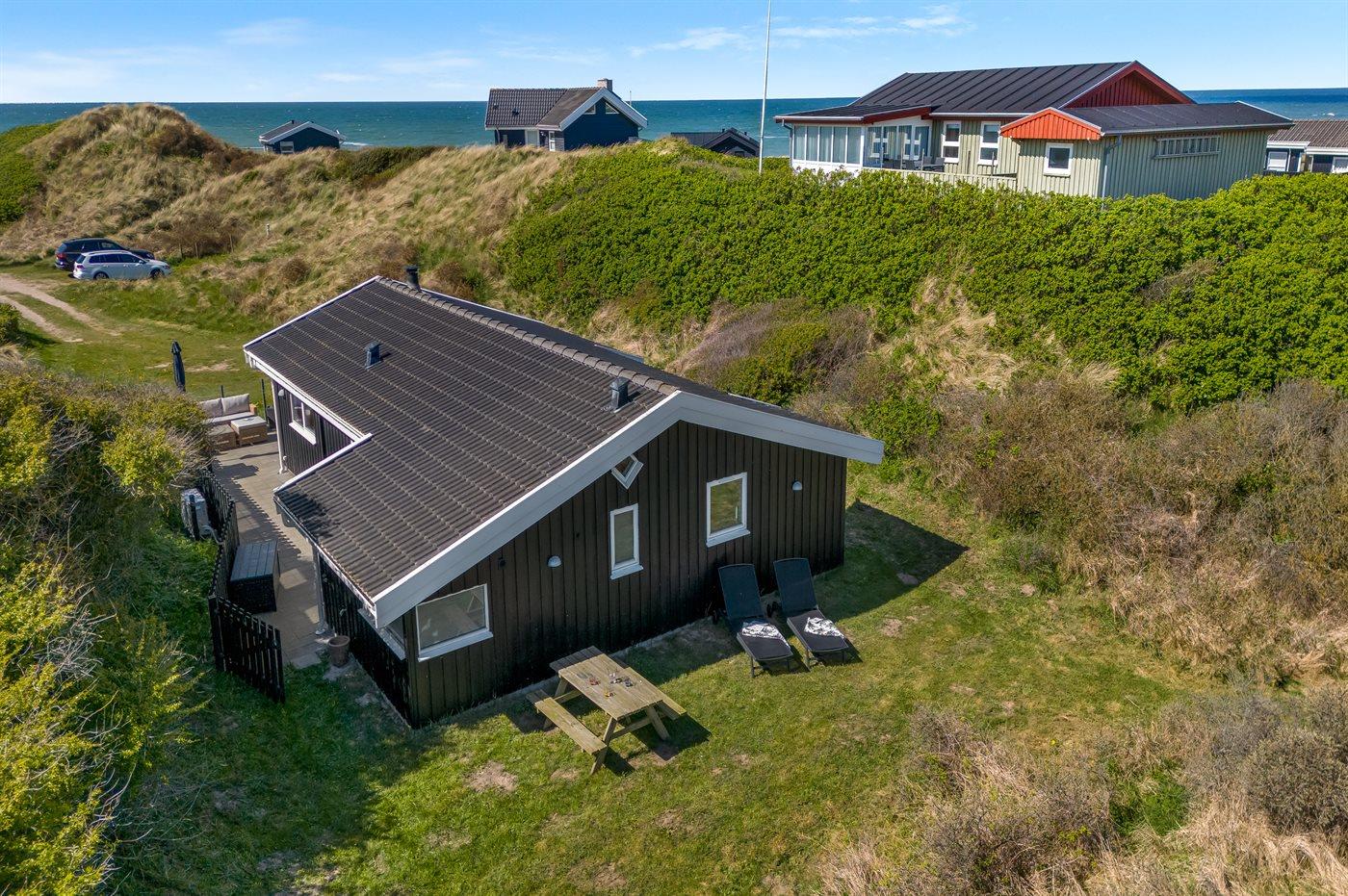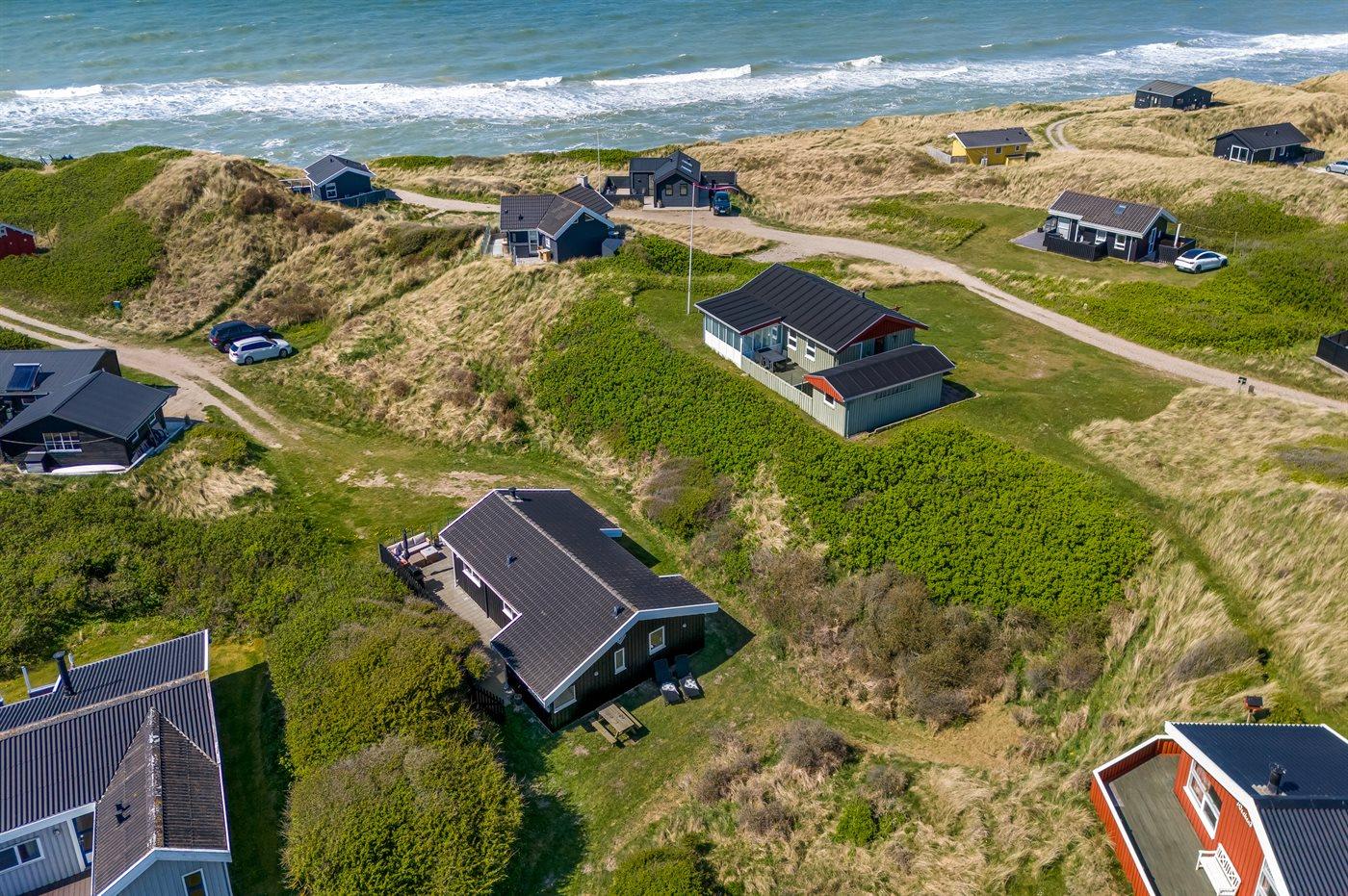 Dejligt og velindrettet sommerhus beliggende lige ved vandet på en kuperet klitgrund med tilhørende skønne terrassearealer, hvorfra man kan høre bølgernes brusen.