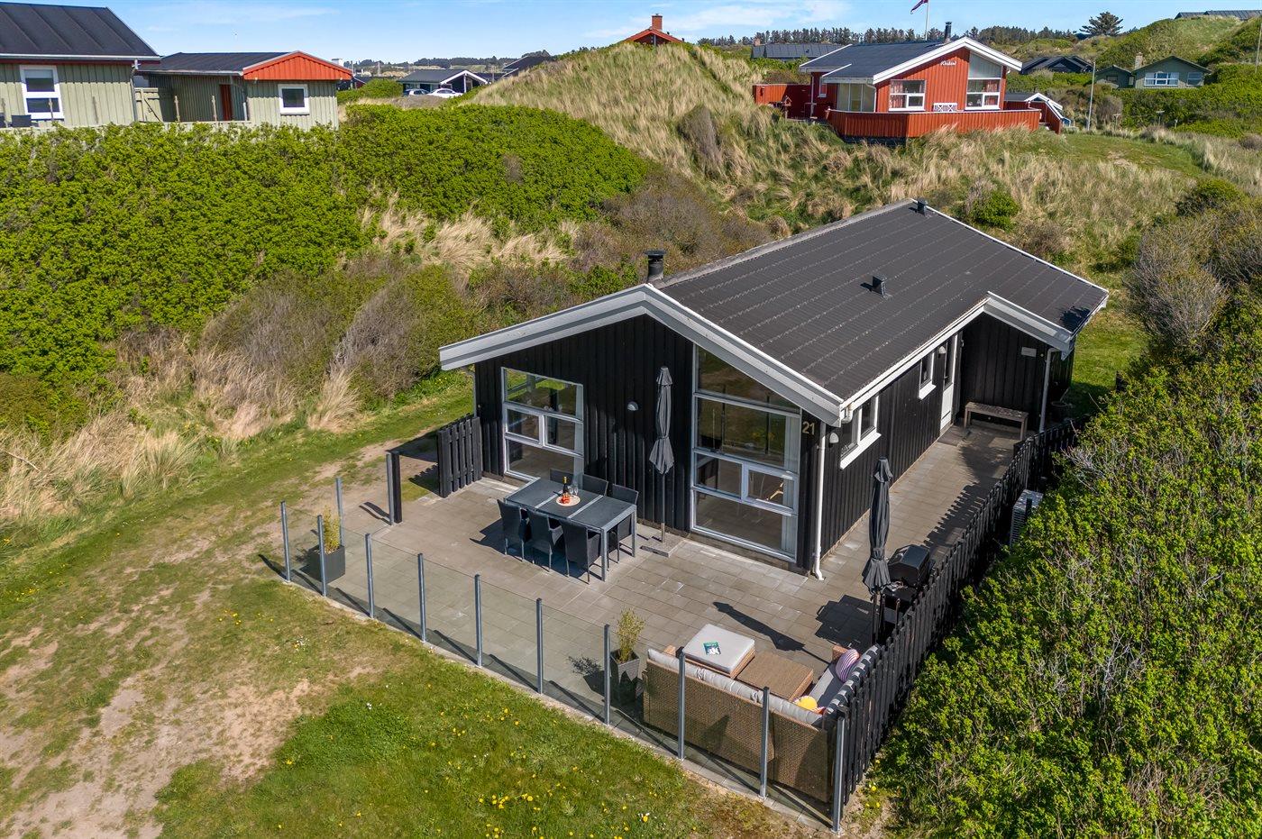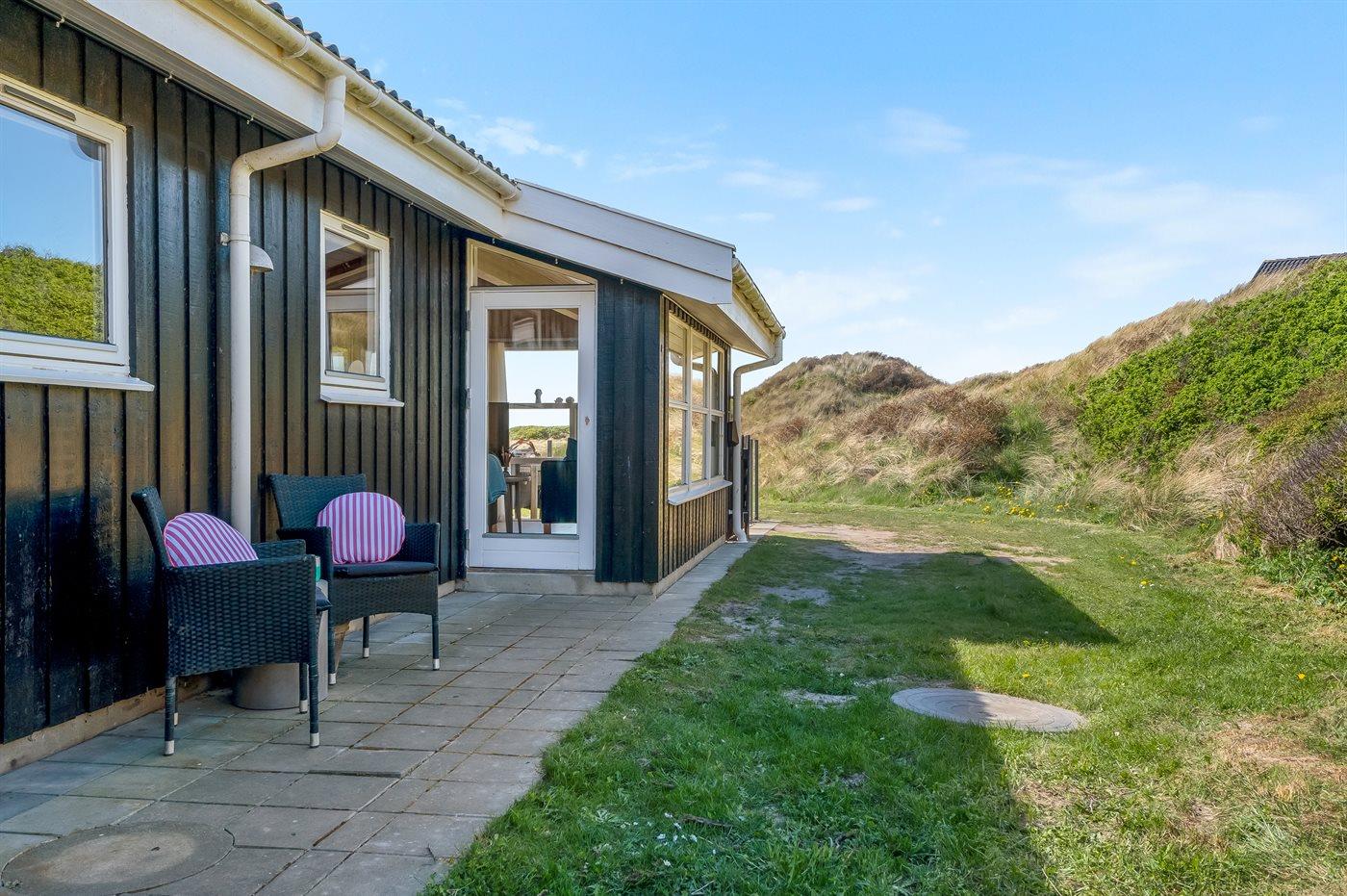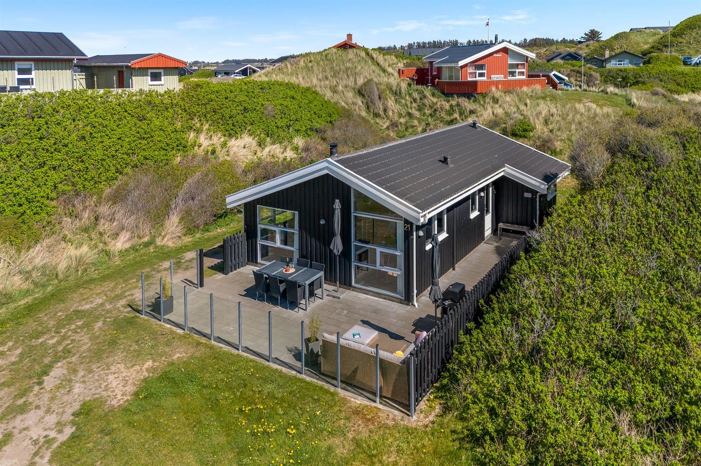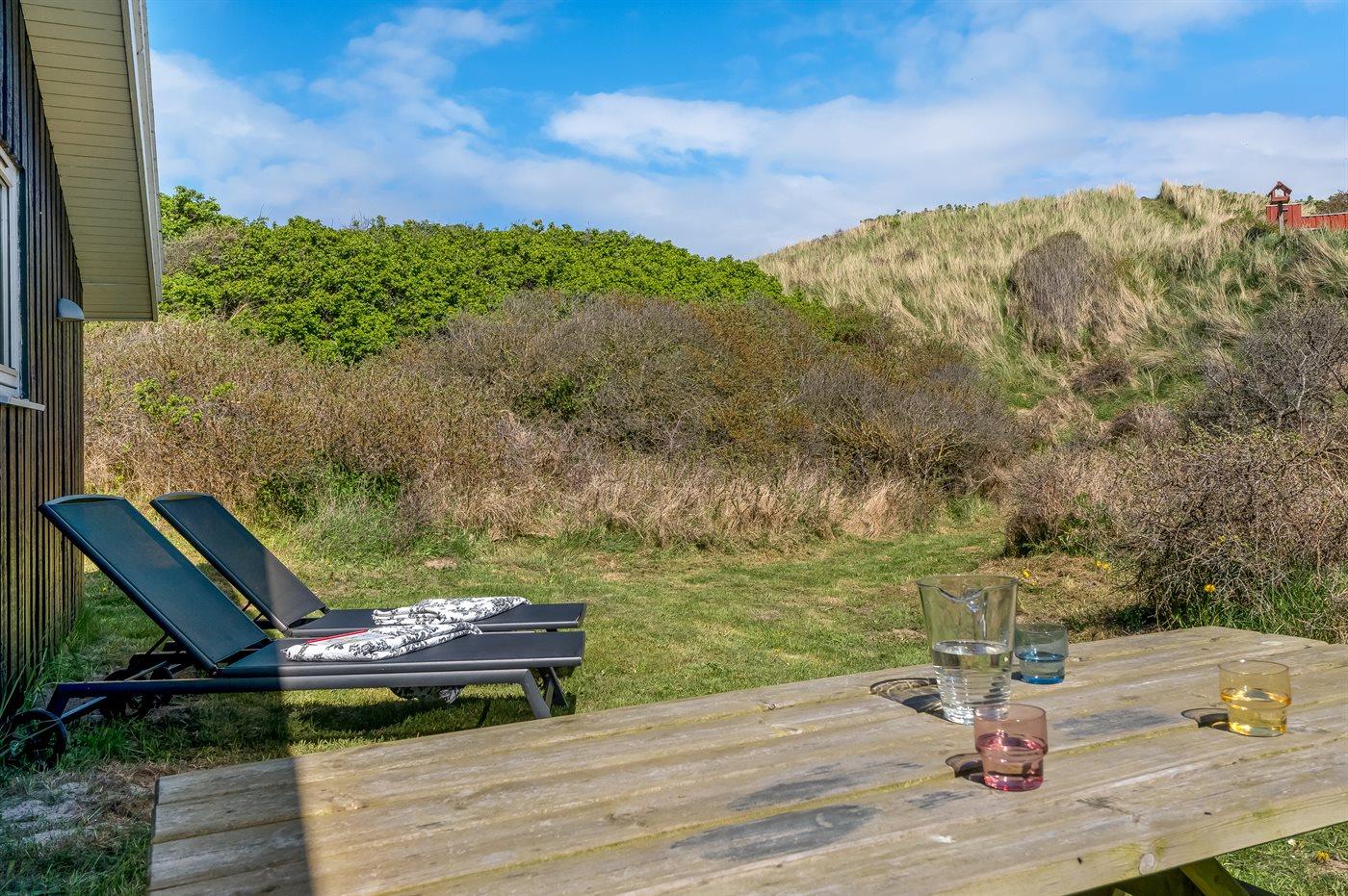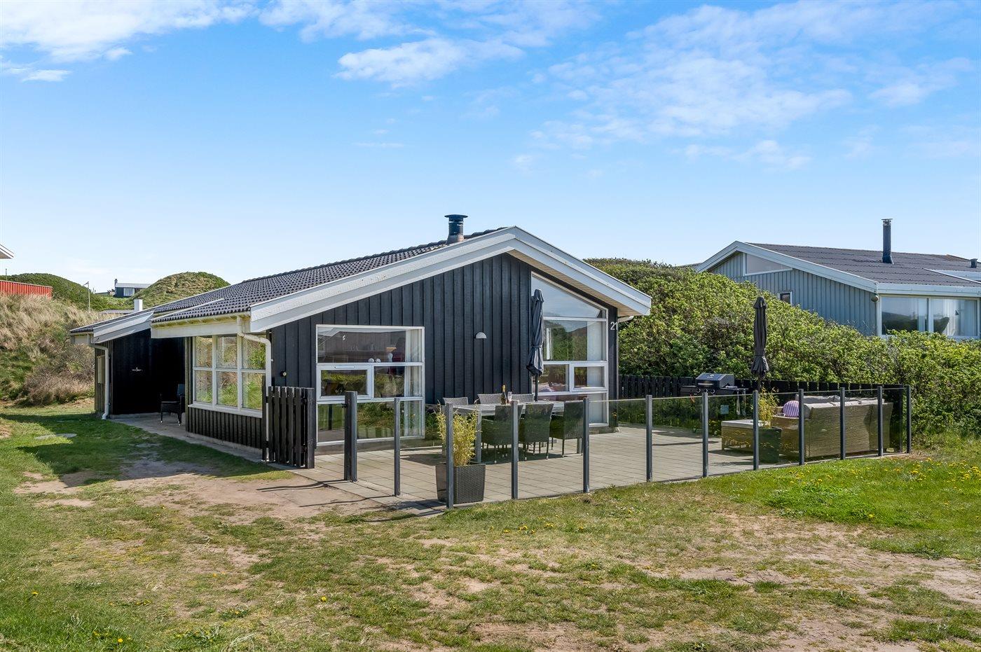 Dejligt og velindrettet sommerhus beliggende lige ved vandet på en kuperet klitgrund med tilhørende skønne terrassearealer, hvorfra man kan høre bølgernes brusen.
