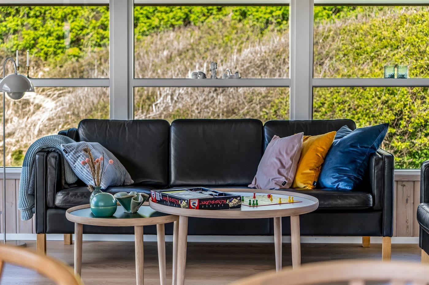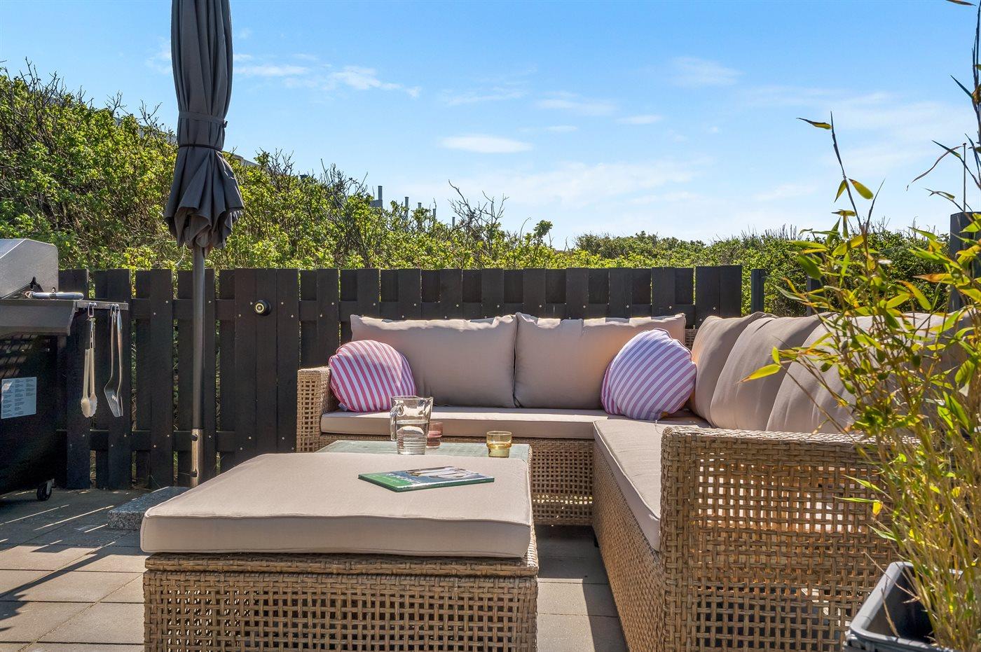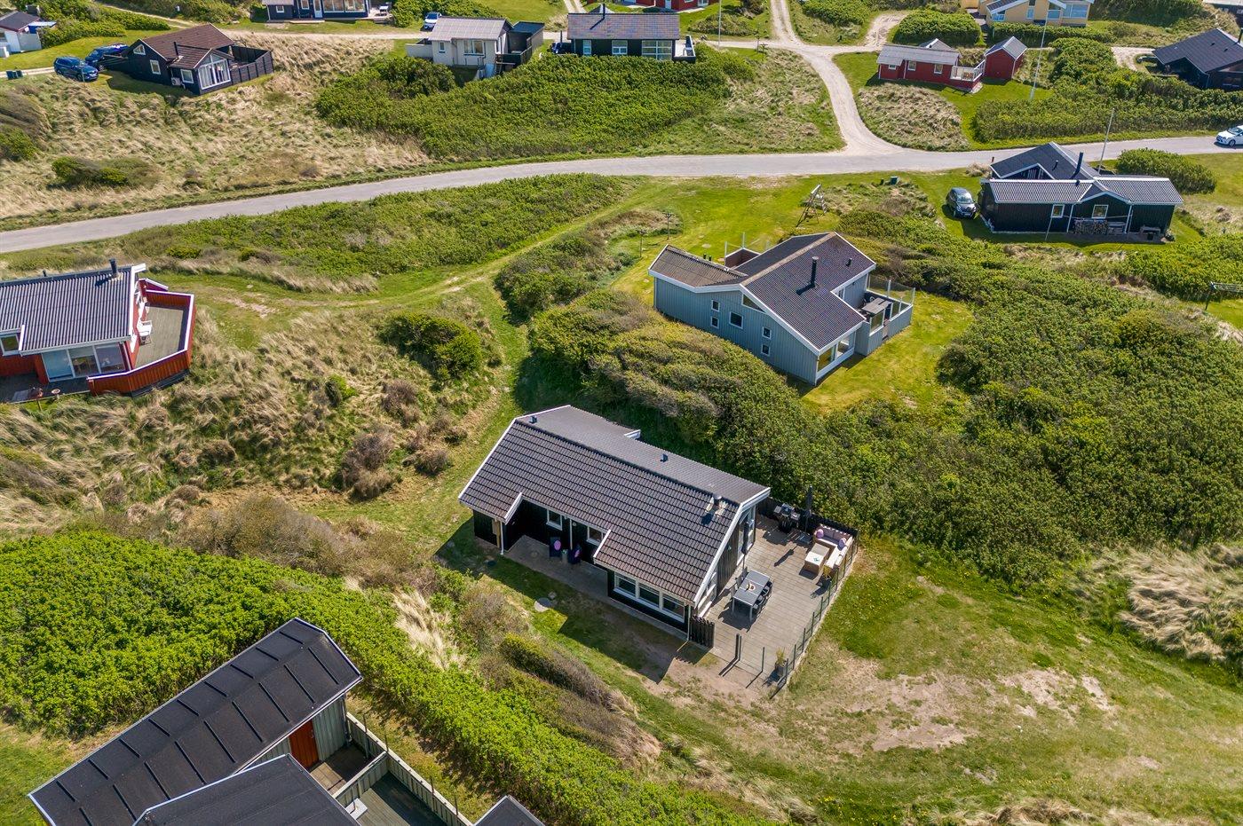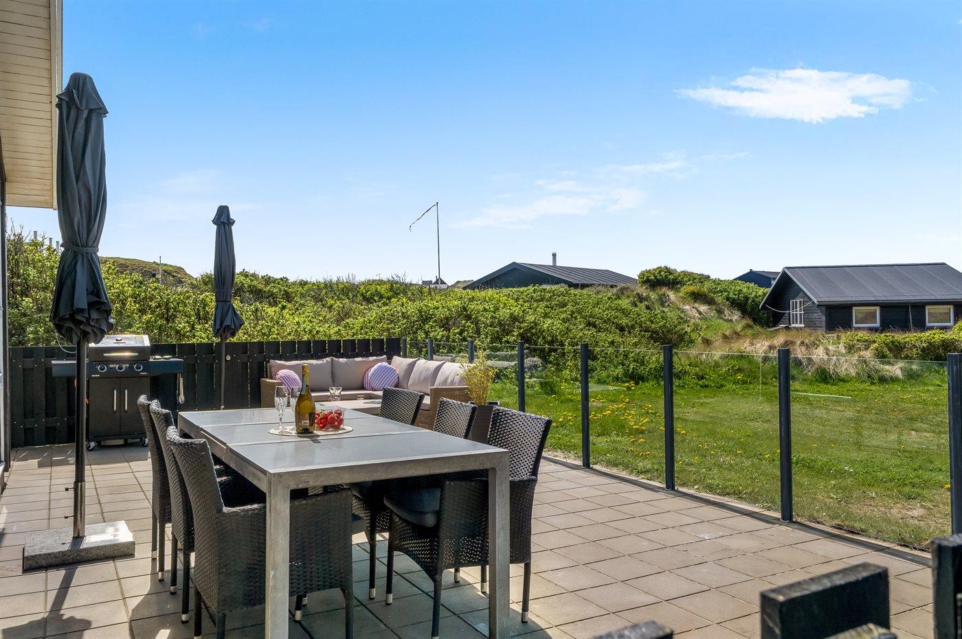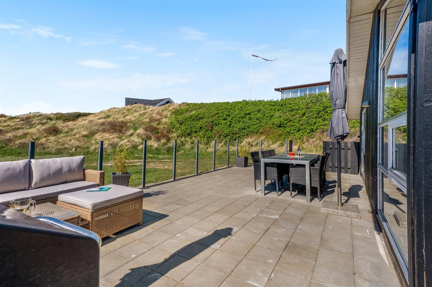 Dejligt og velindrettet sommerhus beliggende lige ved vandet på en kuperet klitgrund med tilhørende skønne terrassearealer, hvorfra man kan høre bølgernes brusen.