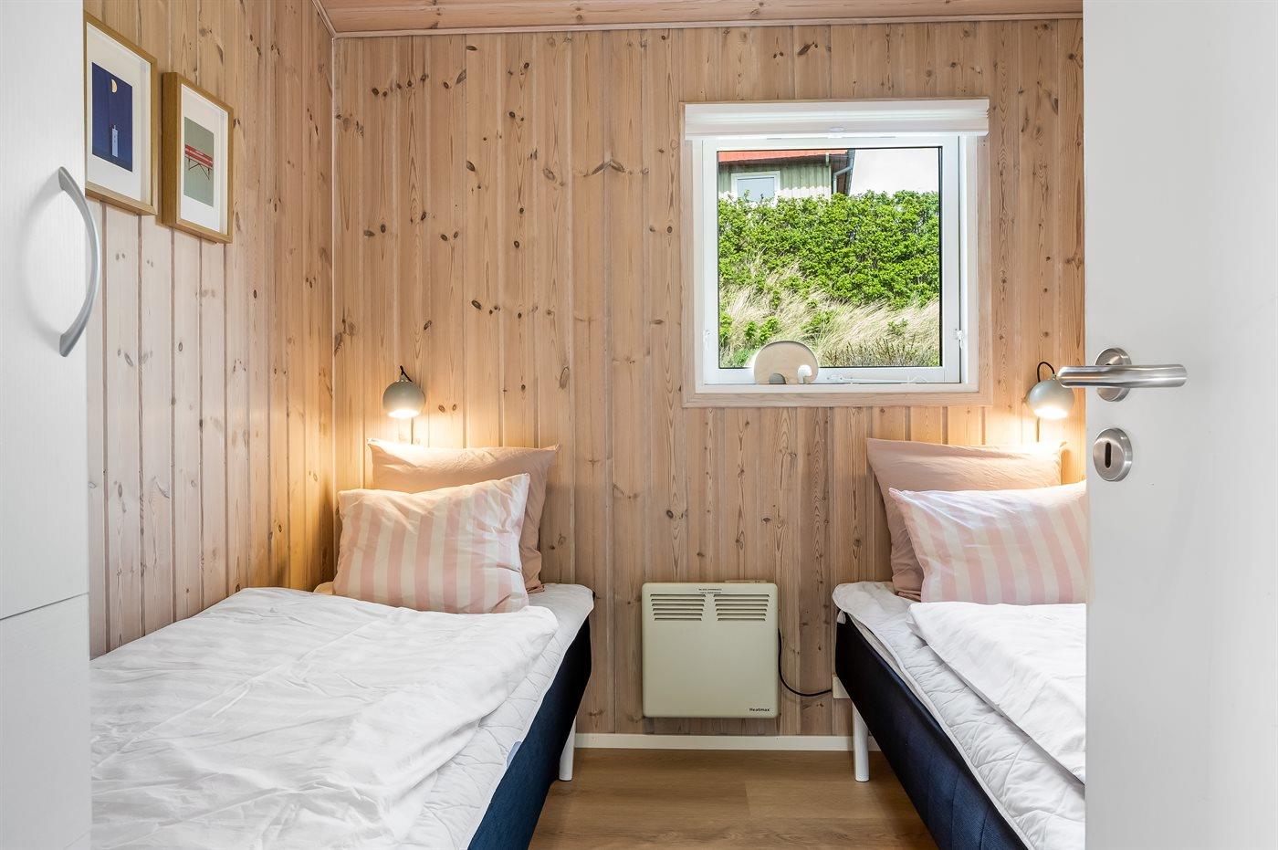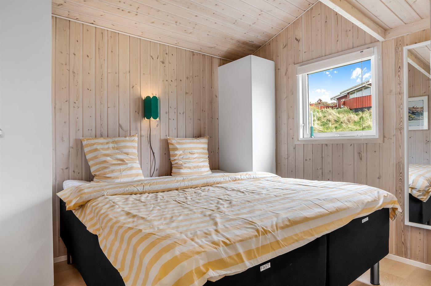 Der er i alt 3 soveværelser. Sovepladserne fordeler sig på: 4 sovepladser i dobbeltsenge. 2 sovepladser i enkeltsenge. Derudover er der 1 stk. barneseng.