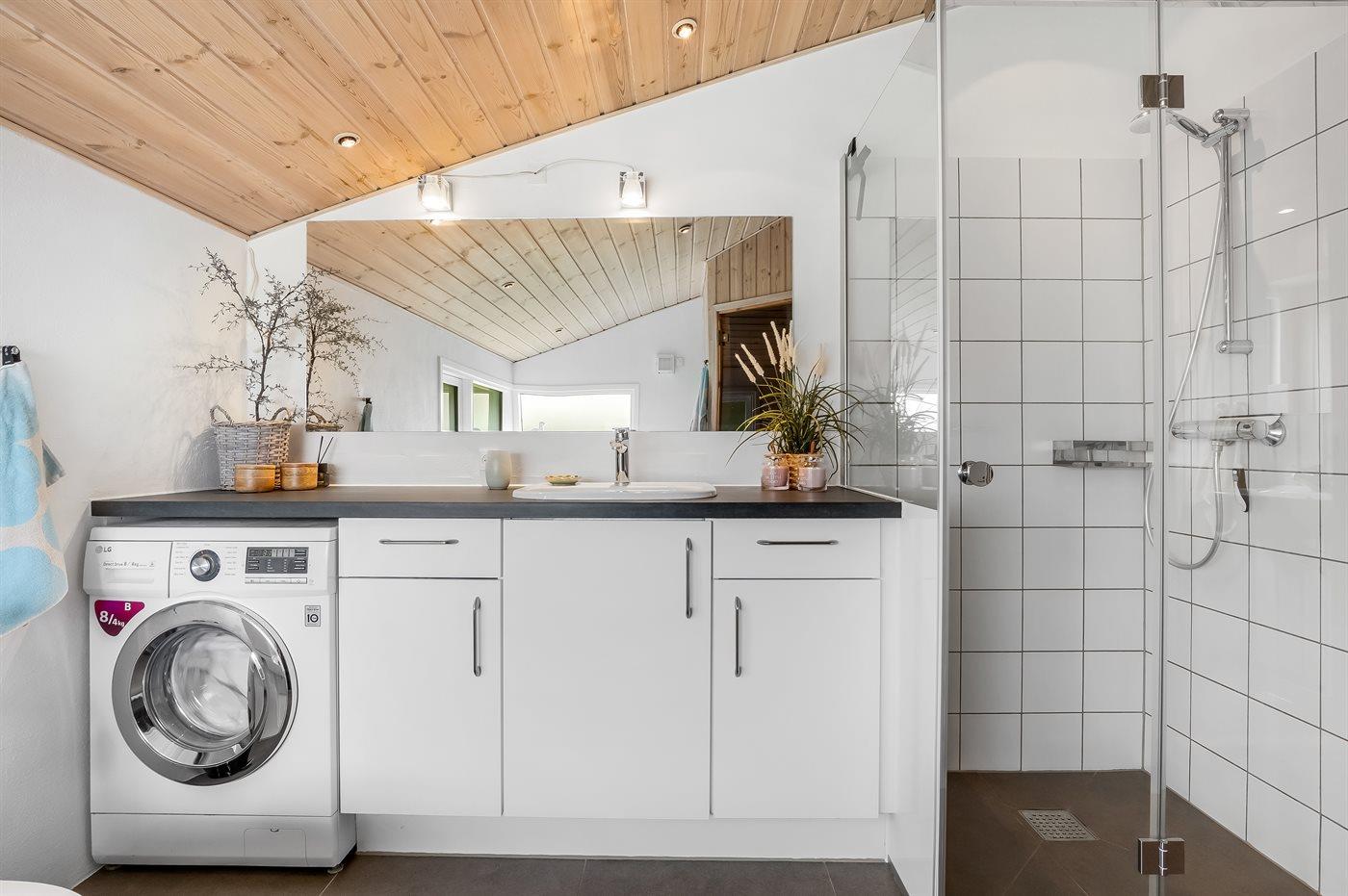 Der er 1 badeværelse med bruseniche og 2 toiletter, heraf 1 gæstetoilet. Der er gulvvarme på 1 badeværelse. I saunaen er der mulighed for afslapning.