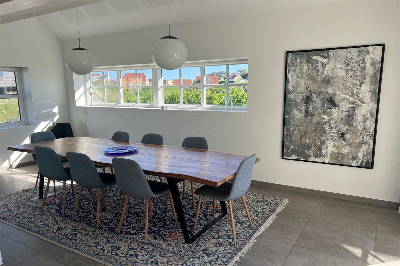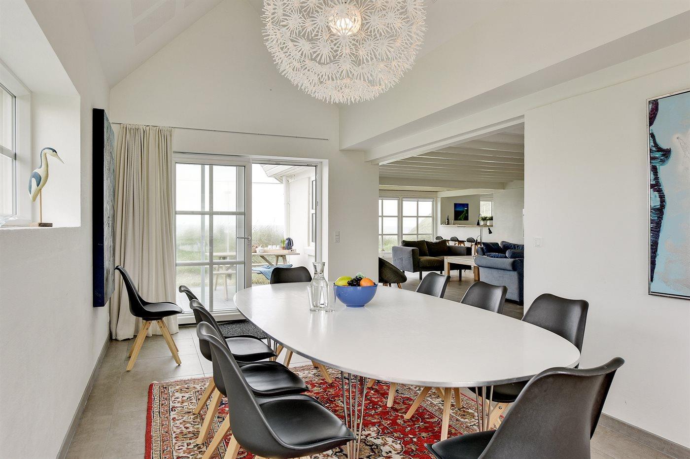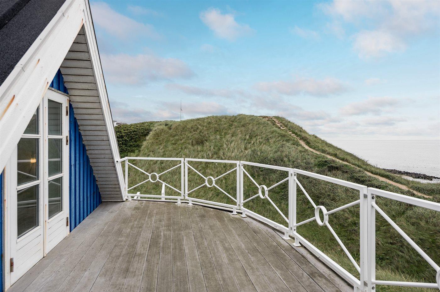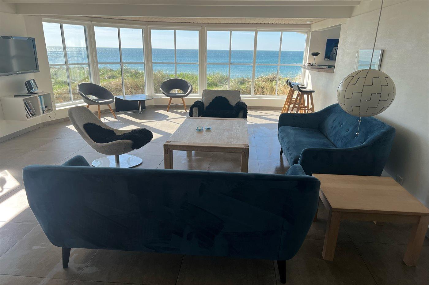 Skønt og rummeligt sommerhus med en fantastisk beliggenhed i første klitrække og med en pragtfuld havudsigt fra næsten alle rum. Huset ligger på en privat blind vej, på en meget stor og kuperet grund direkte ud til stranden og lige bag det gamle centrum af Lønstrup by. Fra de 3 terrasser er der udsigt til byen, de fredede arealer ved Bækslugten samt til stranden og Vesterhavet. Huset er indrettet lyst og venligt med gulvvarme i hele stueetagen.