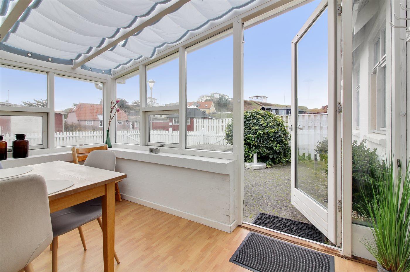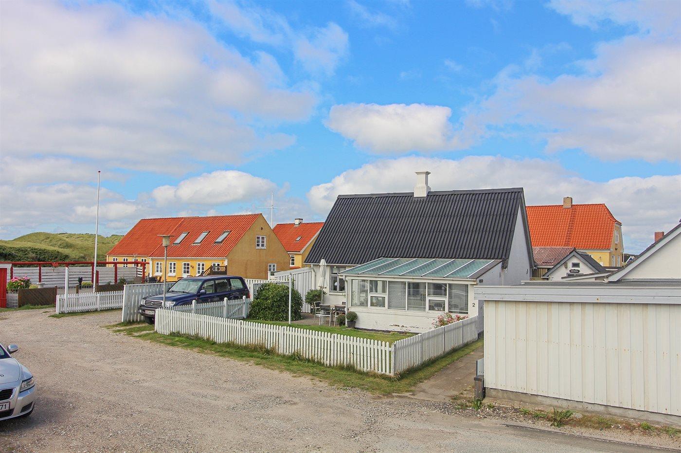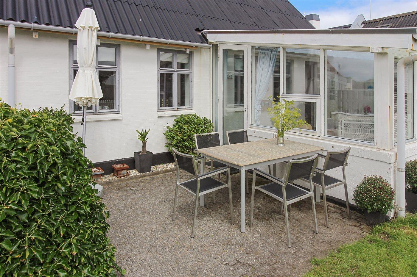 Ferieboligen er beliggende på en 300 m² stor havegrund. Grunden er indhegnet. Der er 200 m til havet. Nærmeste forretning er beliggende i en afstand af 300 m. Til ferieboligen hører 12 m² terrasseareal. Ligeledes er der adgang til udestue. Grill til rådighed. Parkering ved ferieboligen.