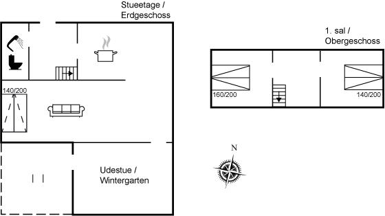 Der er i alt 2 soveværelser. Sovepladserne fordeler sig på: 4 sovepladser i dobbeltsenge. 2 sovepladser i sovesofa (dobbelt). Derudover er der 1 stk. barneseng.