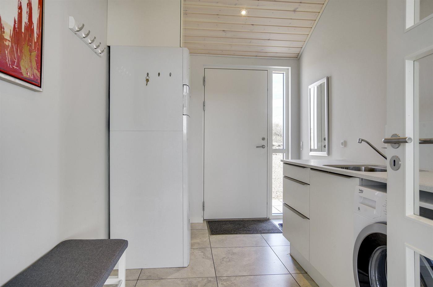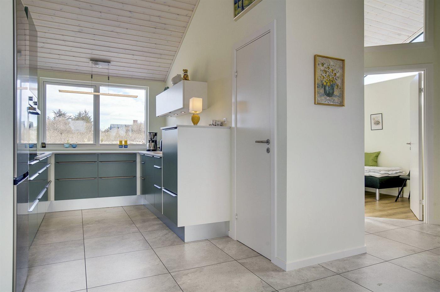 Køkkenet er udstyret med 1 køleskab. Der er 4 induktionskogeplader, varmluftovn, mikrobølgeovn samt opvaskemaskine.