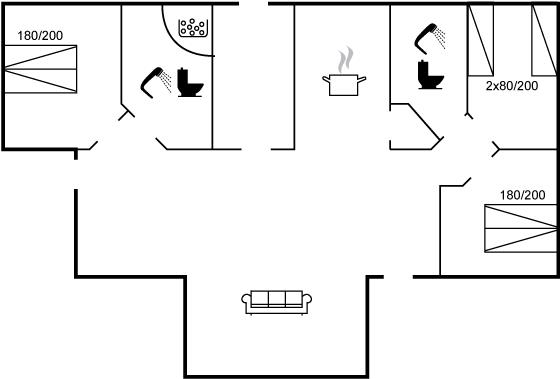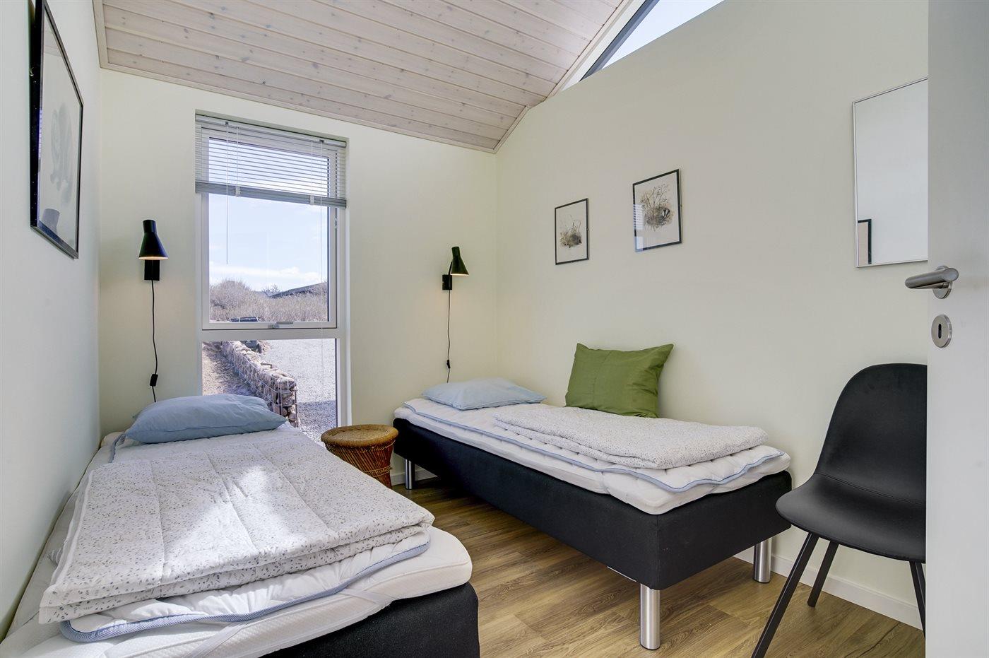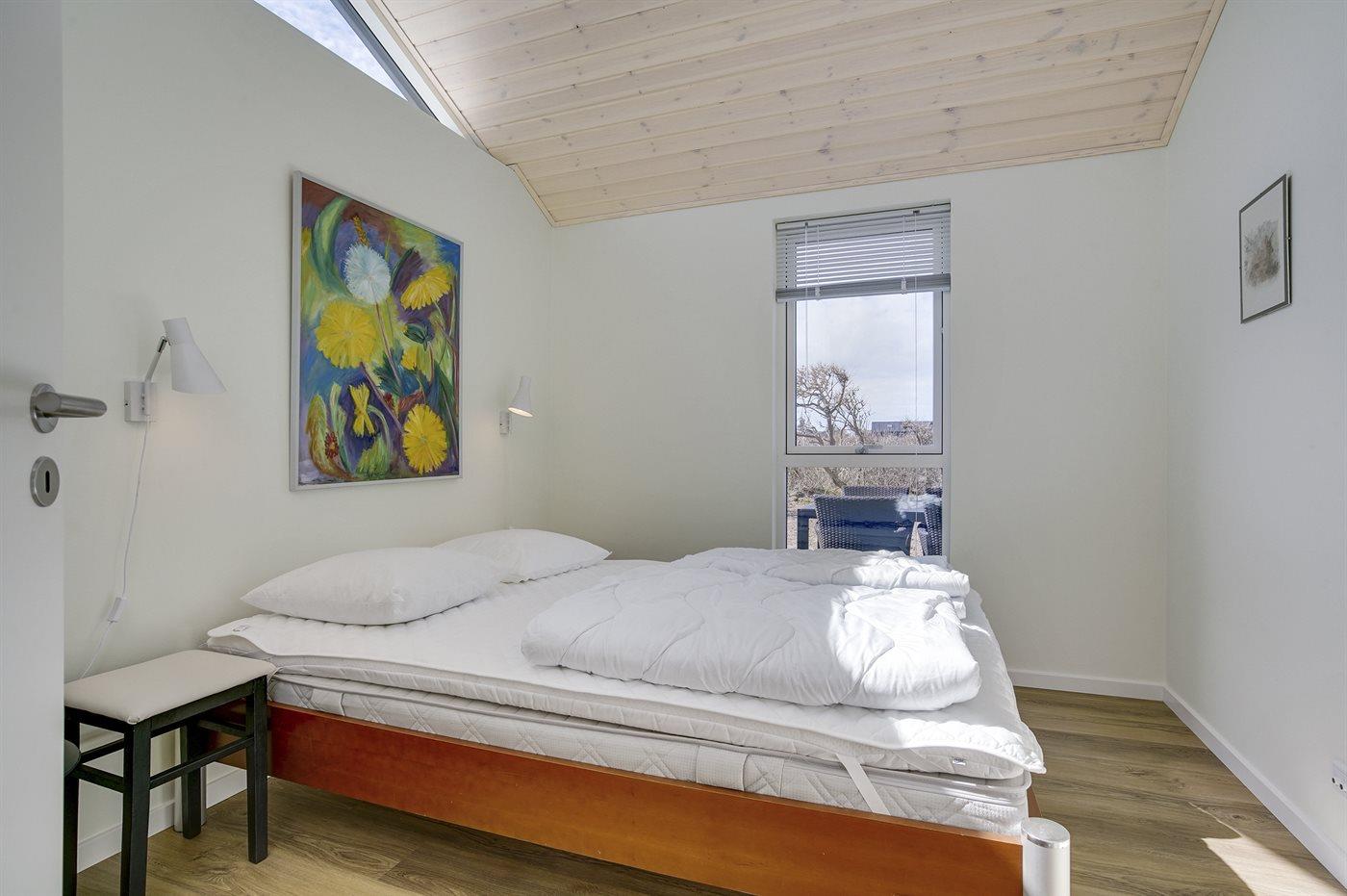 Der er i alt 3 soveværelser. Sovepladserne fordeler sig på: 4 sovepladser i dobbeltsenge. 2 sovepladser i enkeltsenge. Derudover er der 1 stk. barneseng.